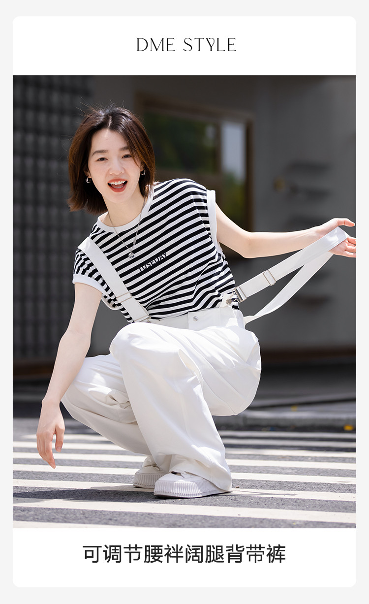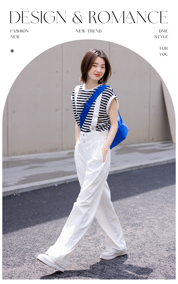 【白色阔腿背带裤】春装腰间可调节腰袢阔腿背带裤女 597250