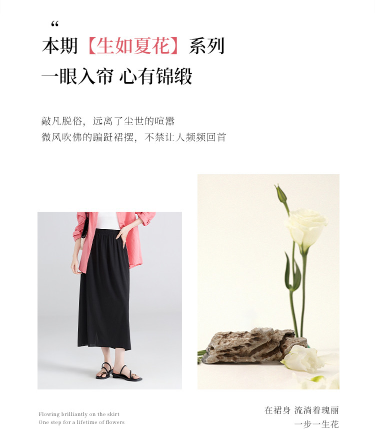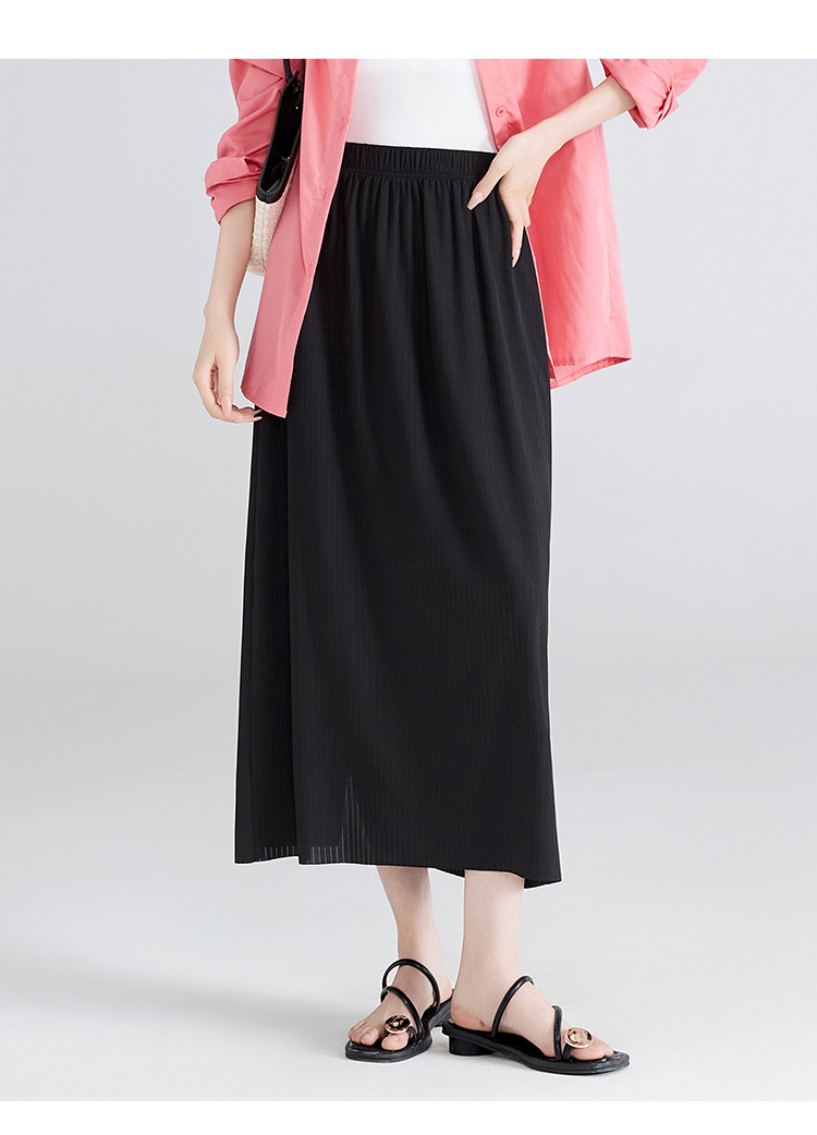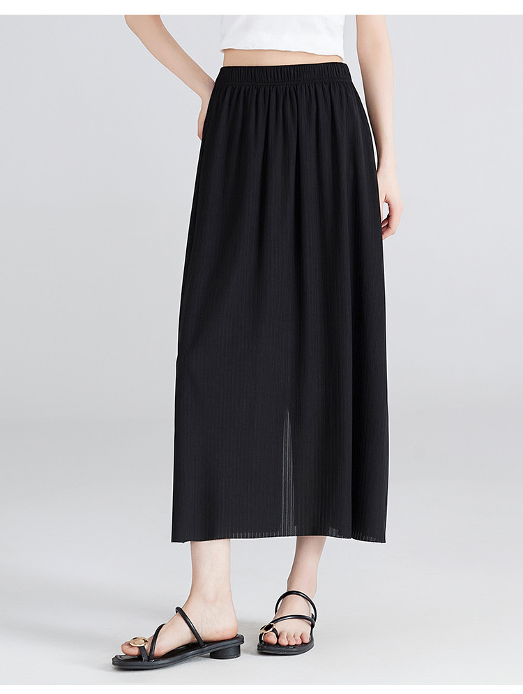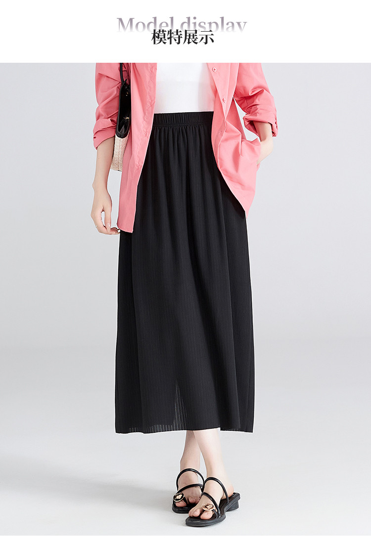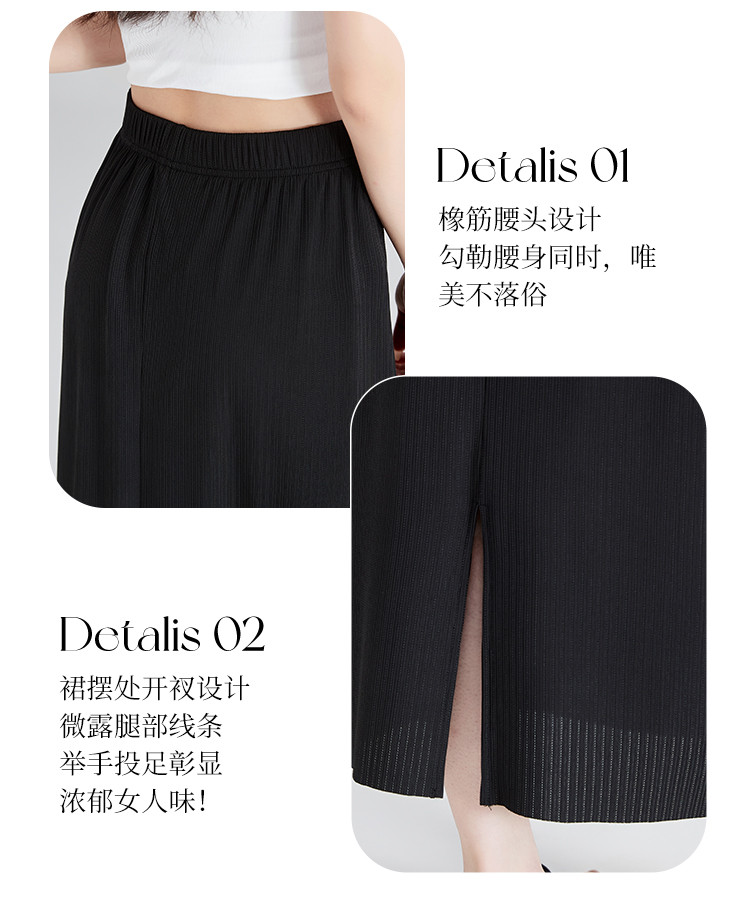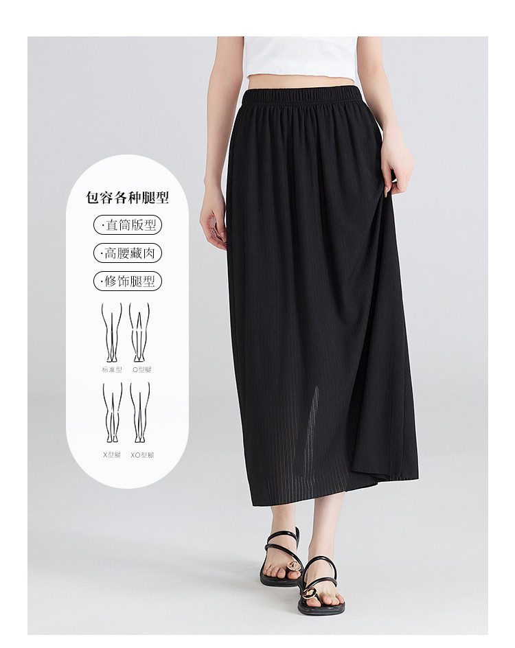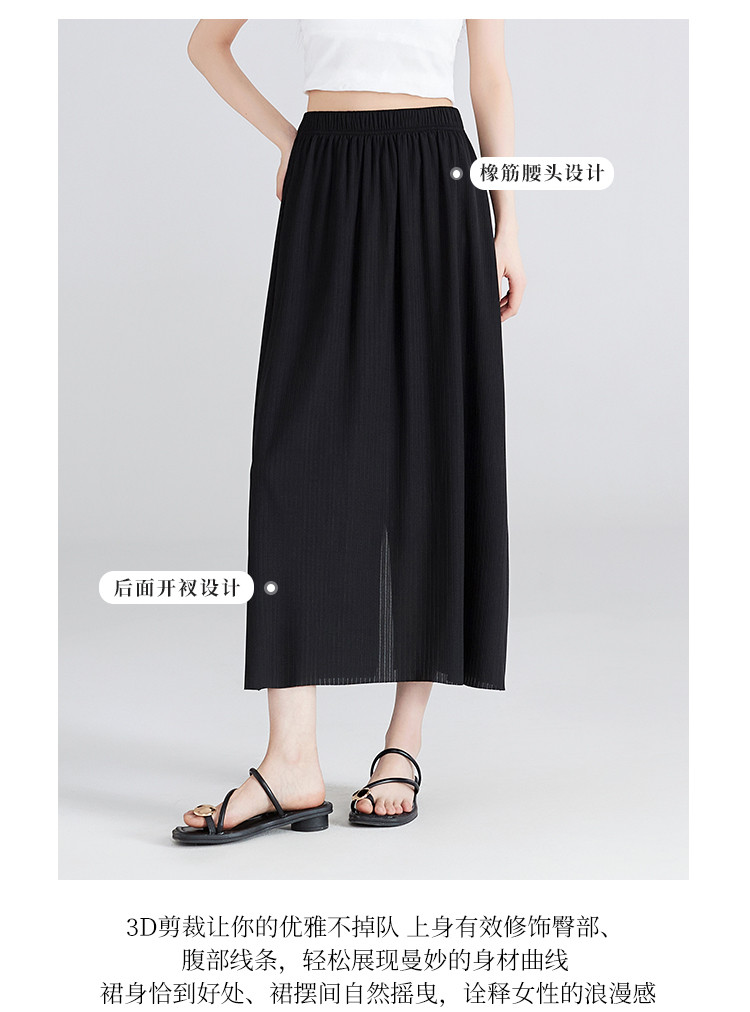 【清新百搭肌理裙】飘逸垂顺纯色高腰开叉半身裙休闲显瘦中长裙 459969