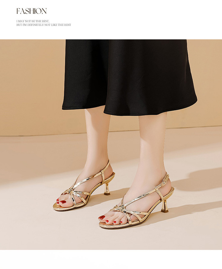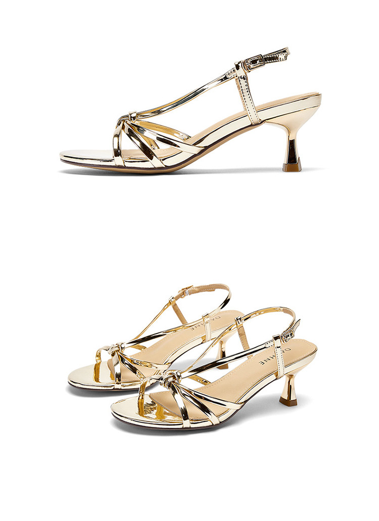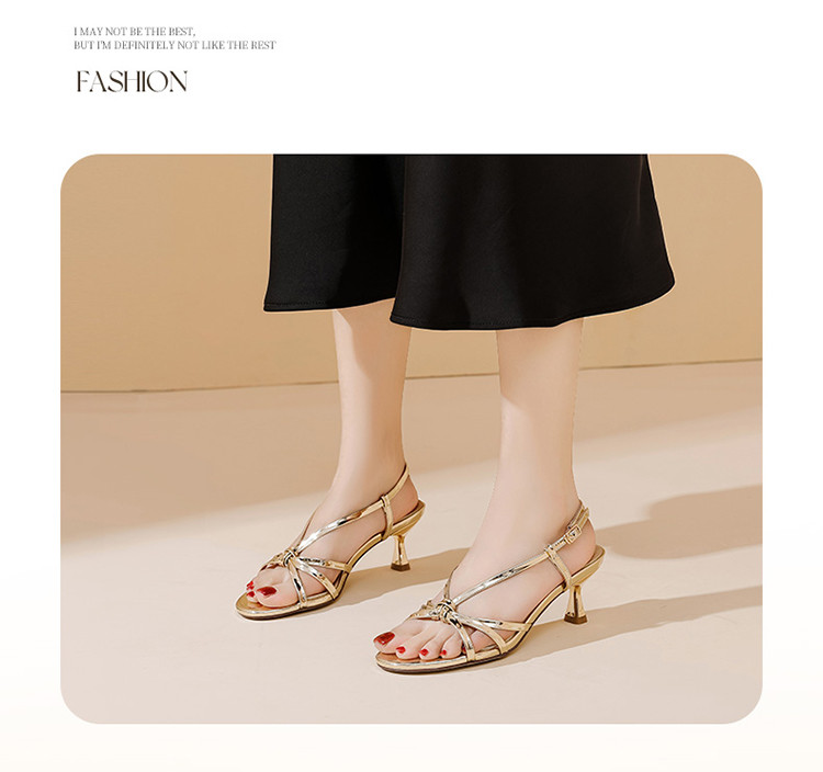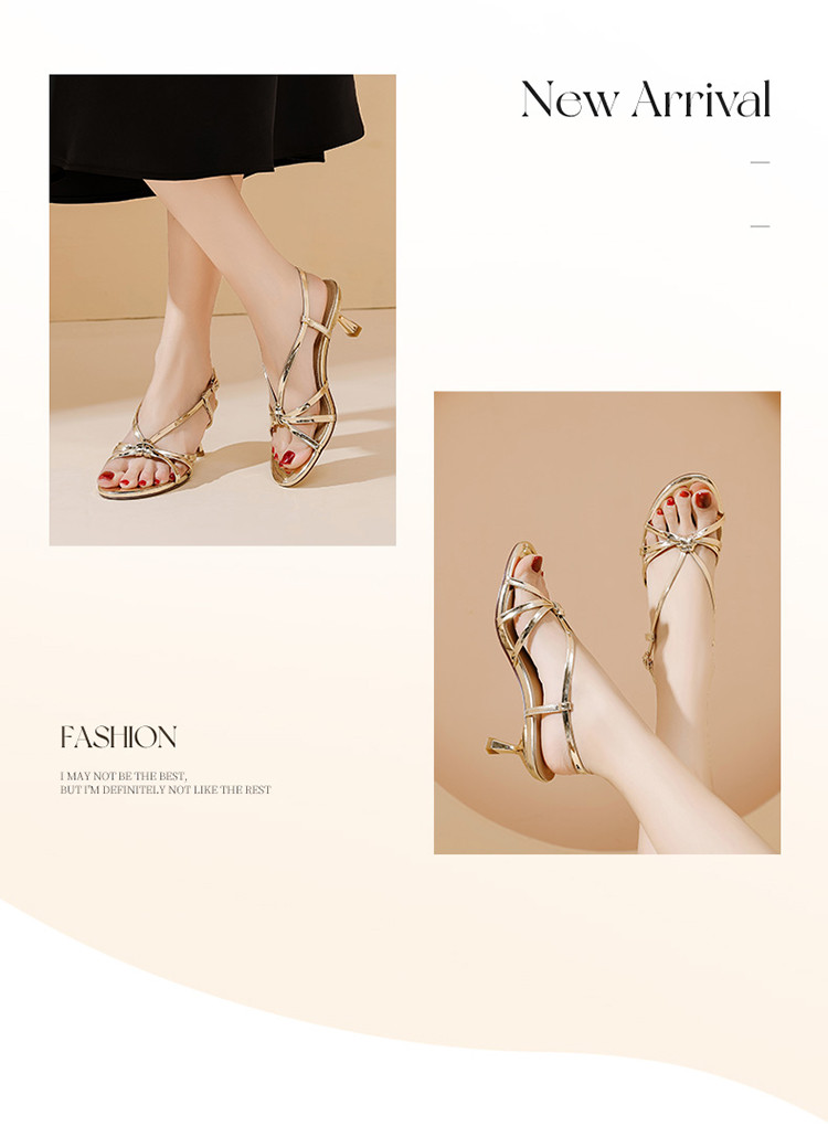 商品名称:金色凉鞋女性感罗马法式交叉带高跟凉鞋露趾气质名媛凉鞋 820826