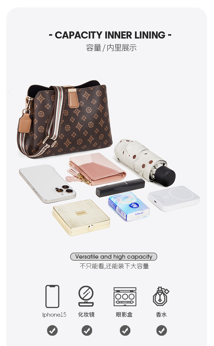 商品名称:包包女爆款大容量水桶包百搭印花斜挎包单肩包女士腋下包 651008