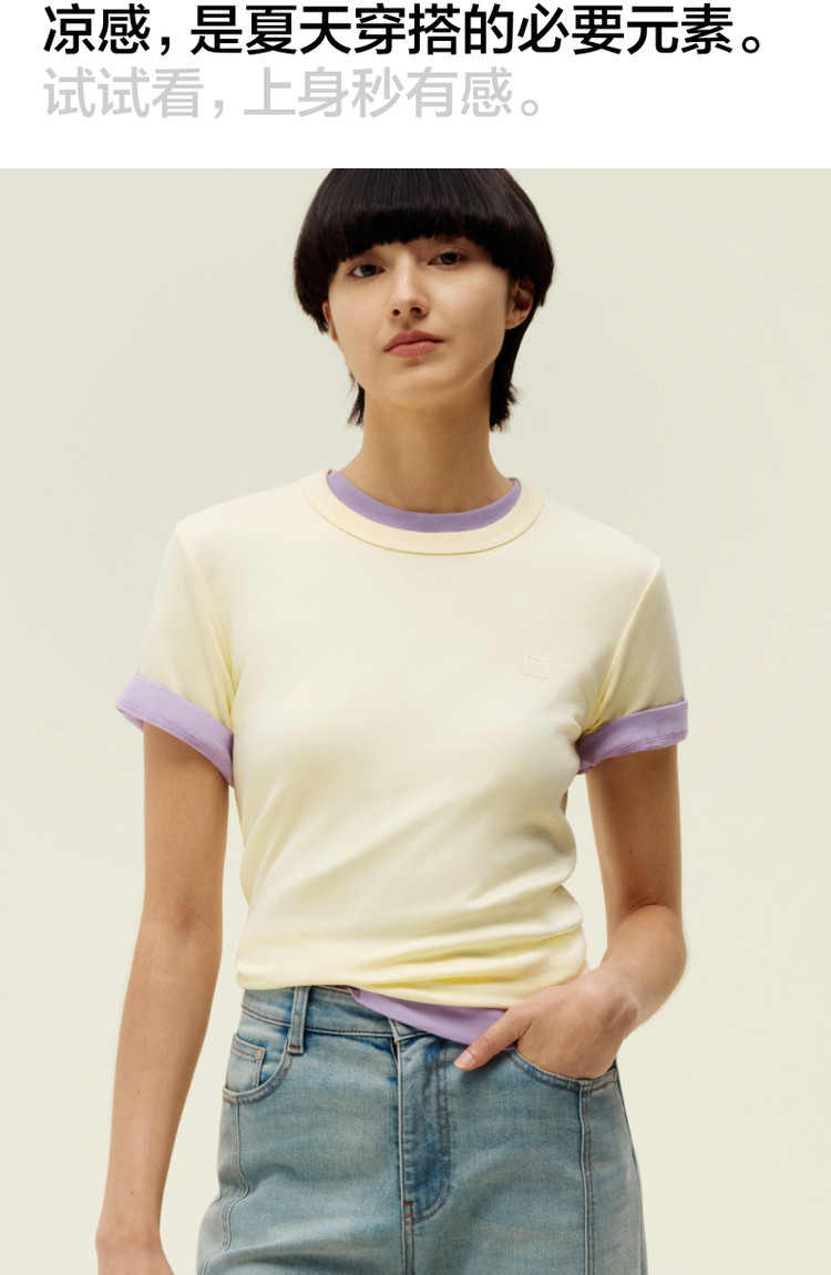 商品名称:【周冬雨同款】302Go女士修身显瘦T恤高弹透气简约打底短袖 908869