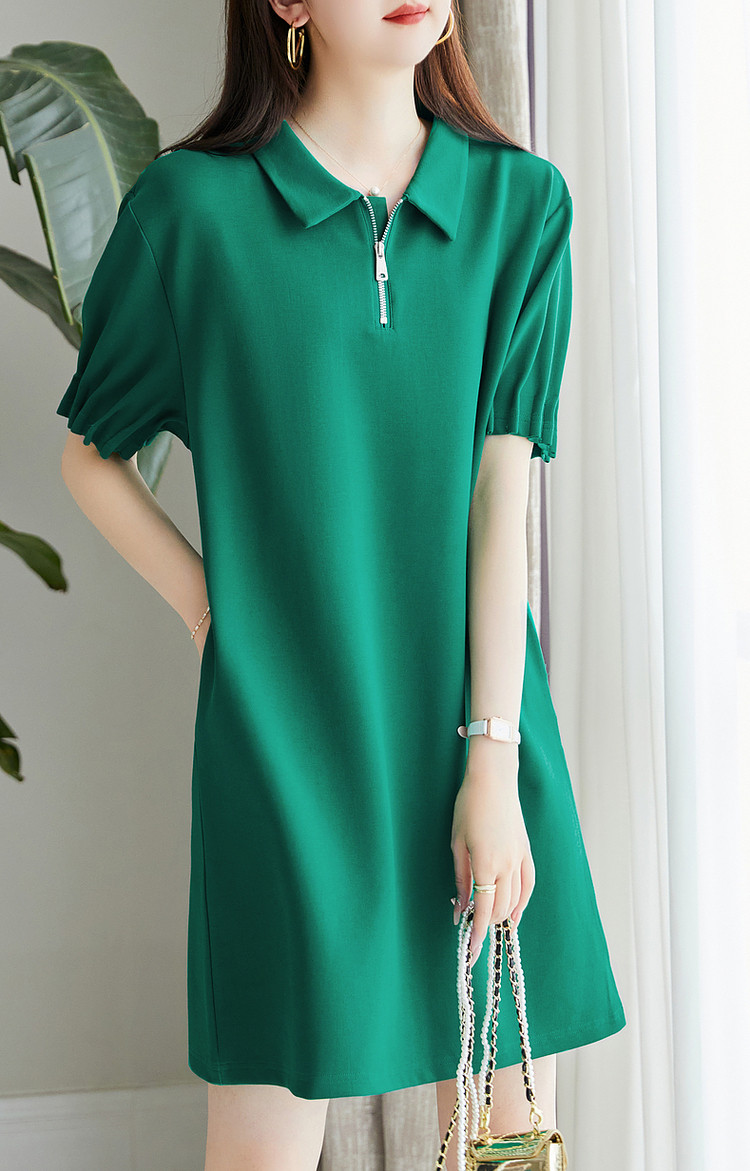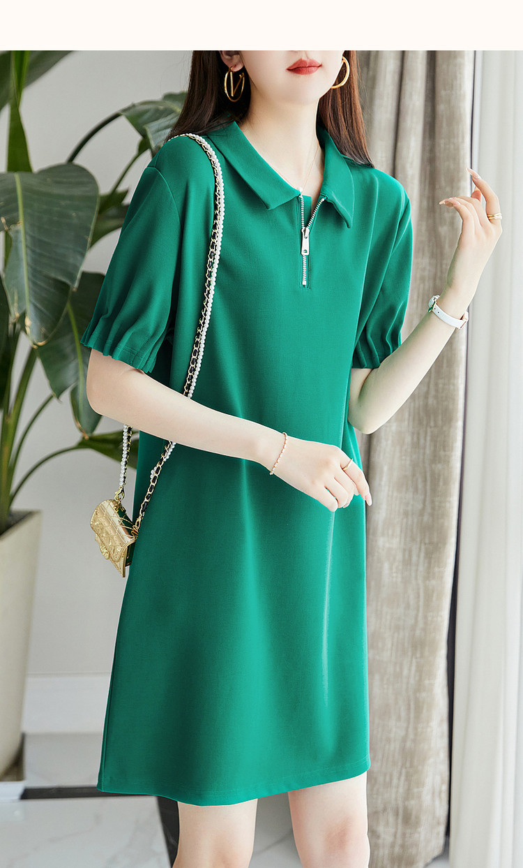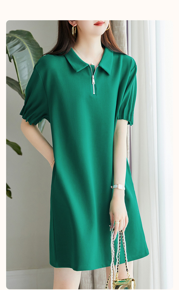 【珠地空气层】夏季翻领灯笼袖微弹针织连衣裙女 930689