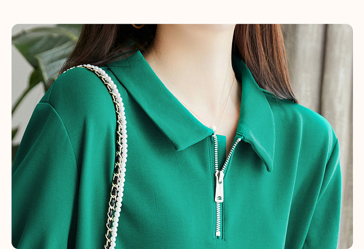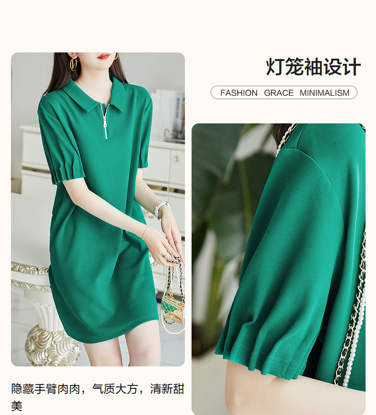 商品名称:【珠地空气层】夏季翻领灯笼袖微弹针织连衣裙女 930689