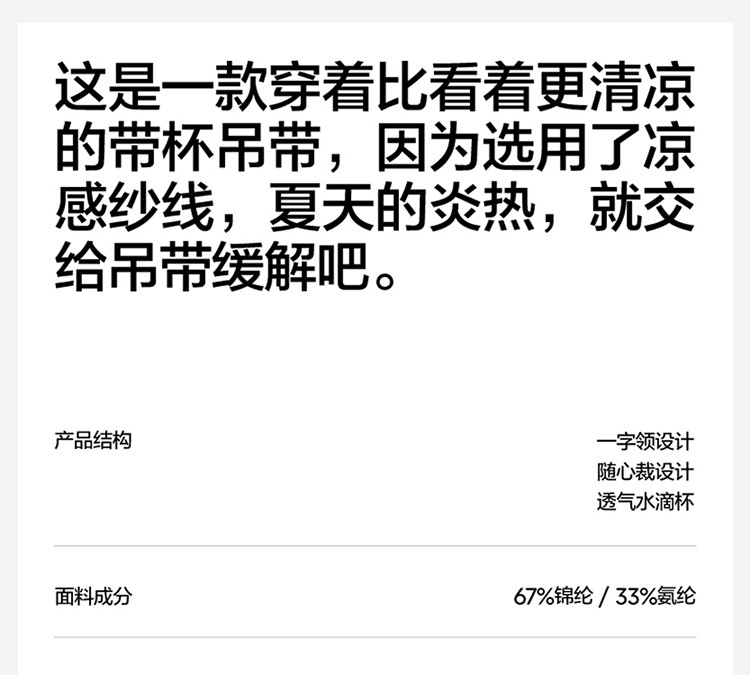 商品名称:凉皮501Cool Air女士带杯吊带抗菌美背吊带抹胸打底 614533