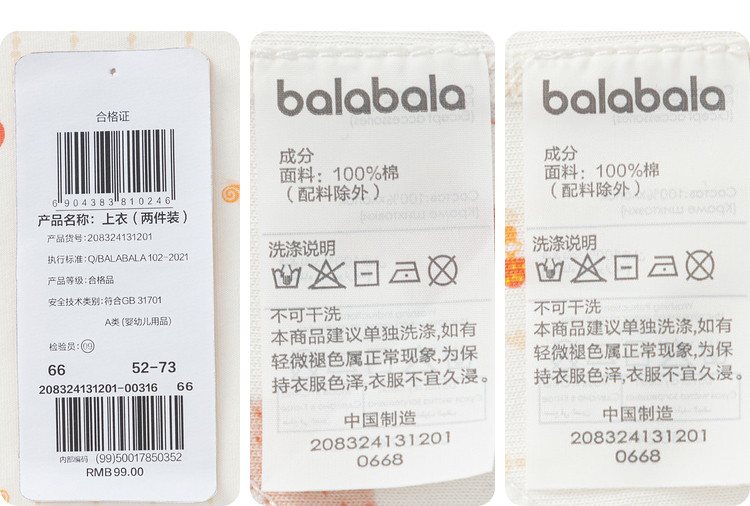 商品名称:纯棉两件装长袖婴儿半背衣家居服男童女童春秋装新生儿宝宝儿童 778885