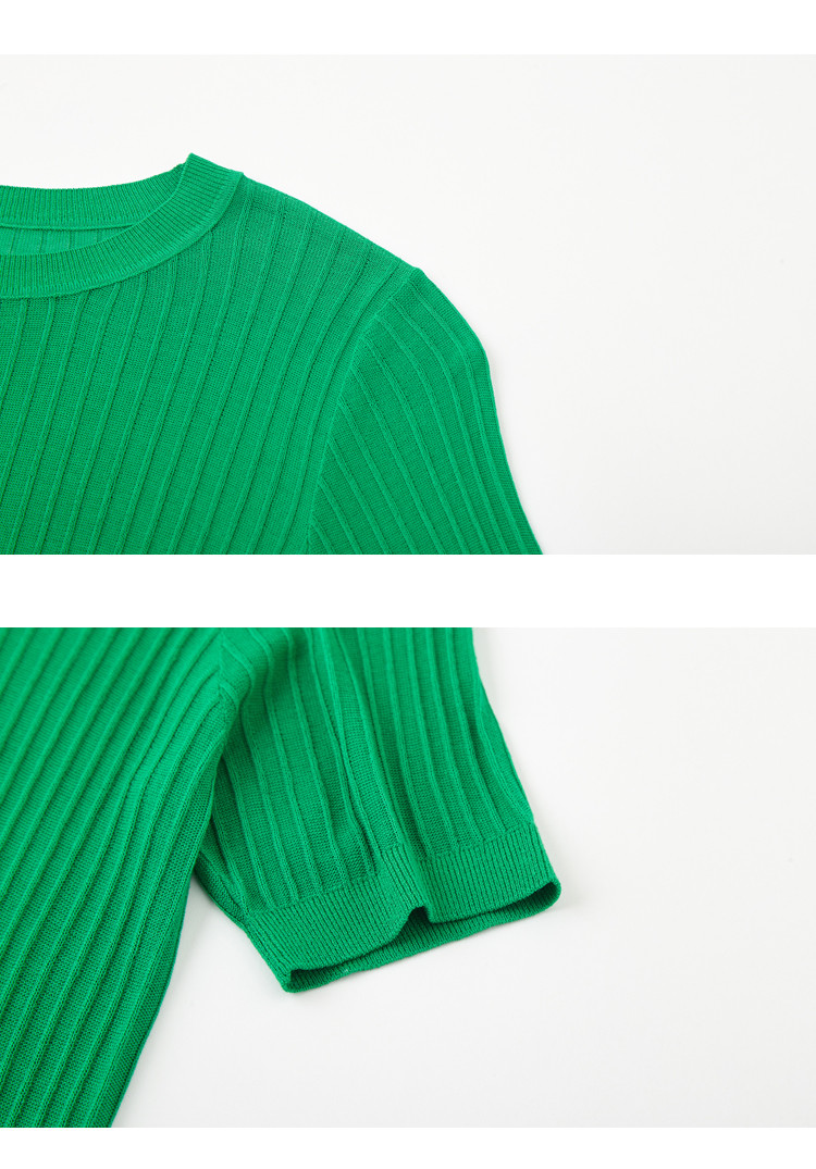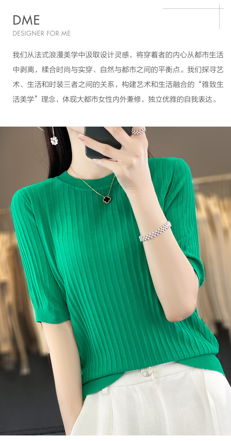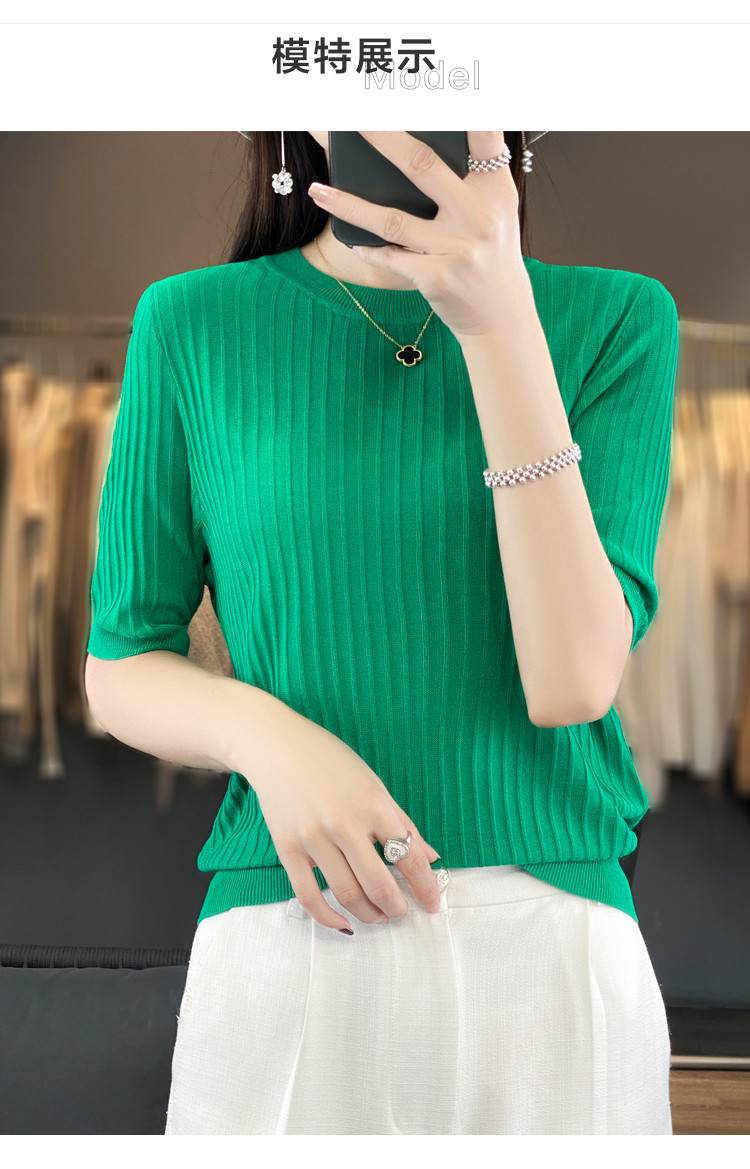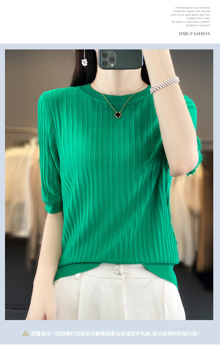 商品名称:【冰感轻薄线衫】春季圆领短袖弹力针织衫女上衣 004033