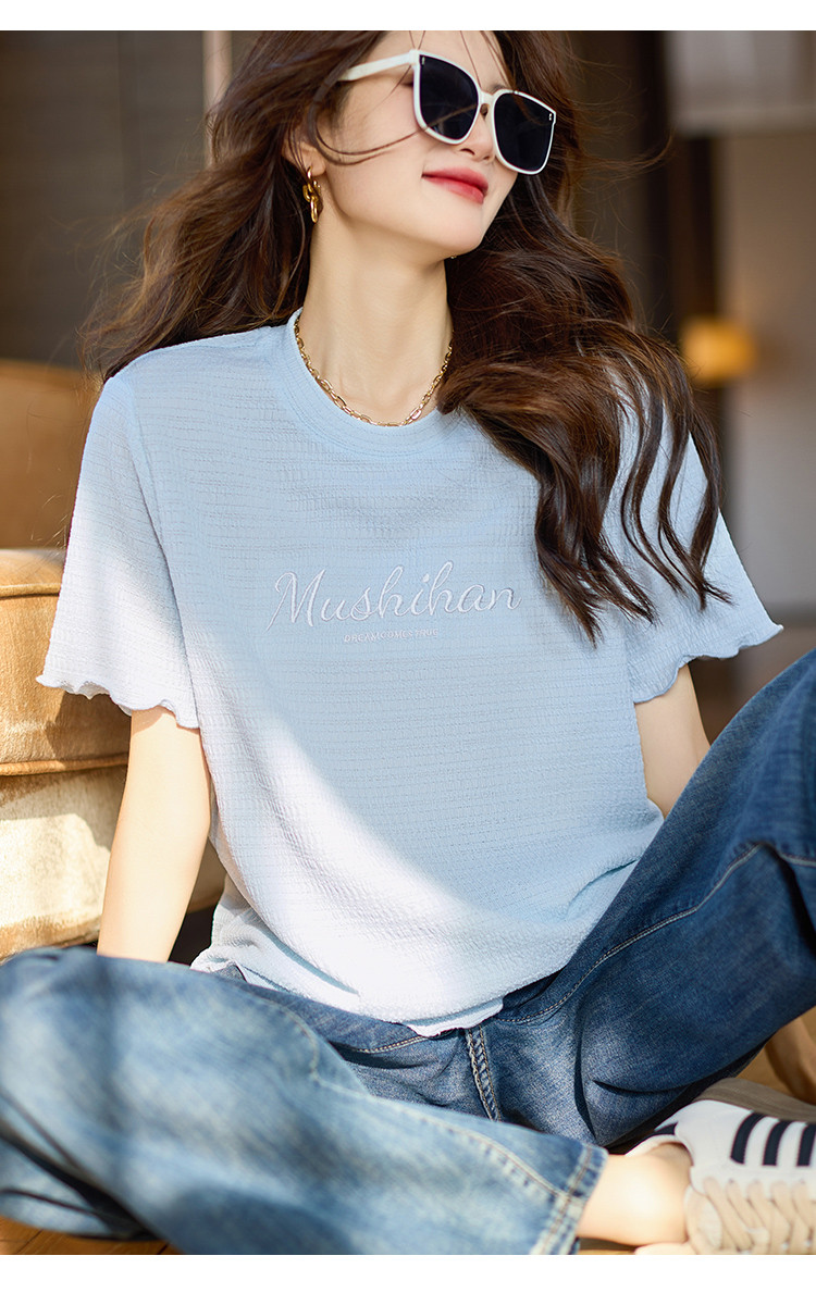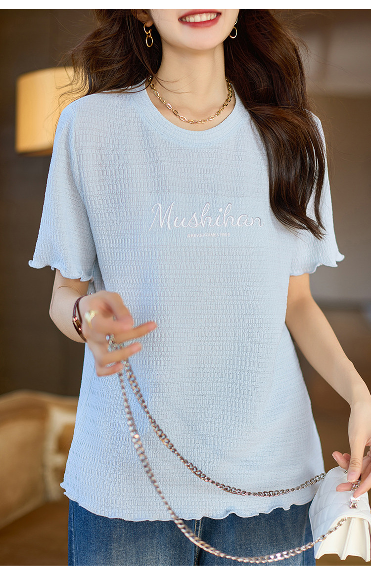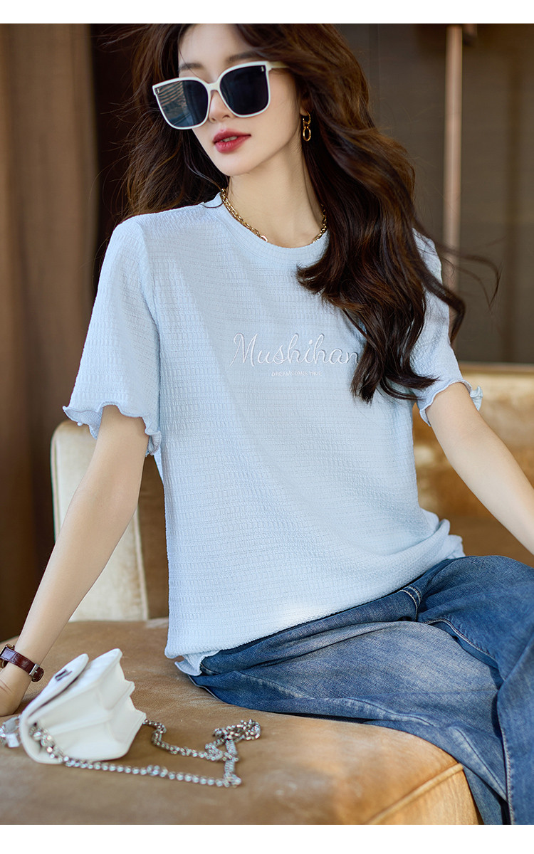 百搭舒适绣花短袖白T恤女2025夏季时尚宽松显瘦休闲圆领上衣 659209
