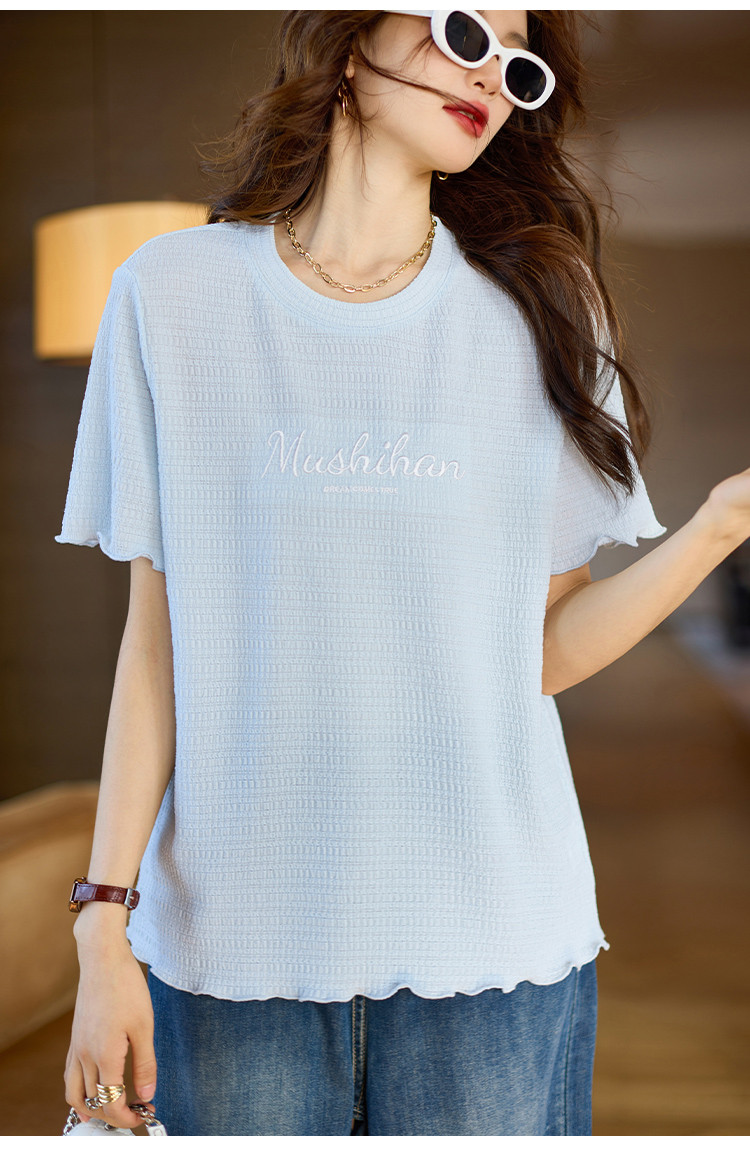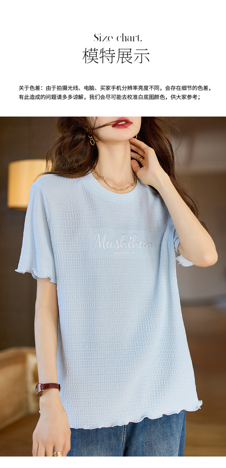 商品名称:百搭舒适绣花短袖白T恤女2025夏季时尚宽松显瘦休闲圆领上衣 659209