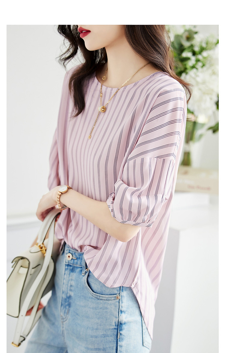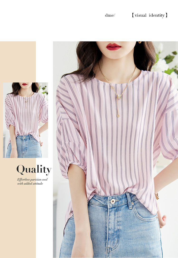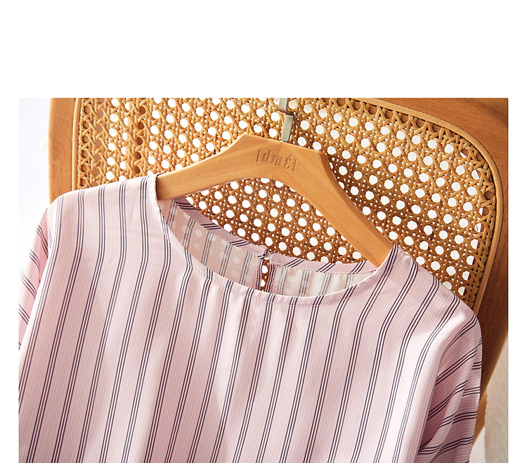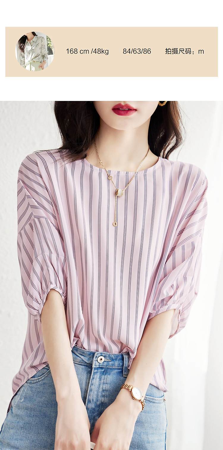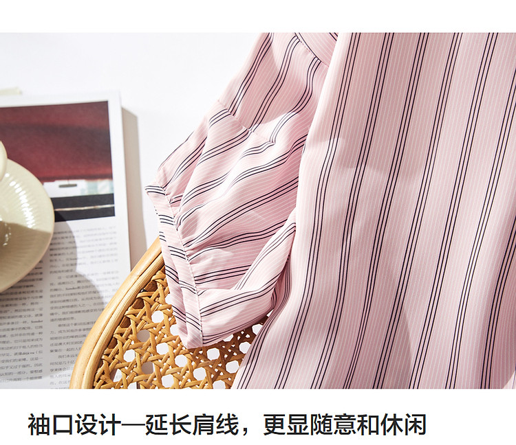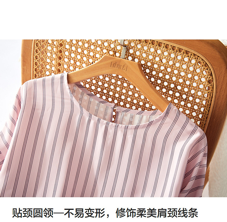 商品名称:【线条美学】夏法式复古条纹衬衫丝滑柔润舒适雪纺藏肉衬衣女上衣 716353