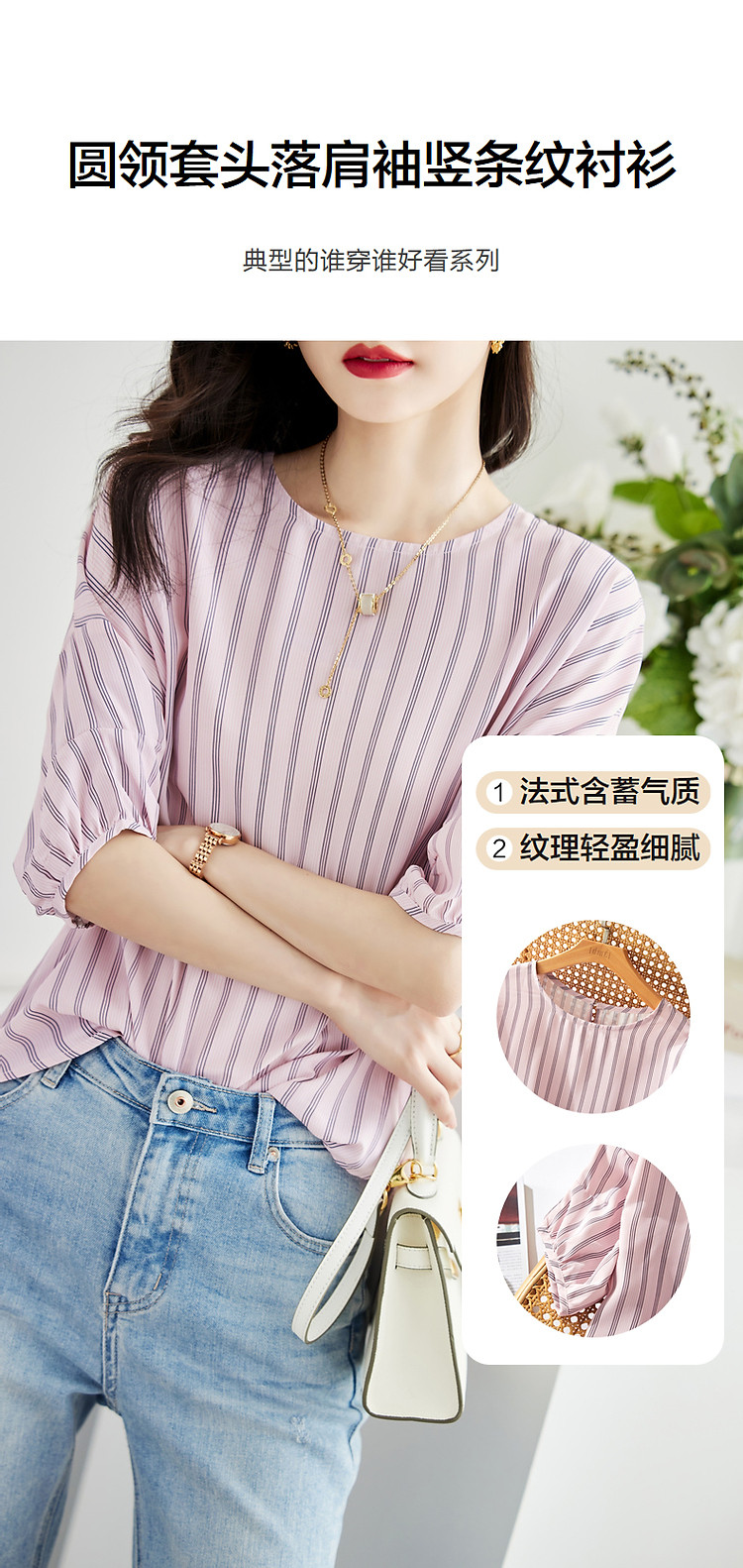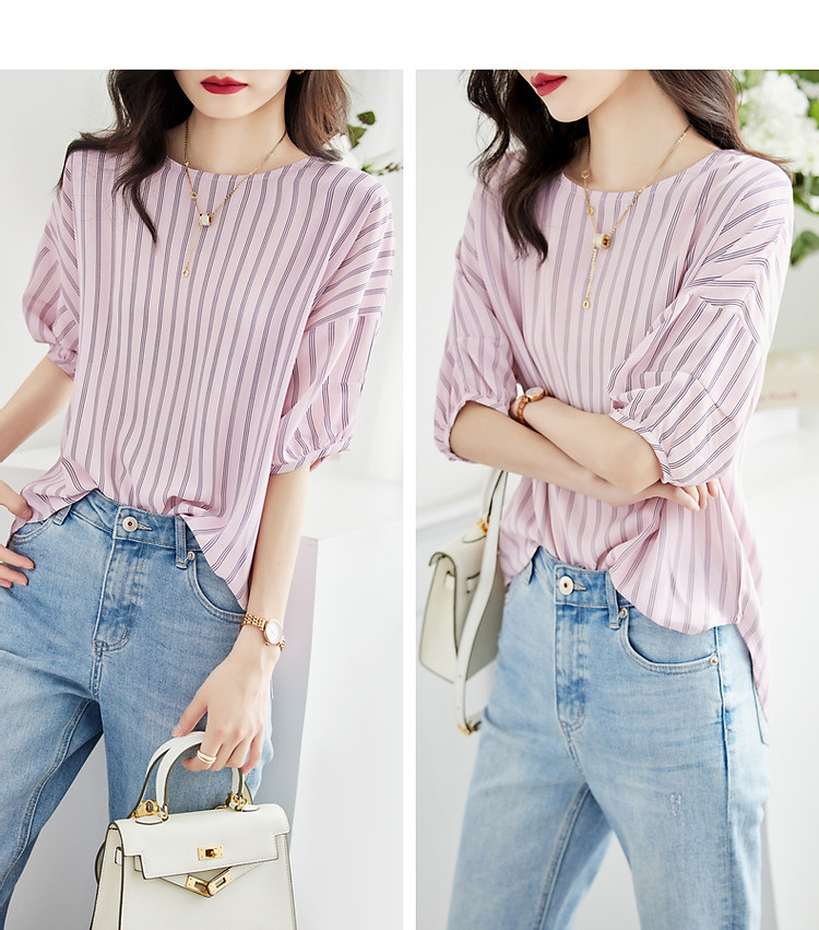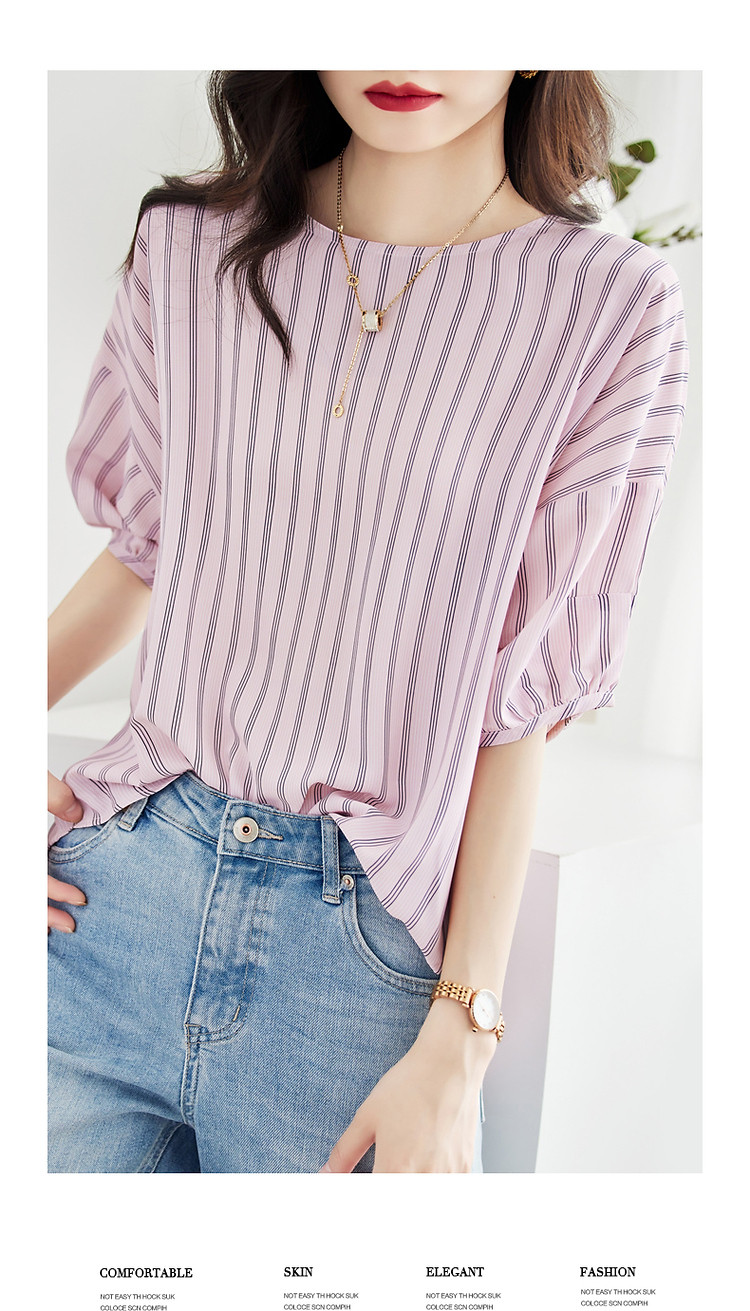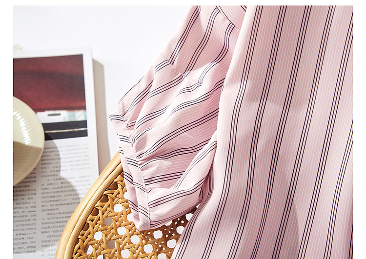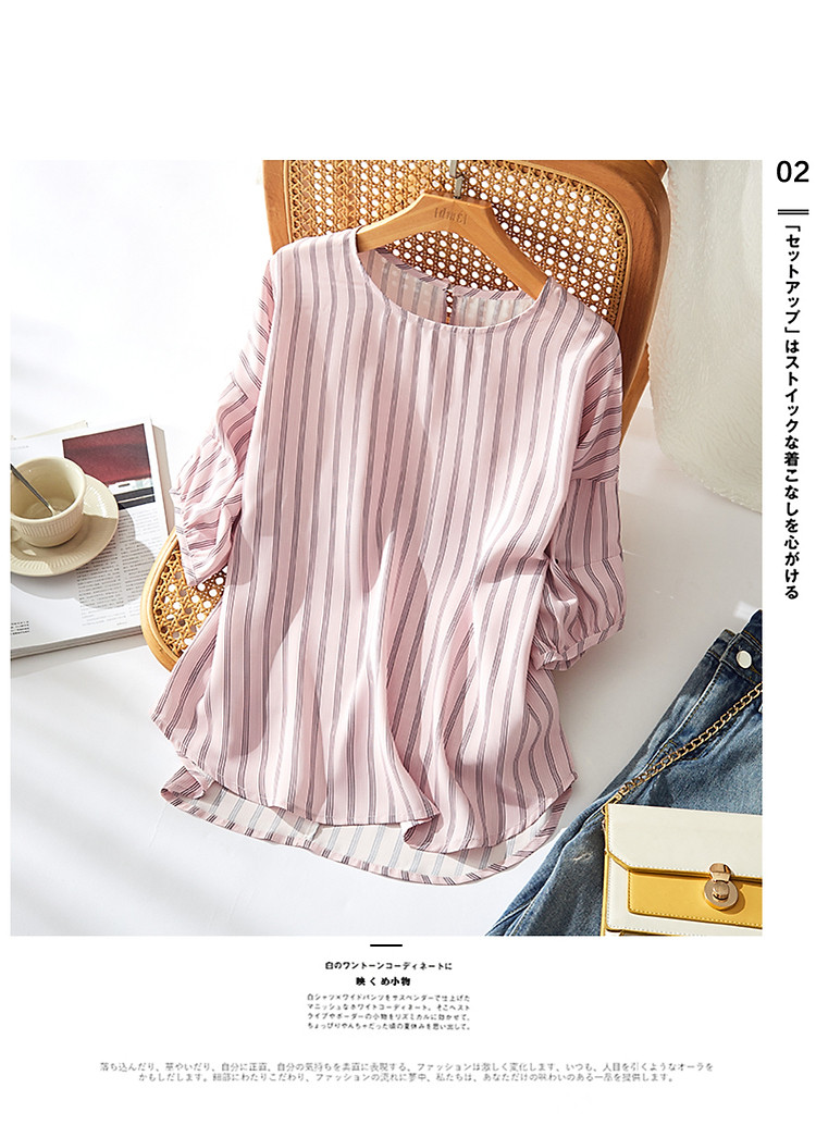 商品名称:【线条美学】夏法式复古条纹衬衫丝滑柔润舒适雪纺藏肉衬衣女上衣 716353