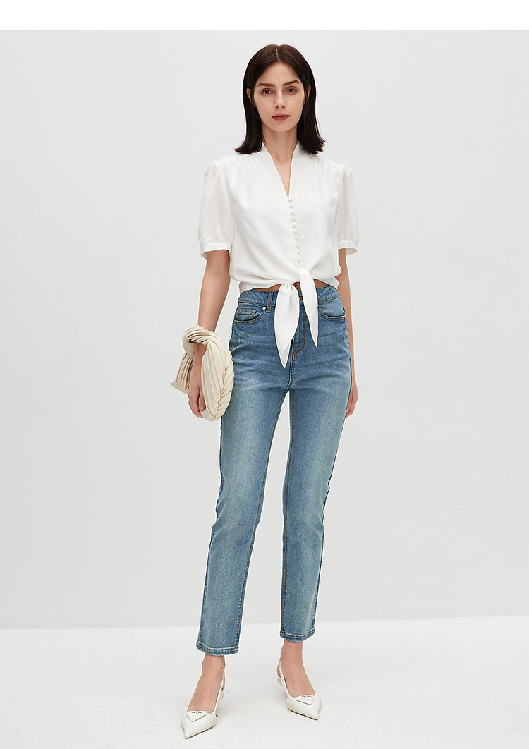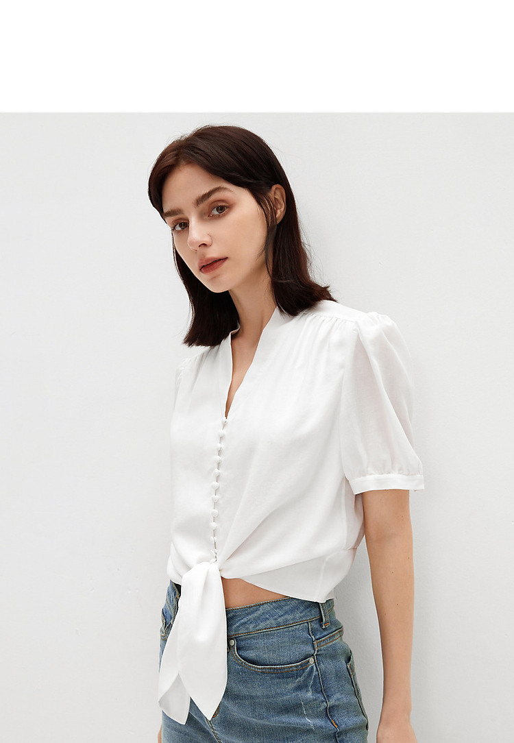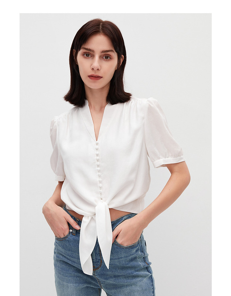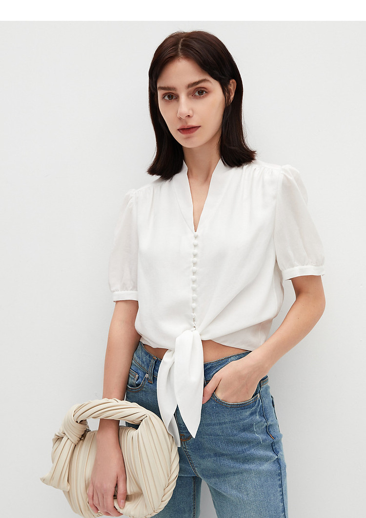 商品名称:夏款V领中袖通勤气质高级感女式衬衫 517337