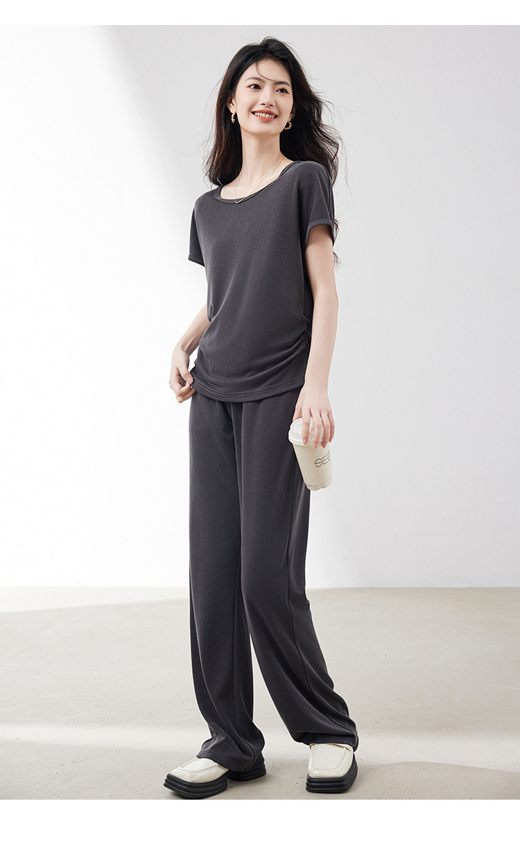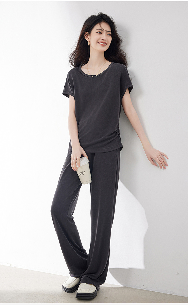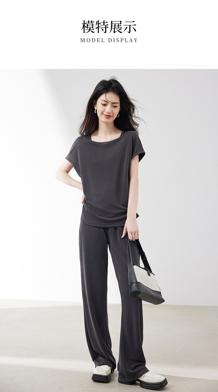 商品名称:针织套装女2025夏季新款遮肉显瘦T恤搭阔腿裤上下两件套减龄 201624