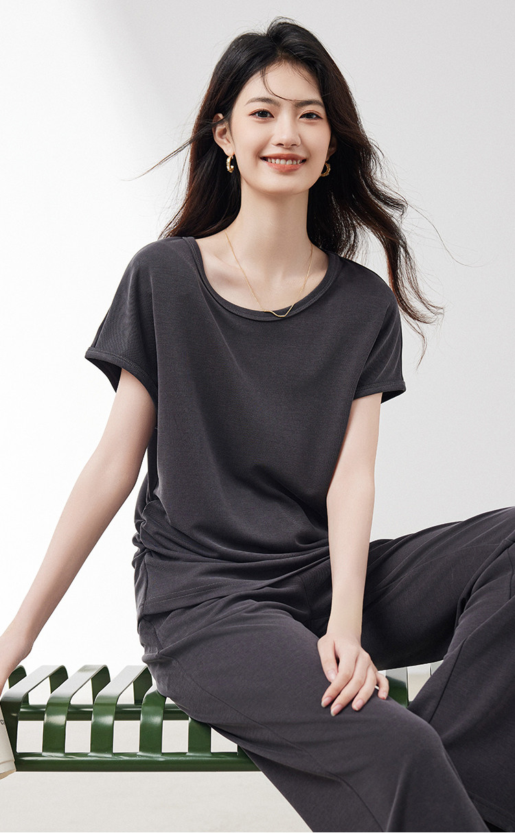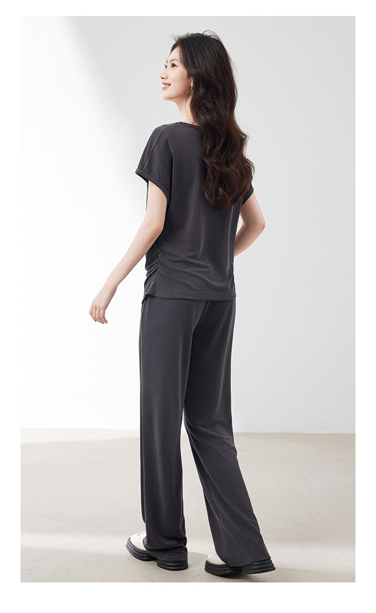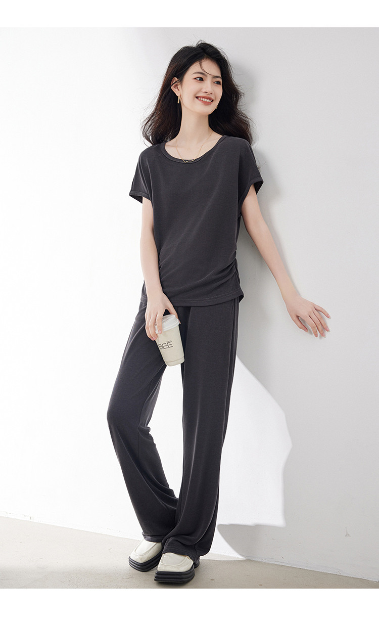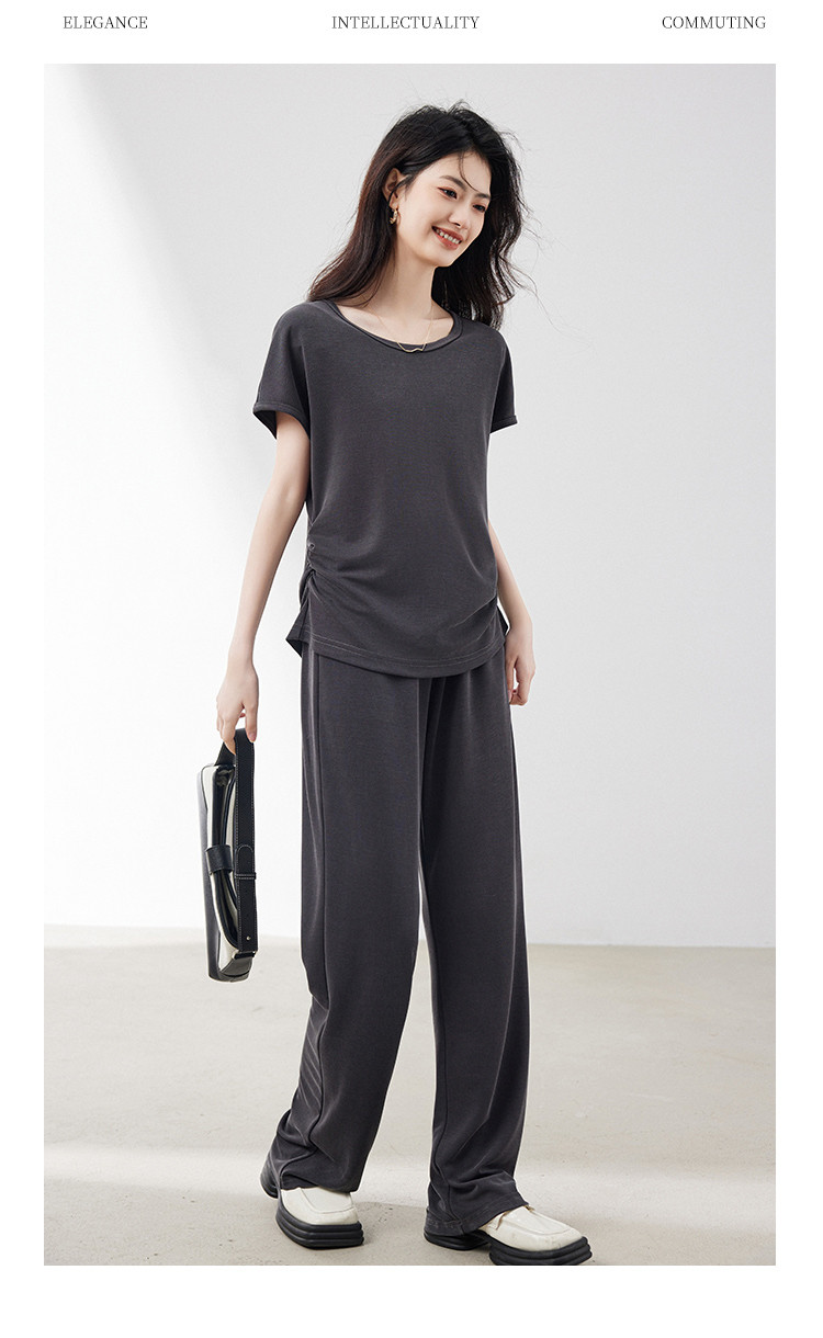 商品名称:针织套装女2025夏季新款遮肉显瘦T恤搭阔腿裤上下两件套减龄 201624