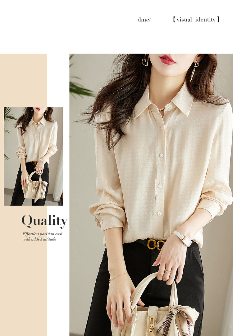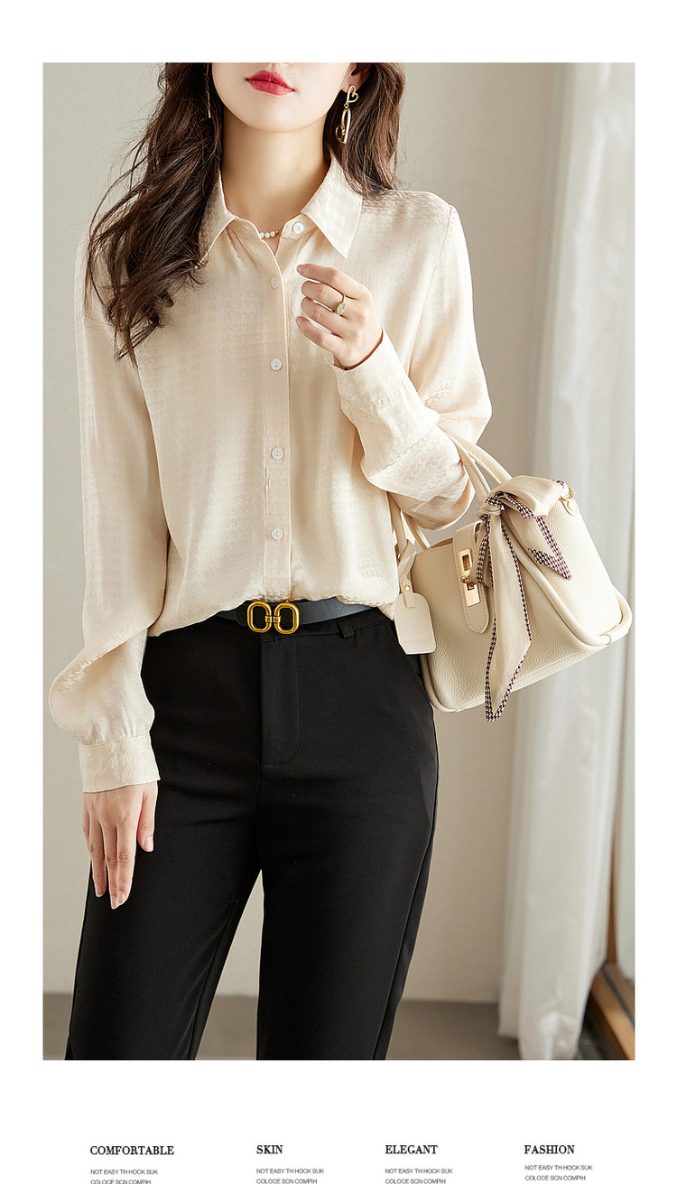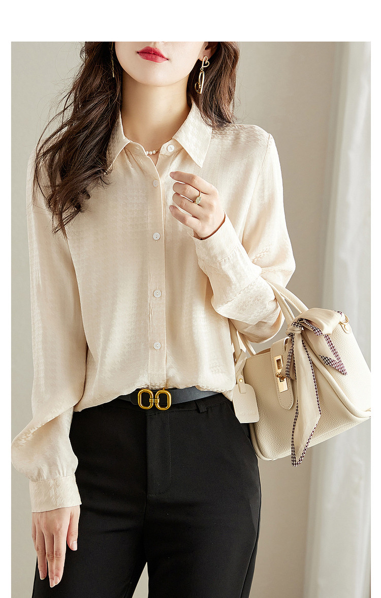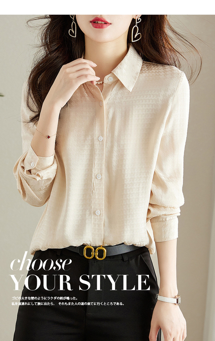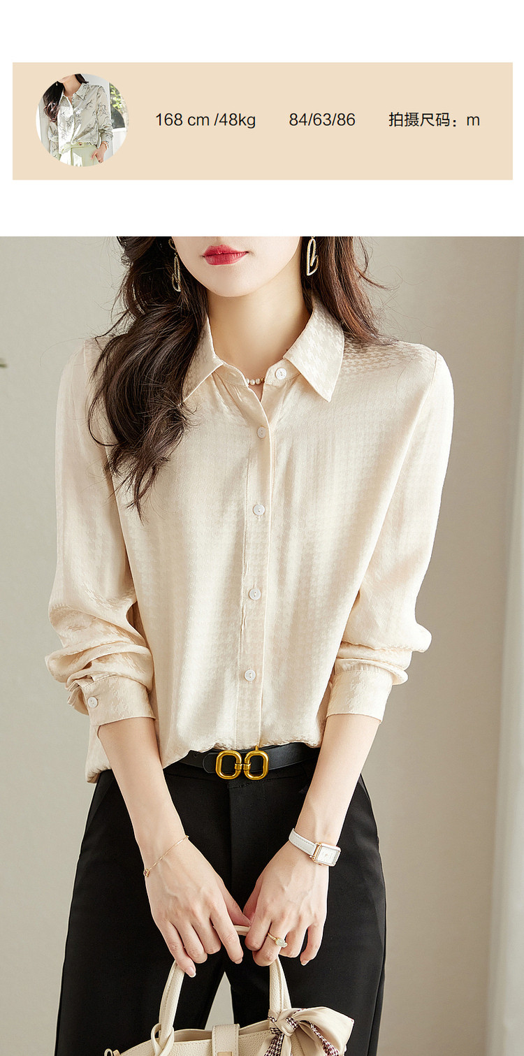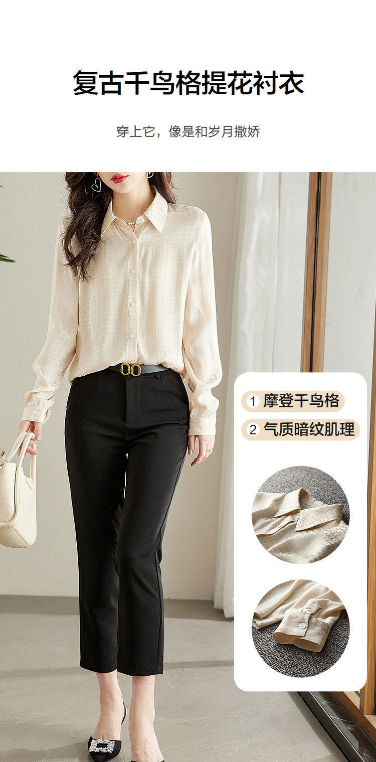 商品名称:【千鸟格提花衬衣】秋翻领合体暗纹肌理衬衫女秋季上衣 560961