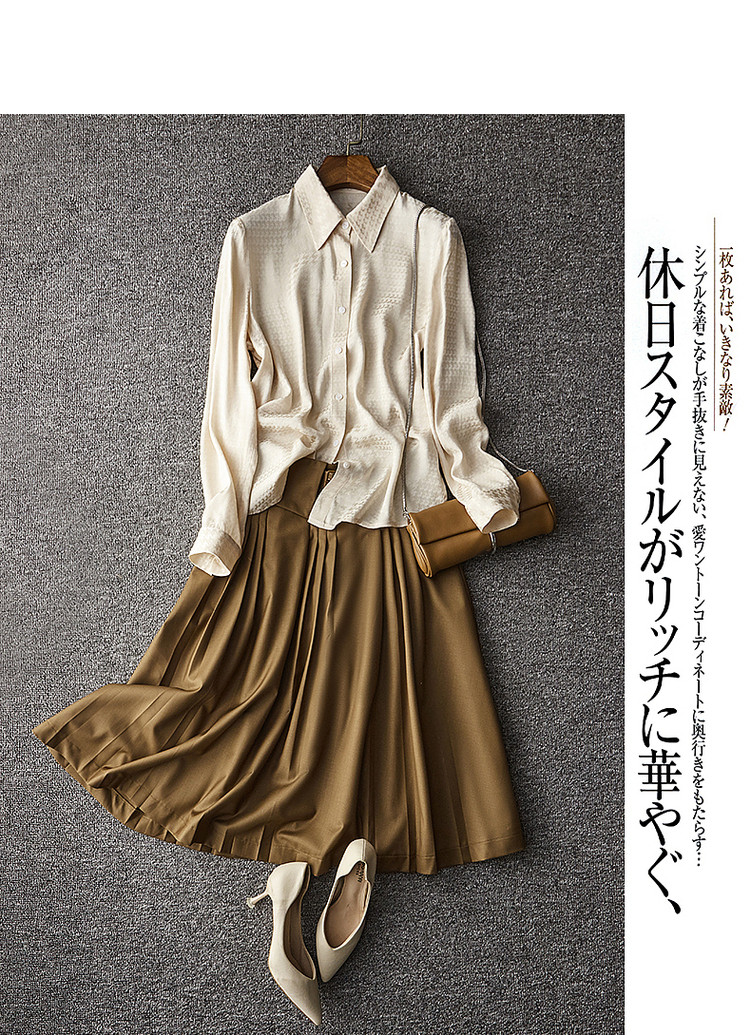 【千鸟格提花衬衣】秋翻领合体暗纹肌理衬衫女秋季上衣 560961