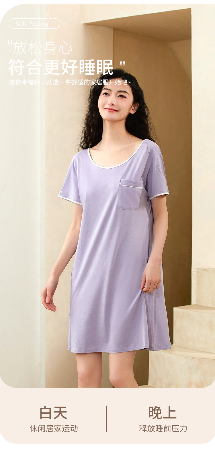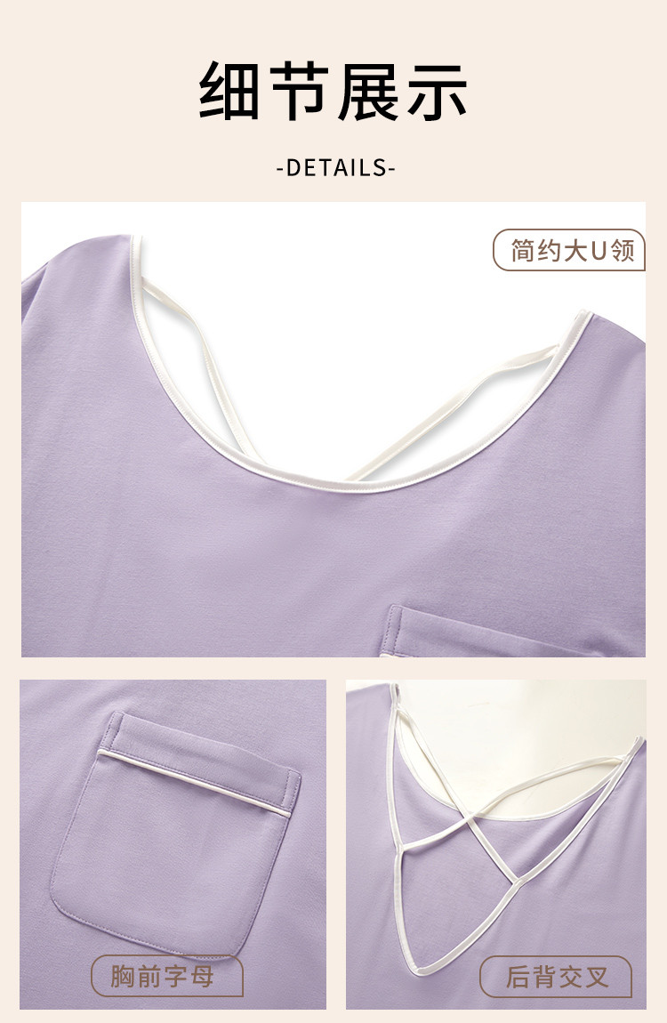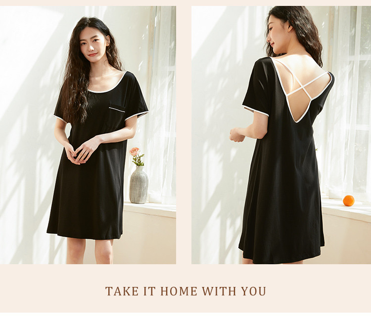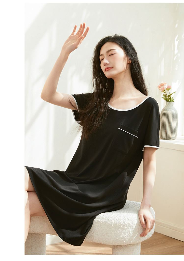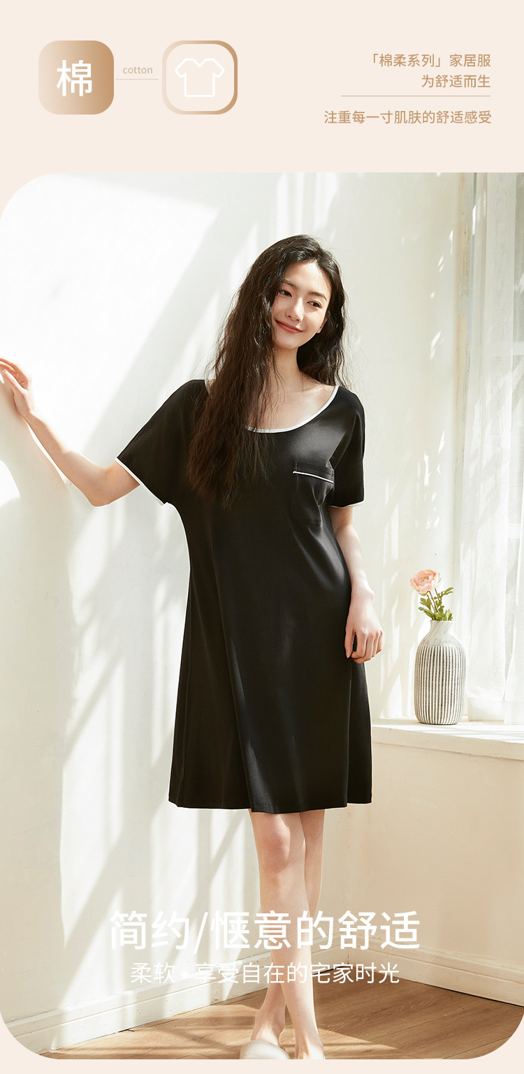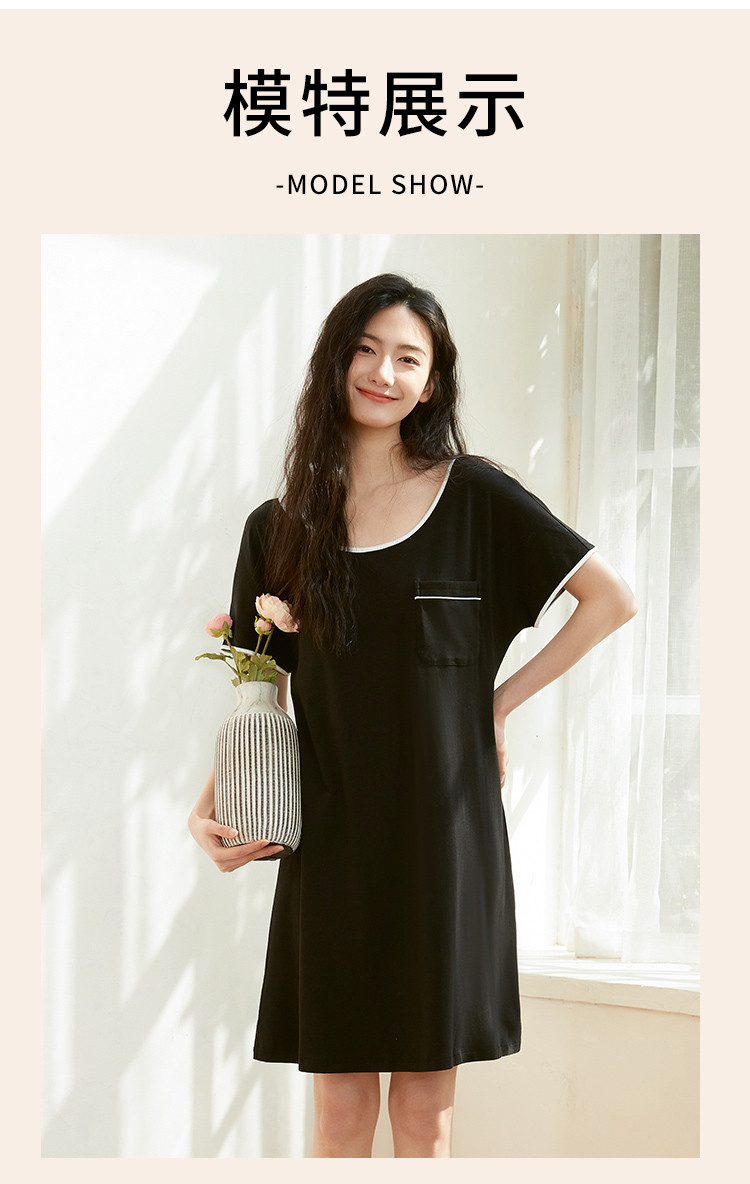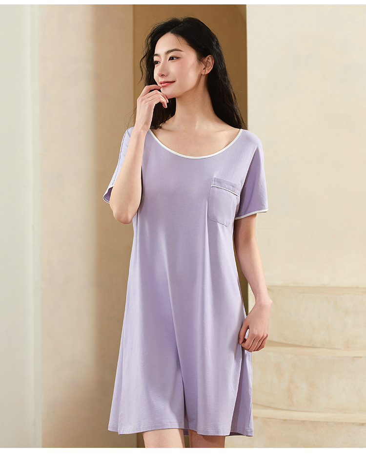 商品名称:【柔软舒适】简约纯色圆领短袖中长款女士睡裙夏季亲肤凉爽透气 635787