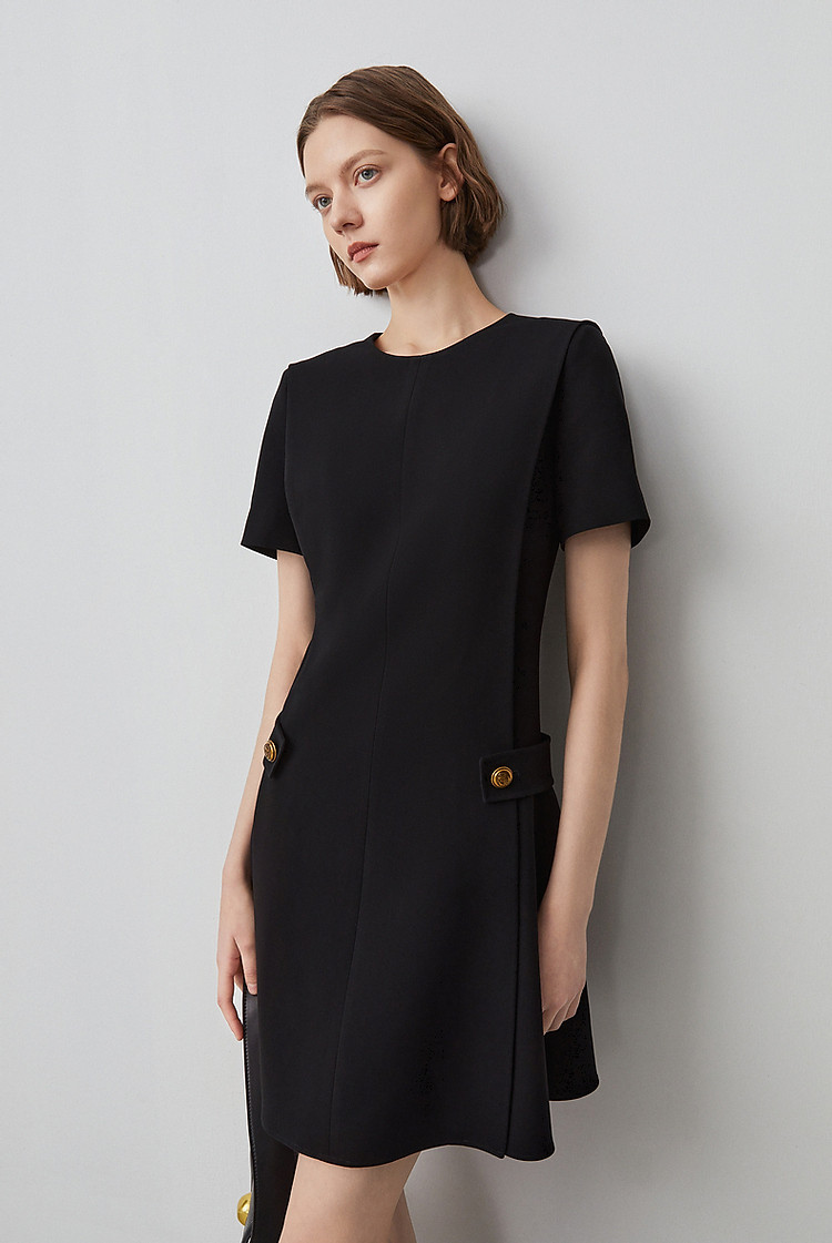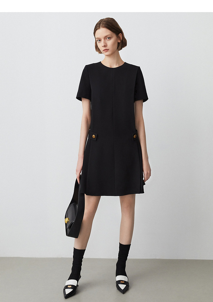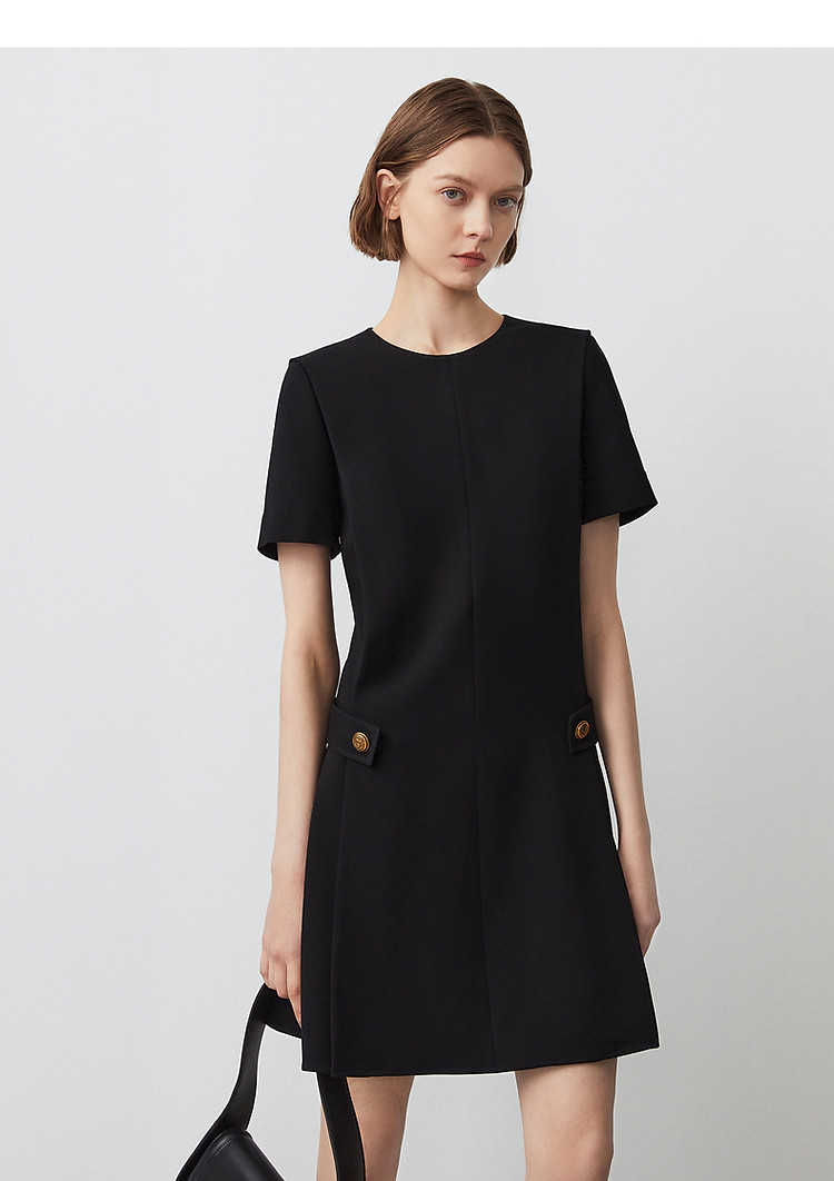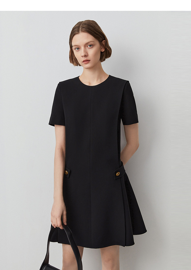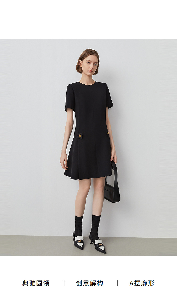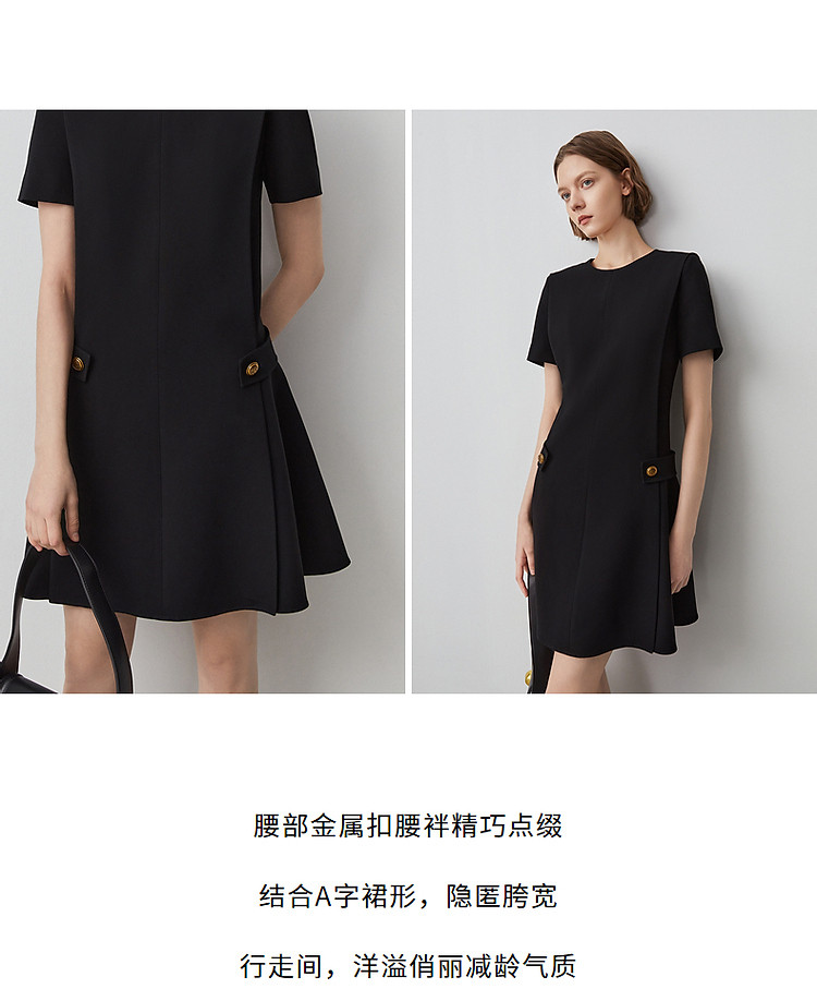 商品名称:三醋酸法式气质高级感收腰显瘦小黑裙女夏季短袖连衣裙朗姿集团 480473