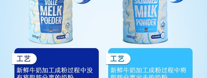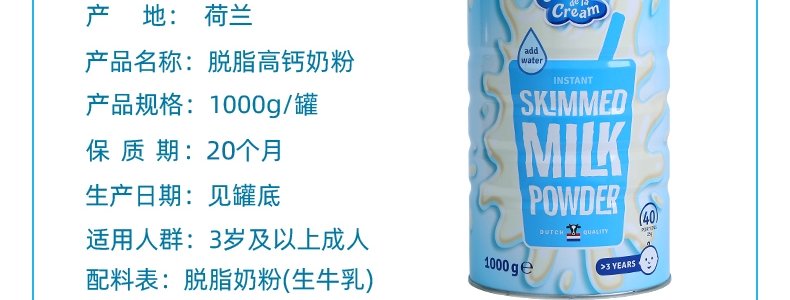 商品名称:荷兰 克德拉克(Creme de la Cream)脱脂牛奶粉 1000g