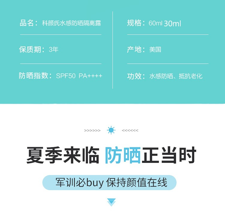 商品名称:Kiehl's/科颜氏 水感防晒隔离乳液 30ML