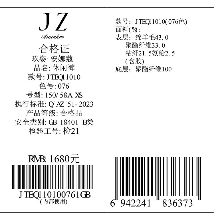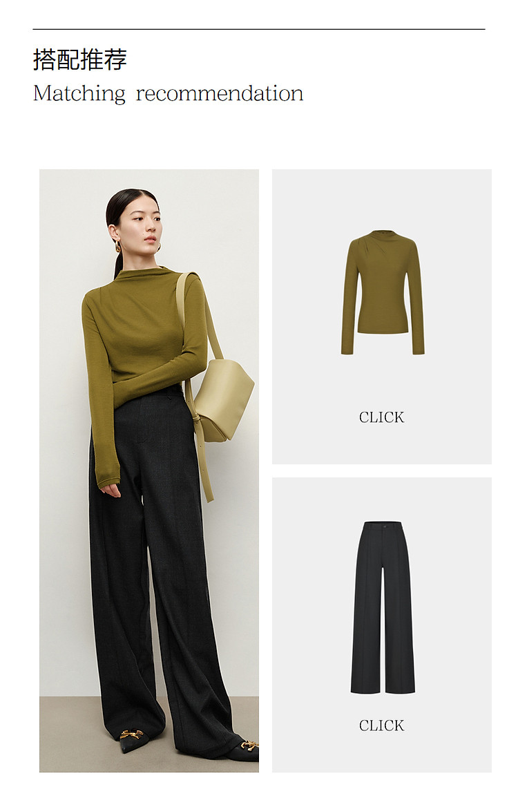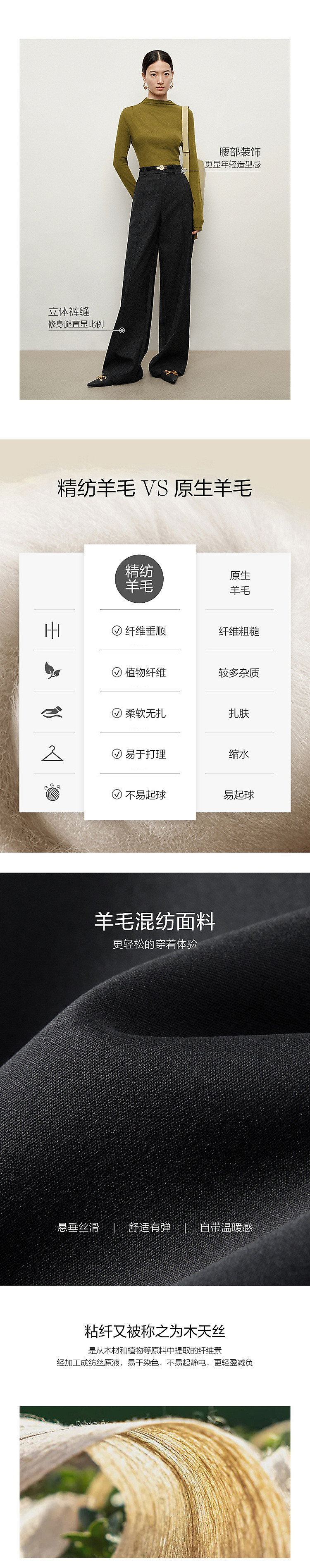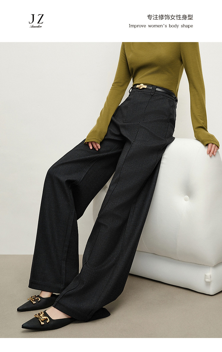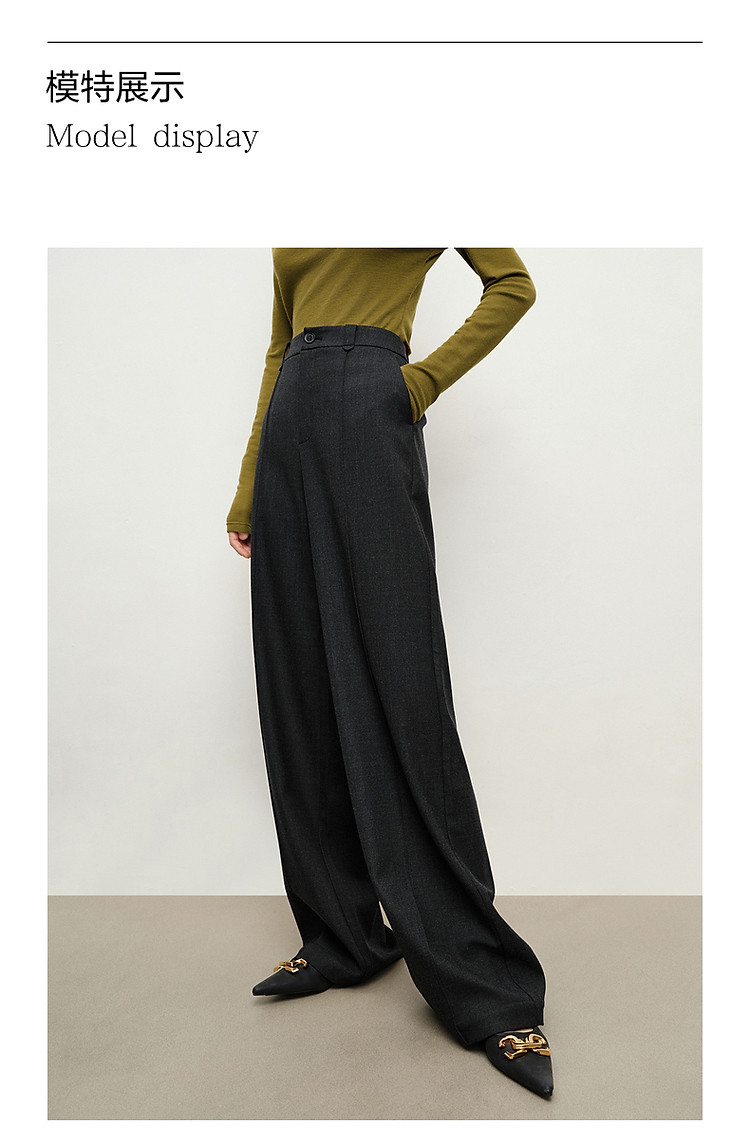 商品名称:玖姿旗下安娜蔻系列宽松廓形羊毛混纺阔腿裤休闲裤女秋季 663308