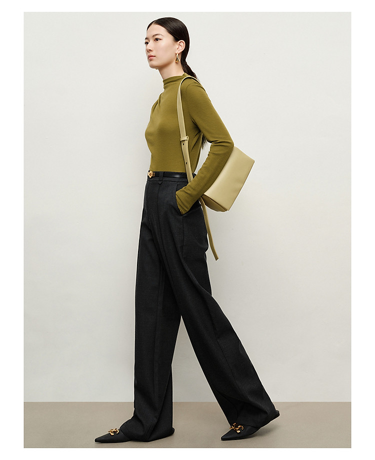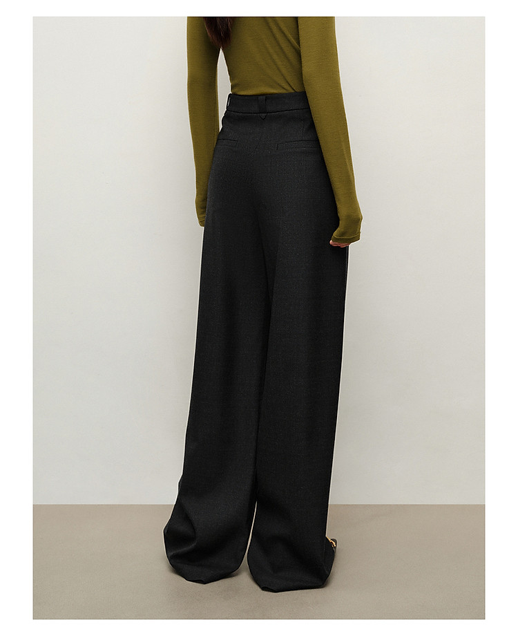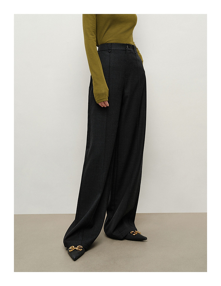 玖姿旗下安娜蔻系列宽松廓形羊毛混纺阔腿裤休闲裤女秋季 663308