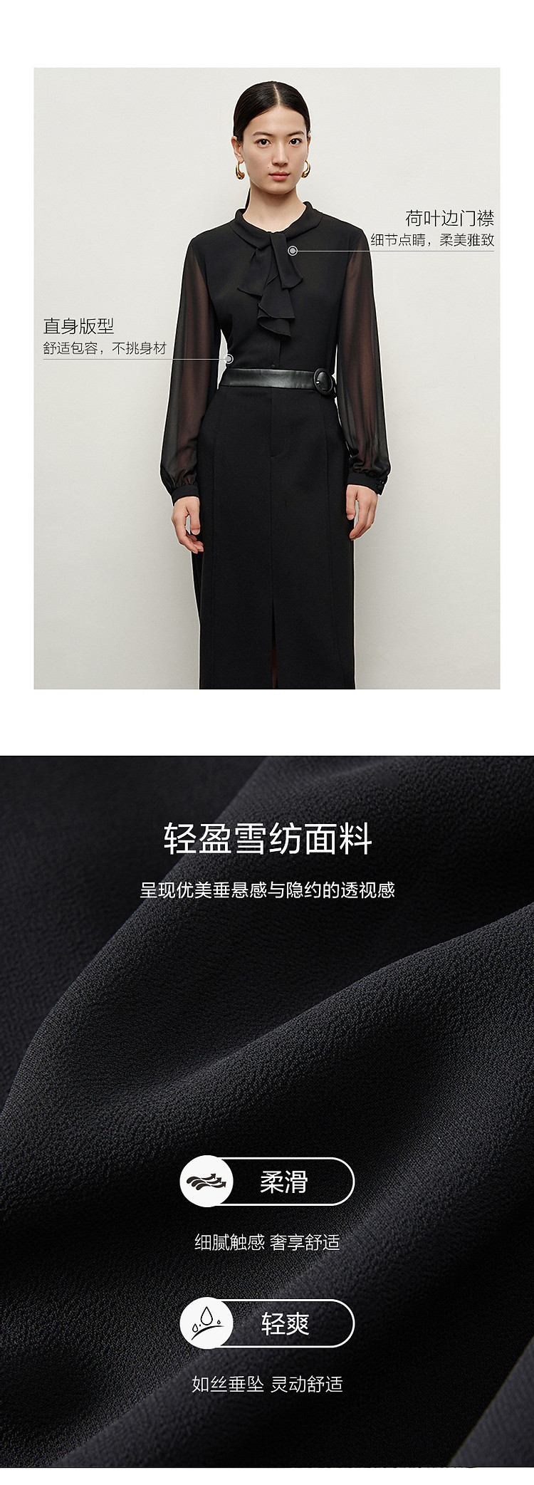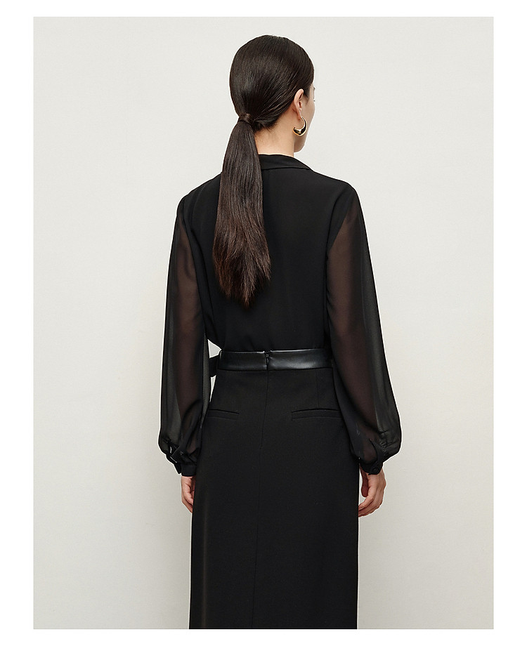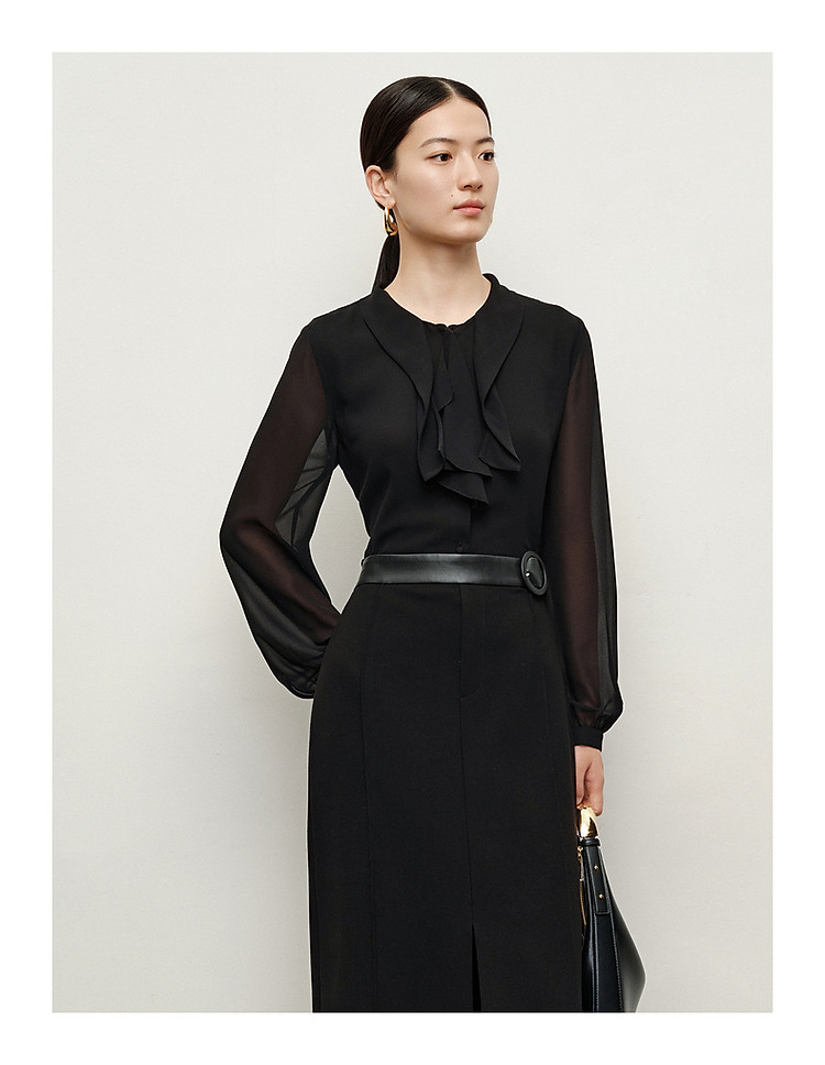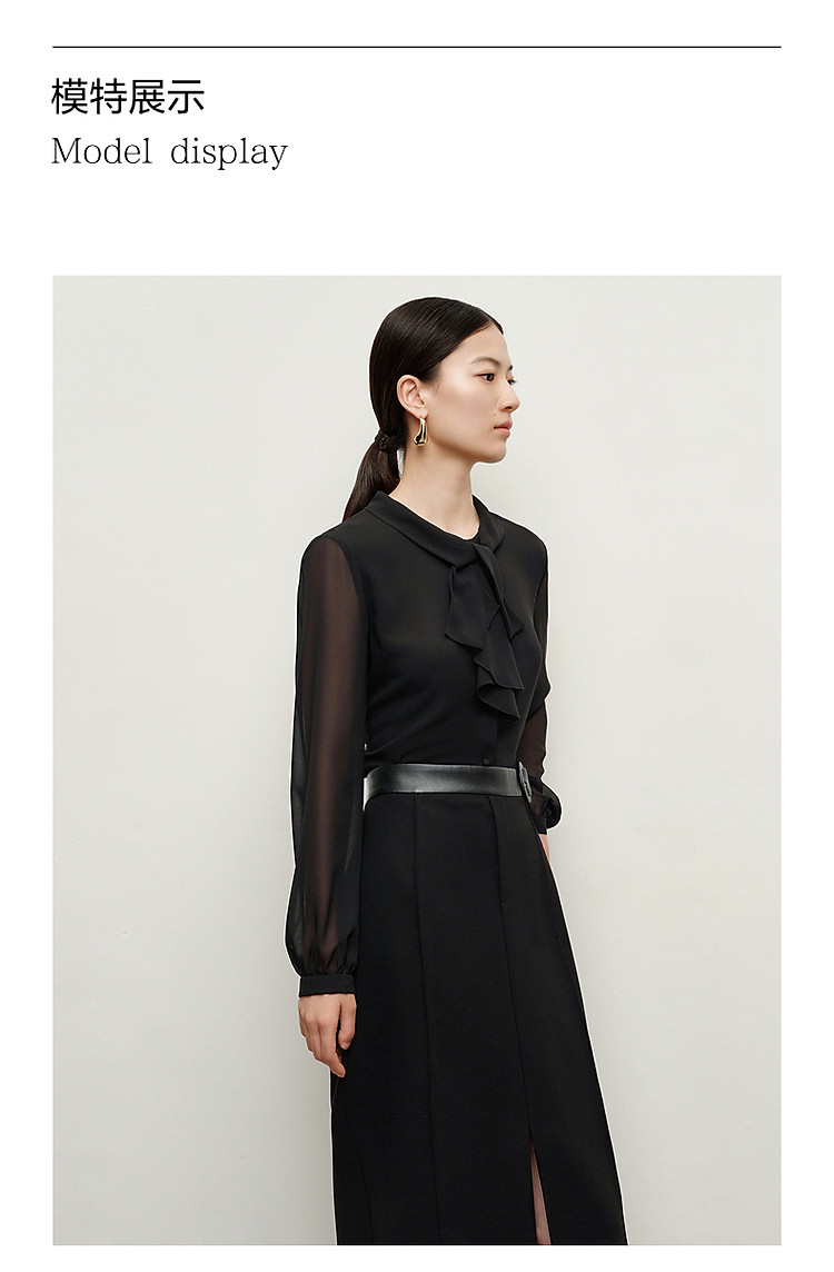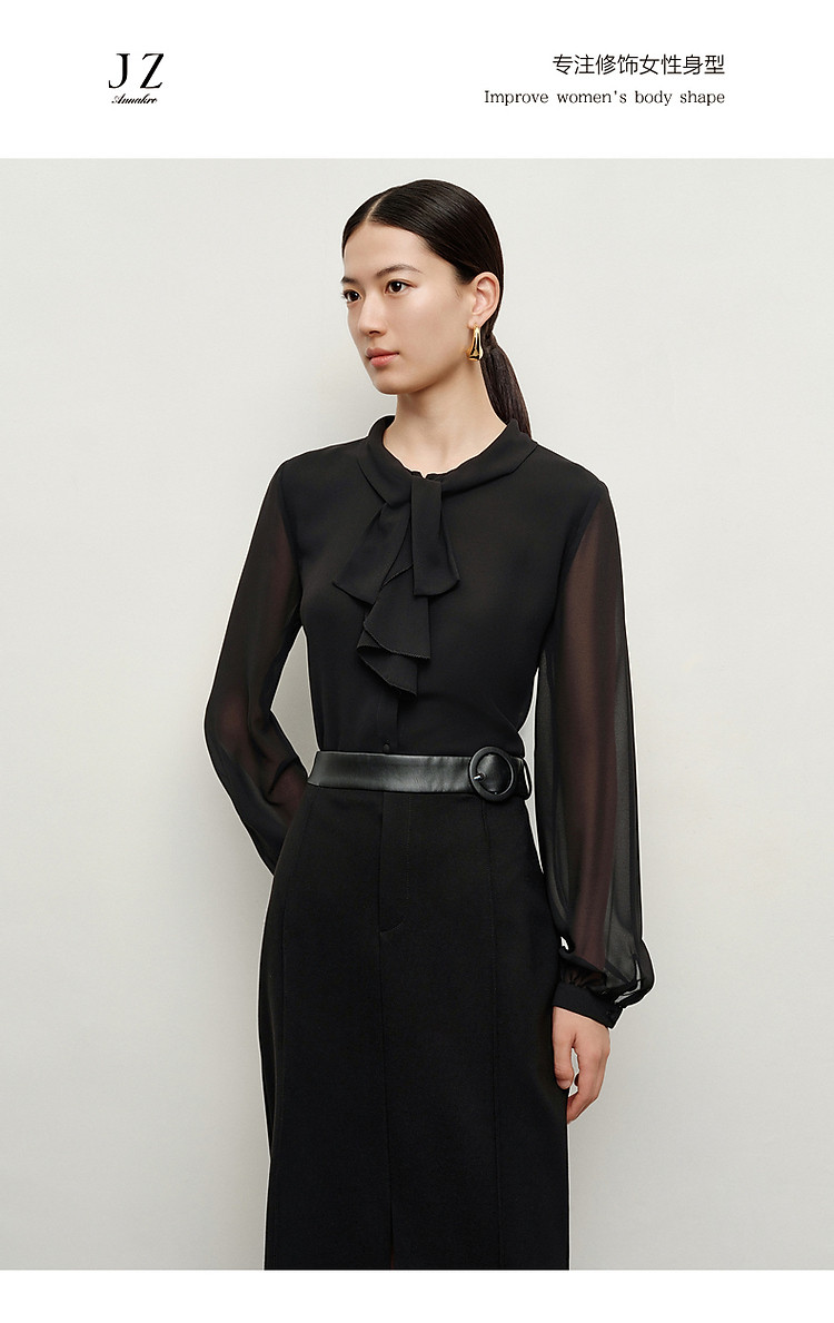 商品名称:玖姿旗下安娜蔻系列法式优雅都市风荷叶边雪纺长袖衬衫女秋季 646924