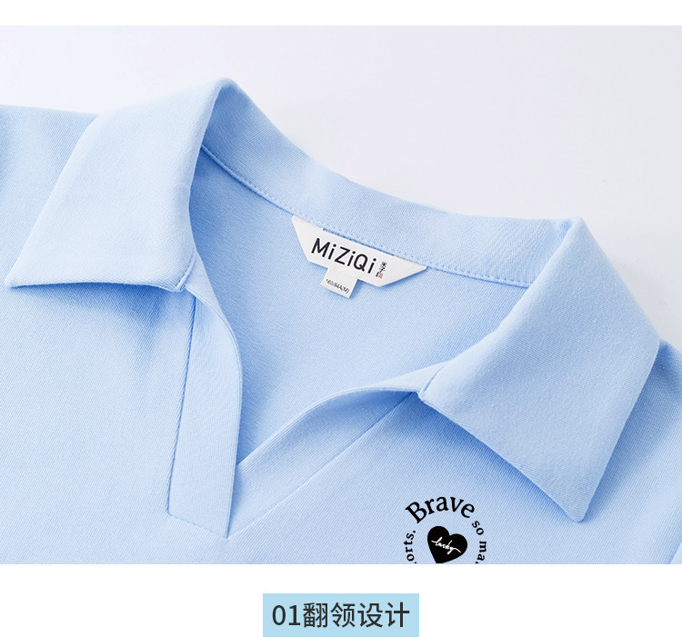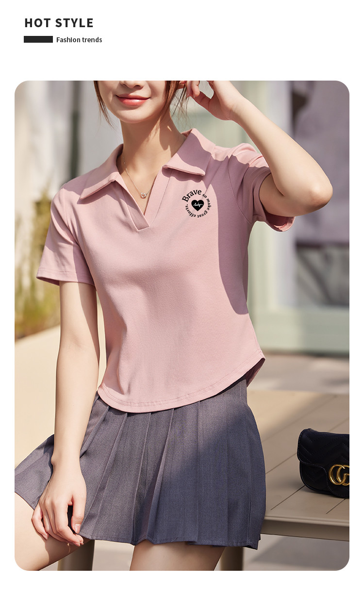 米子旗夏季翻领印花T恤女短款修身显瘦简约小个子短袖上衣 108634