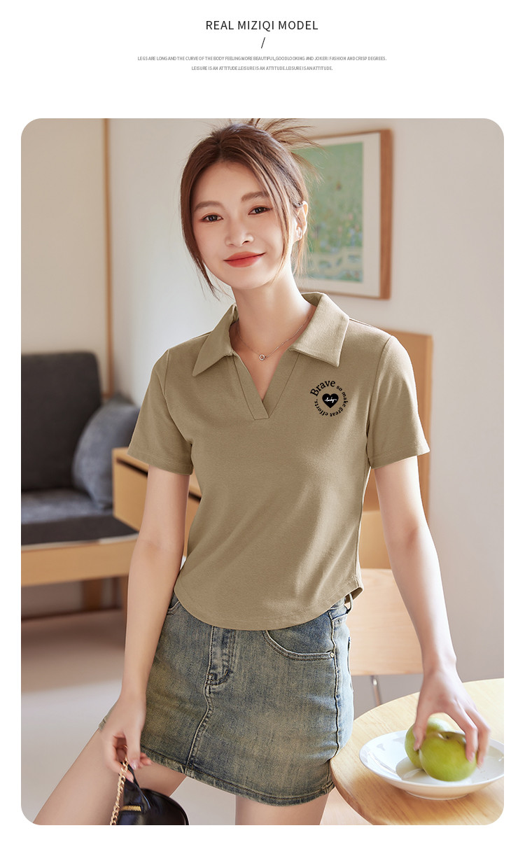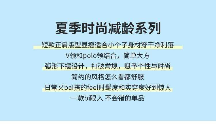 商品名称:米子旗夏季翻领印花T恤女短款修身显瘦简约小个子短袖上衣 108634