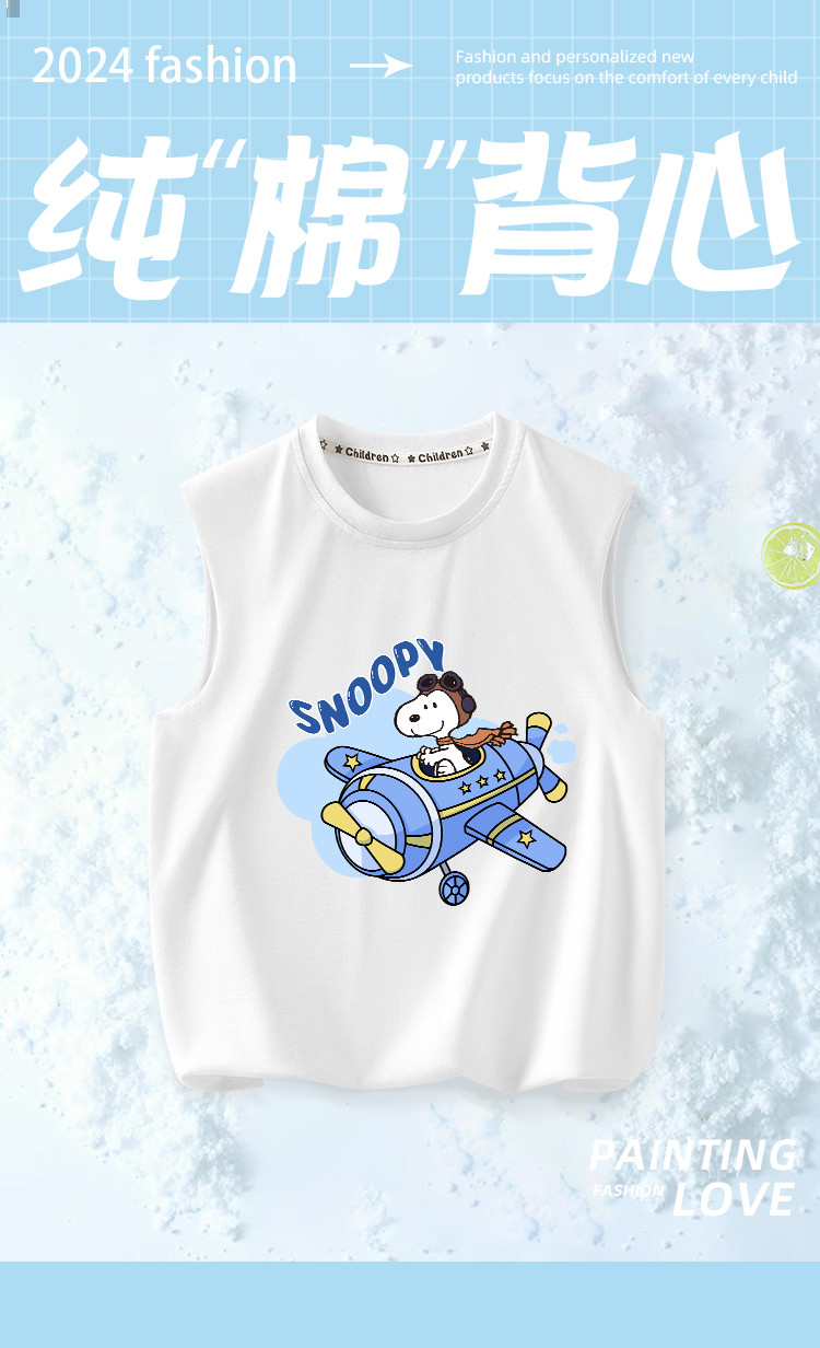 商品名称:男童背心纯棉夏季2025新款儿童透气无袖T恤上装男孩衣服 128607