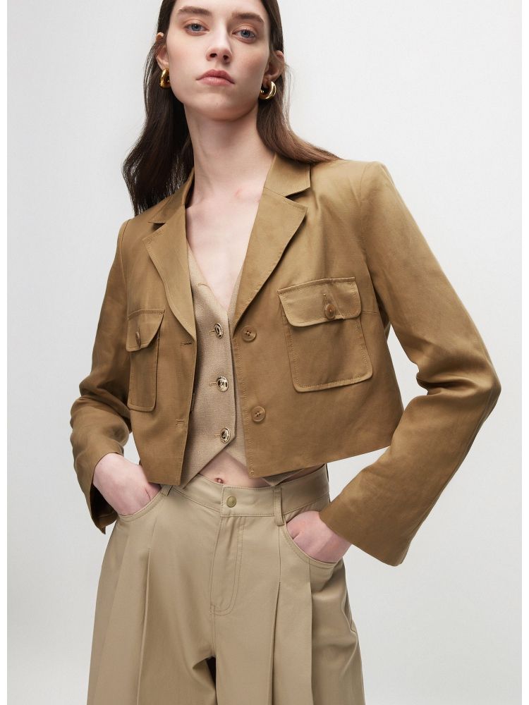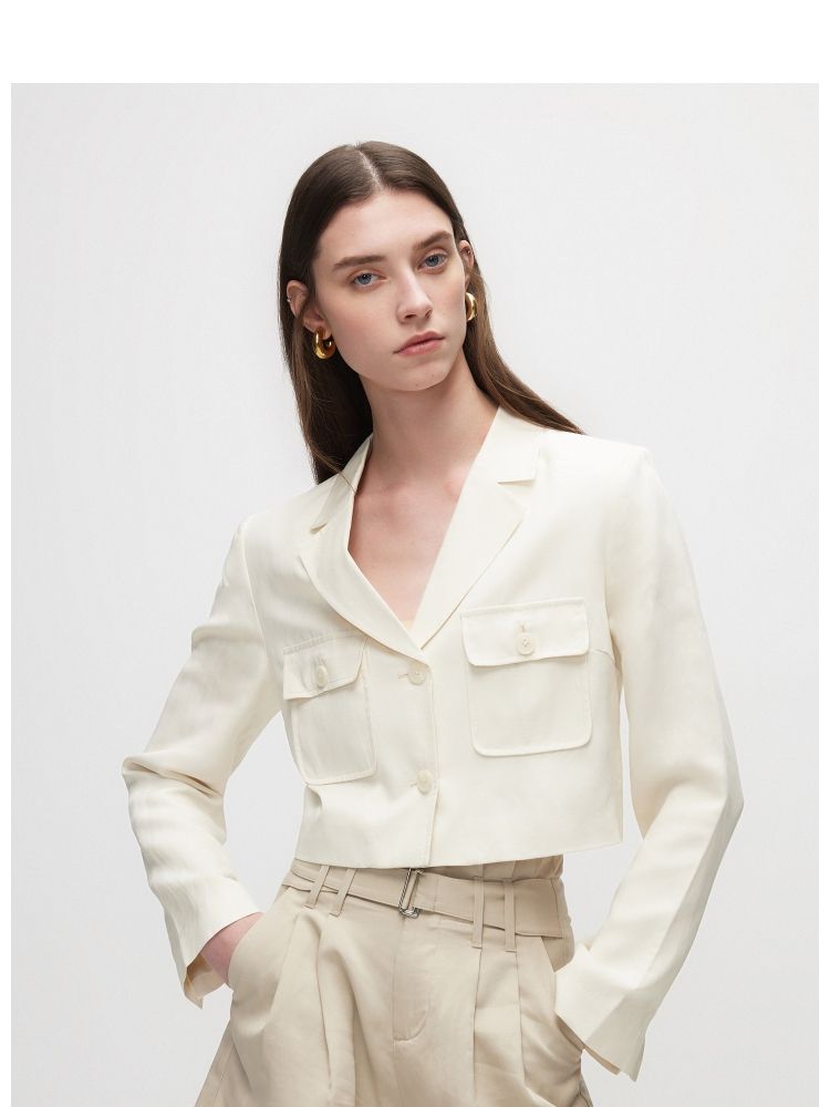商品名称:【通勤OL风】春季宽松正肩长袖短款翻领西服女 372698