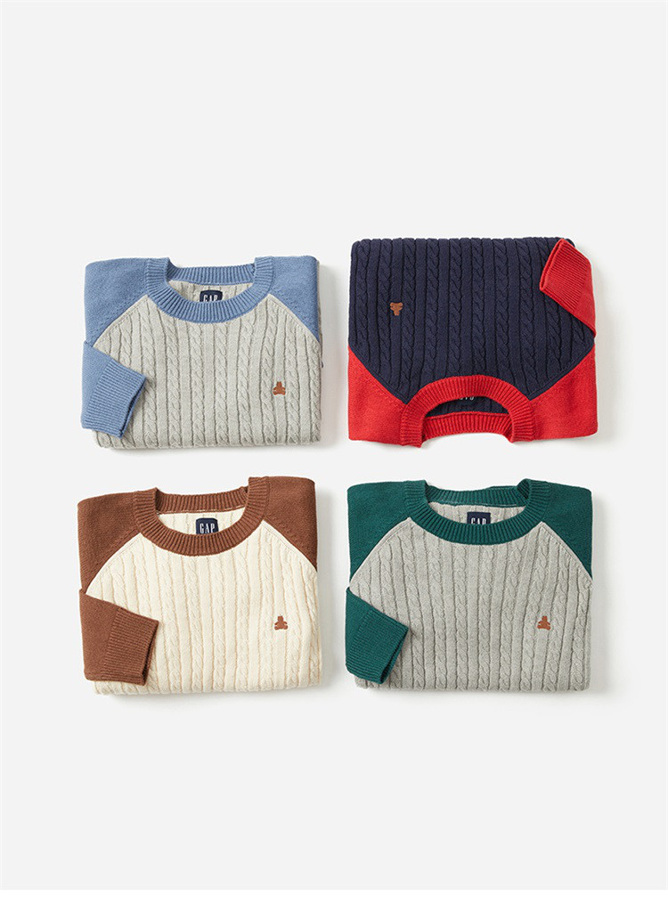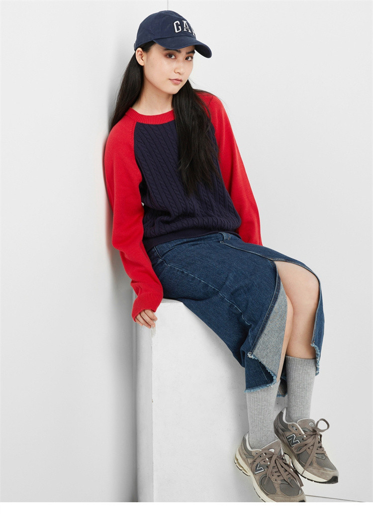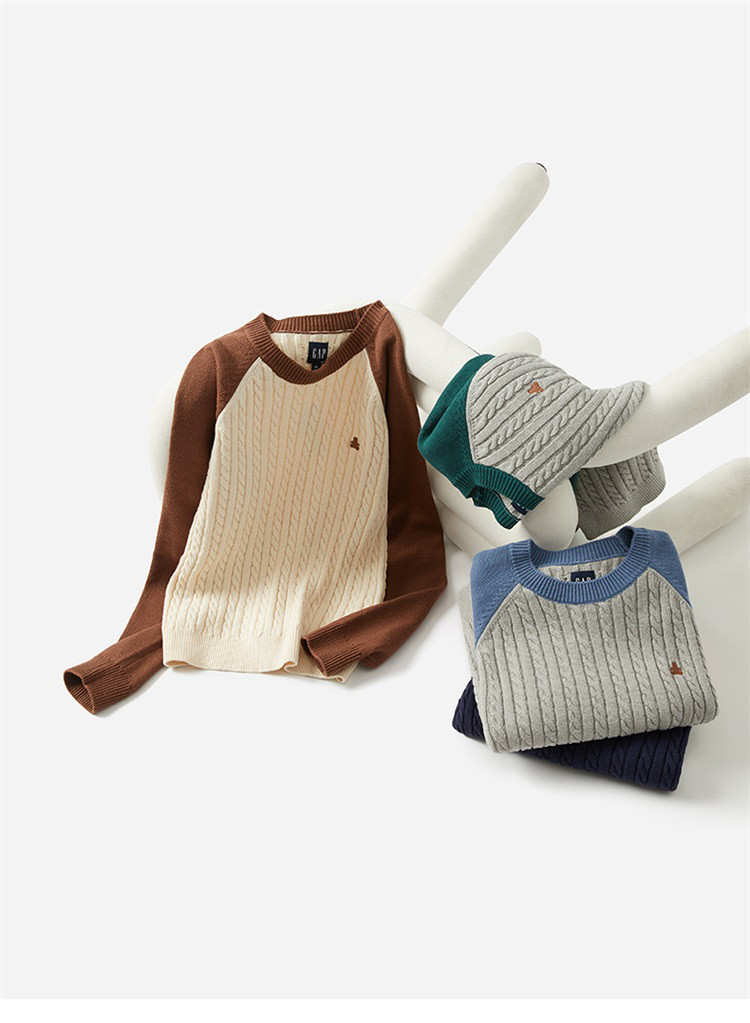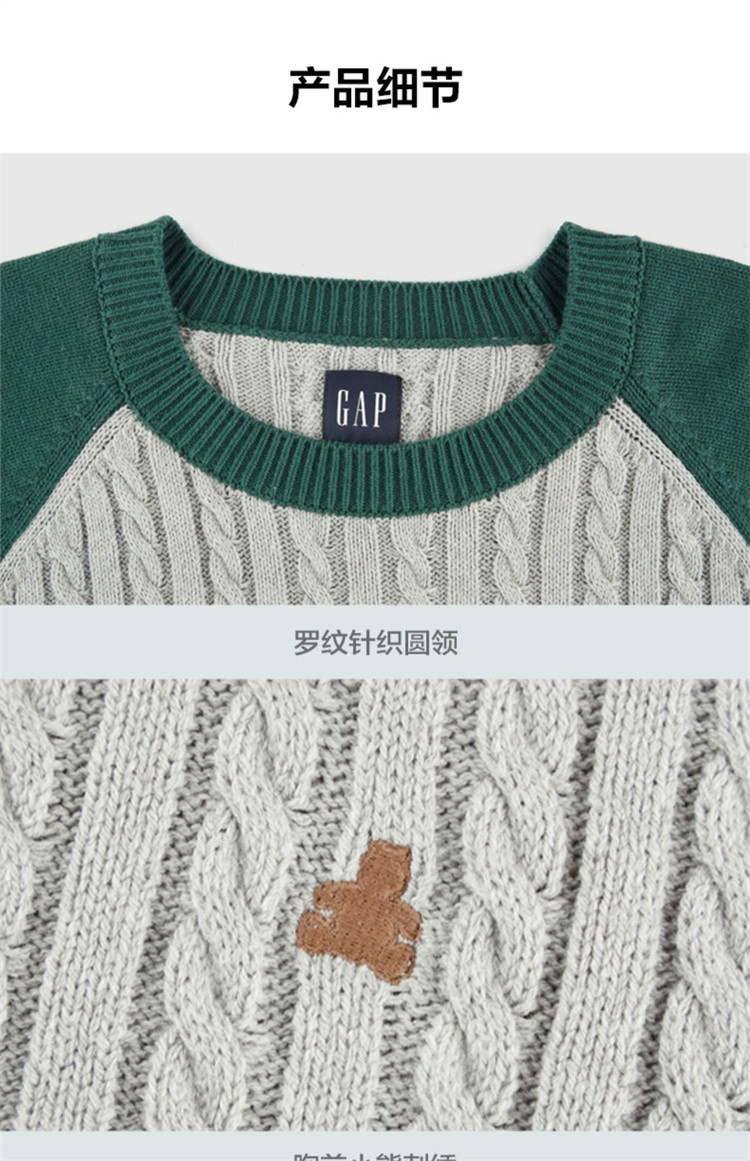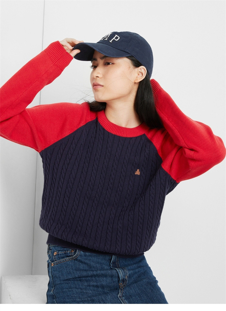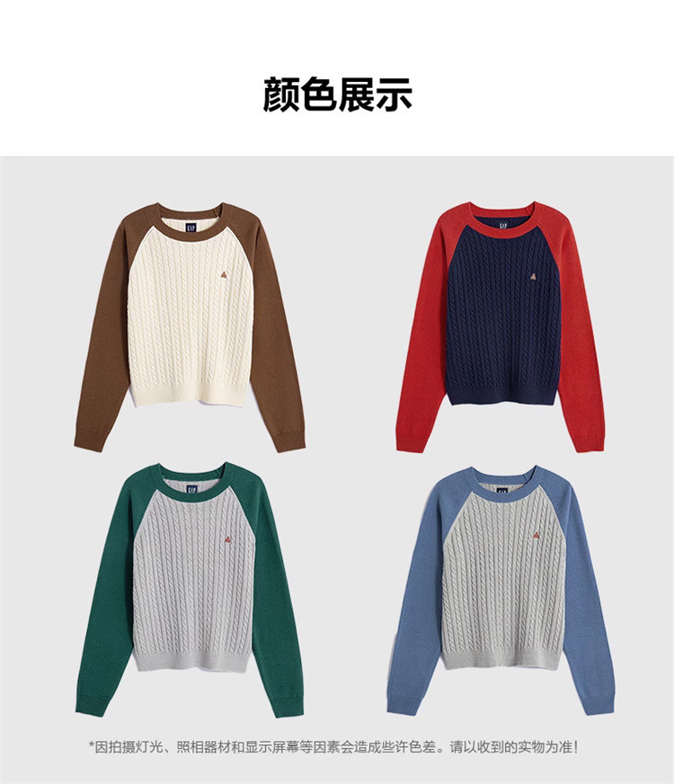 Gap女装秋LOGO撞色插肩袖圆领毛衣714970宽松上衣 606234