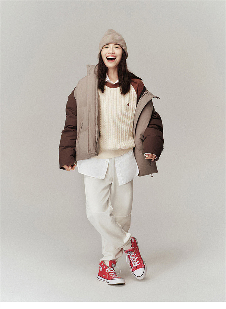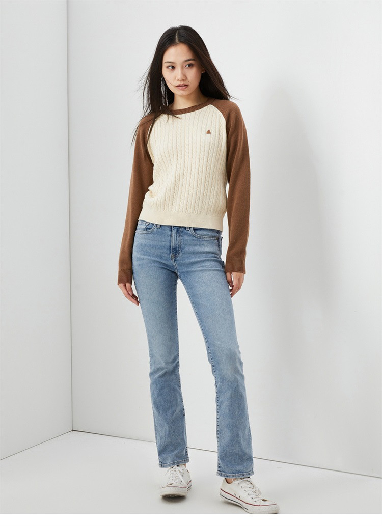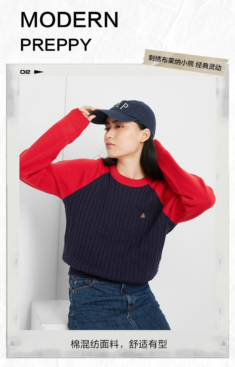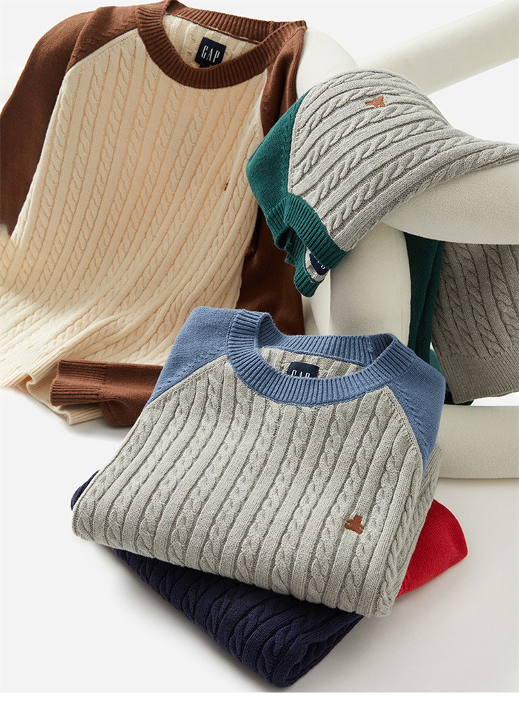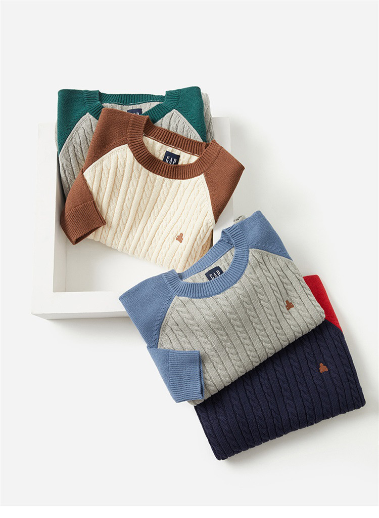 Gap女装秋LOGO撞色插肩袖圆领毛衣714970宽松上衣 606234