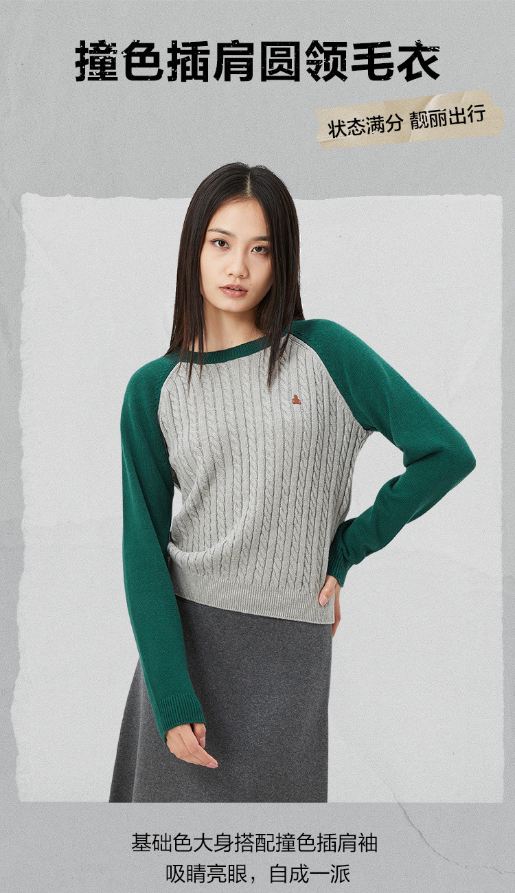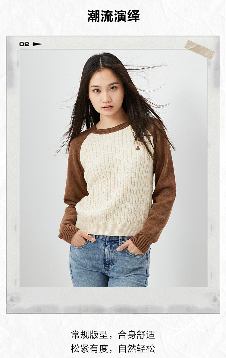 商品名称:Gap女装秋LOGO撞色插肩袖圆领毛衣714970宽松上衣 606234