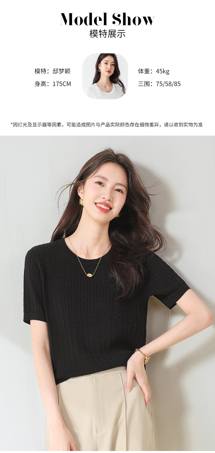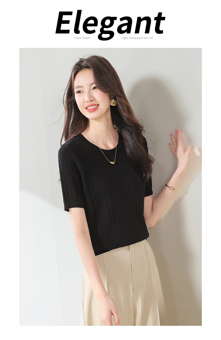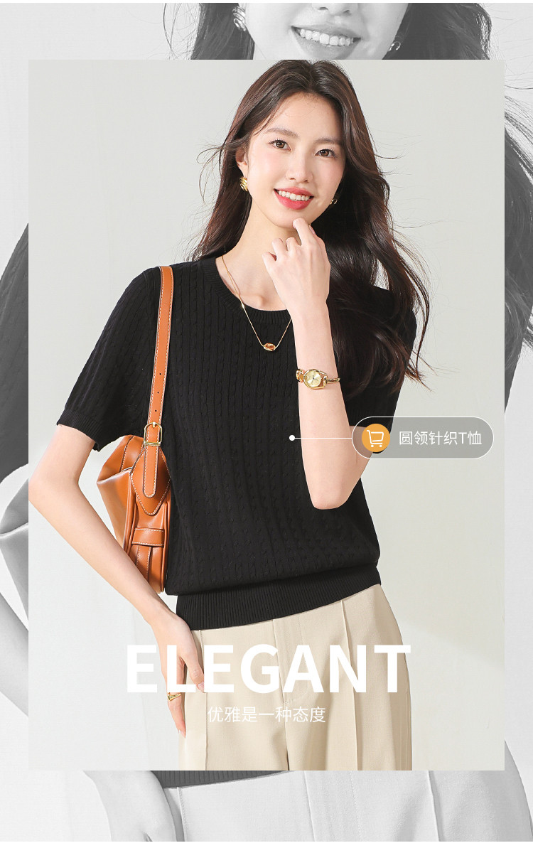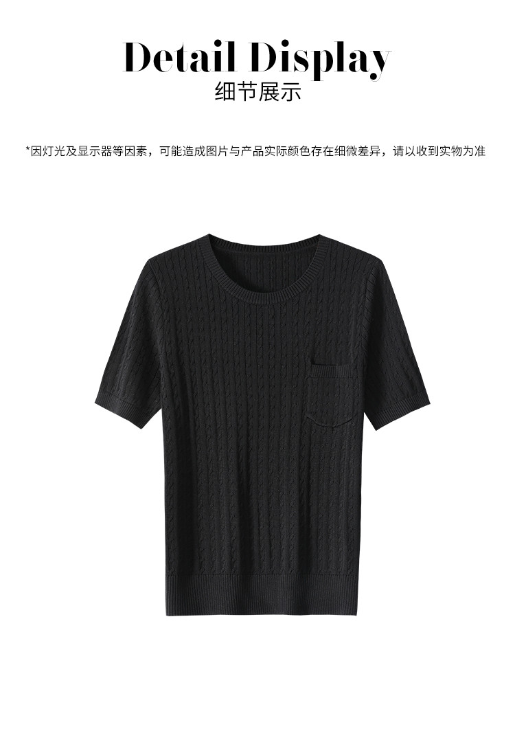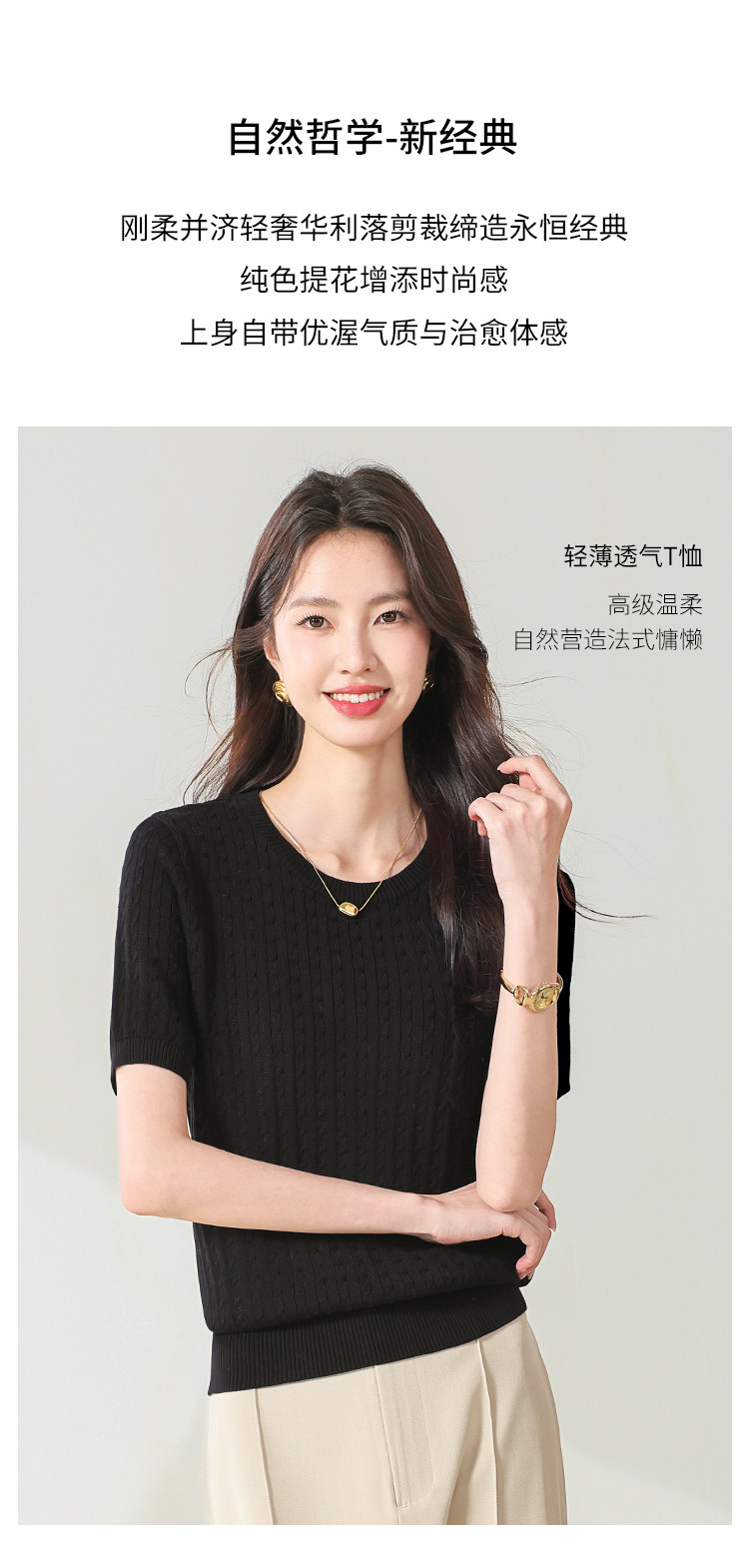 商品名称:【含桑蚕丝】轻薄透气圆领纯色提花针织短袖T恤 517587