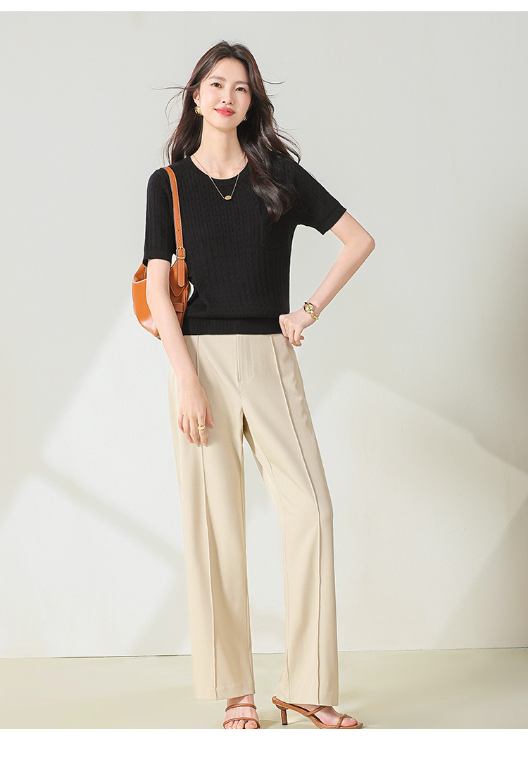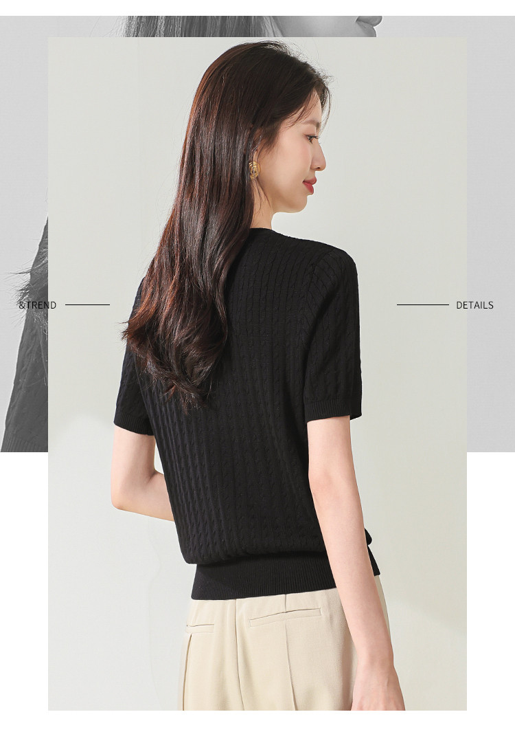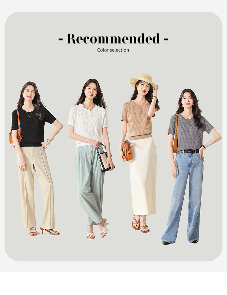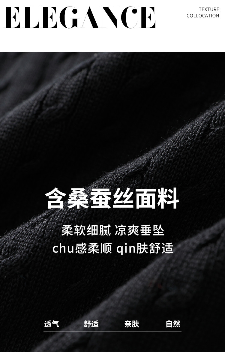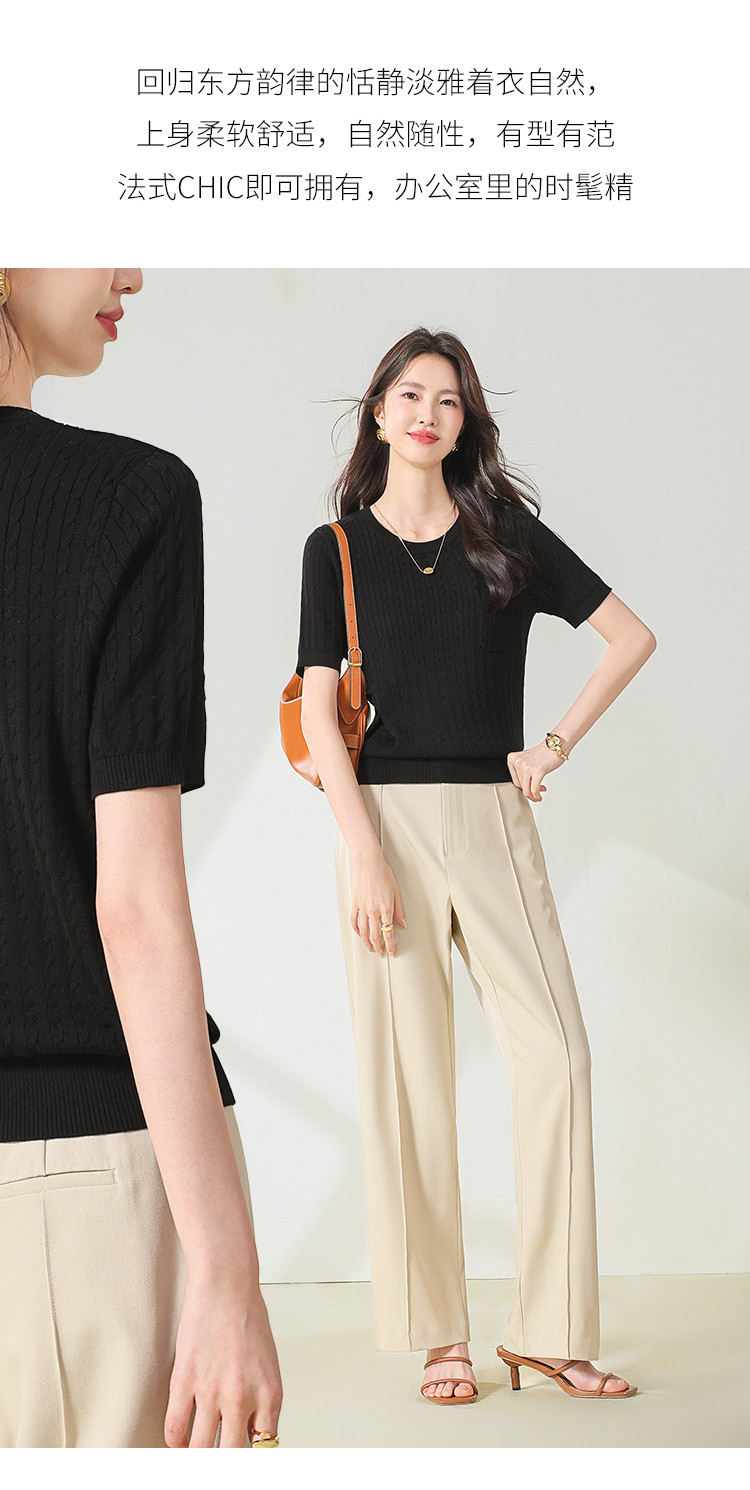 商品名称:【含桑蚕丝】轻薄透气圆领纯色提花针织短袖T恤 517587