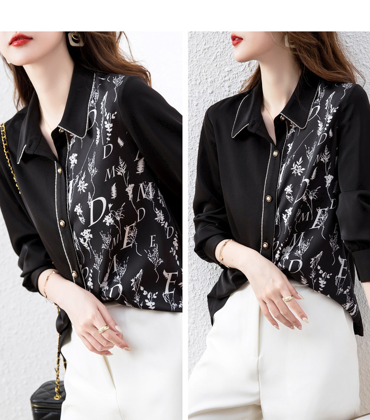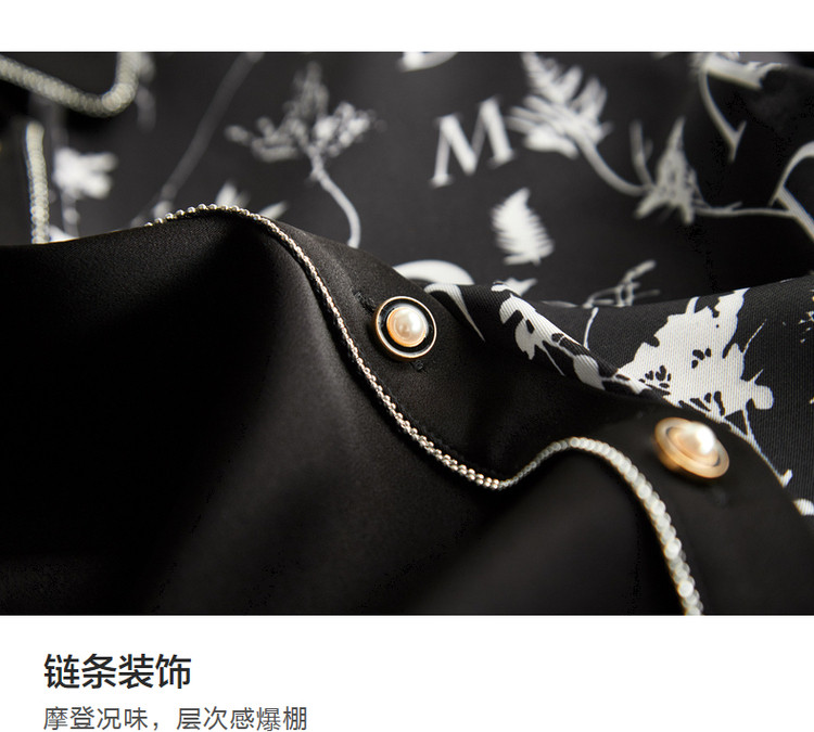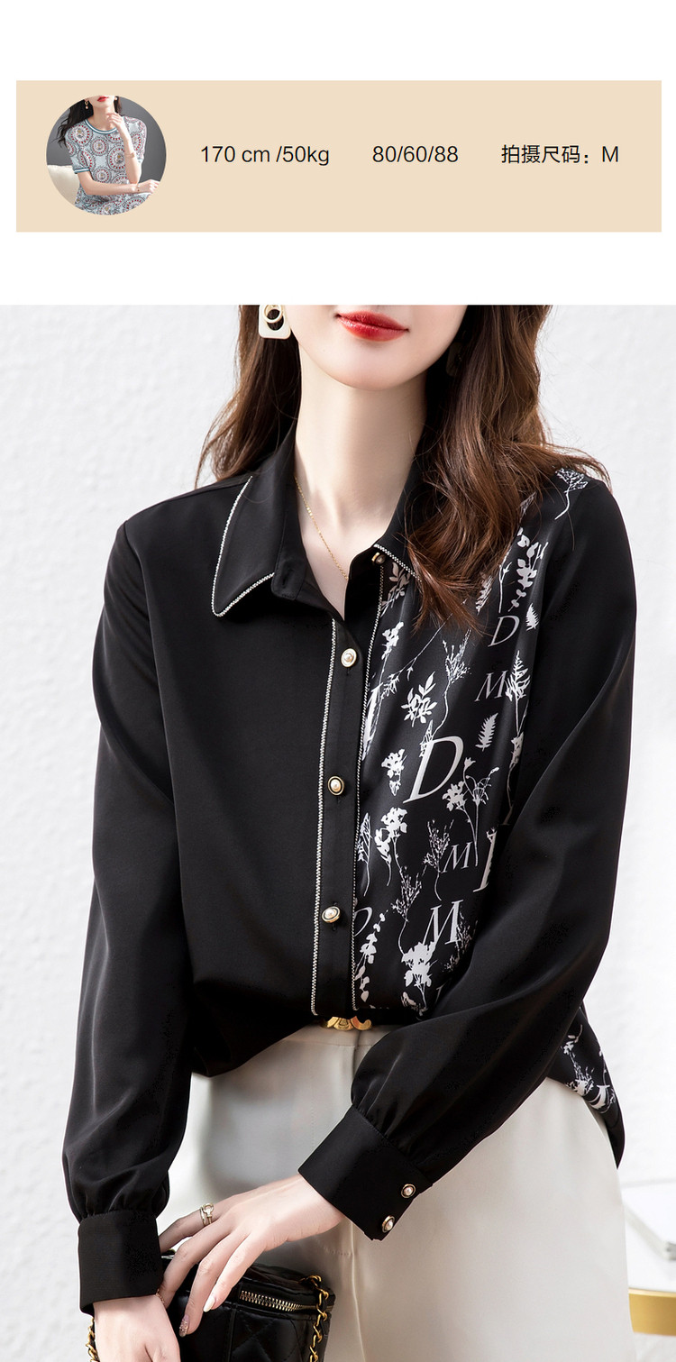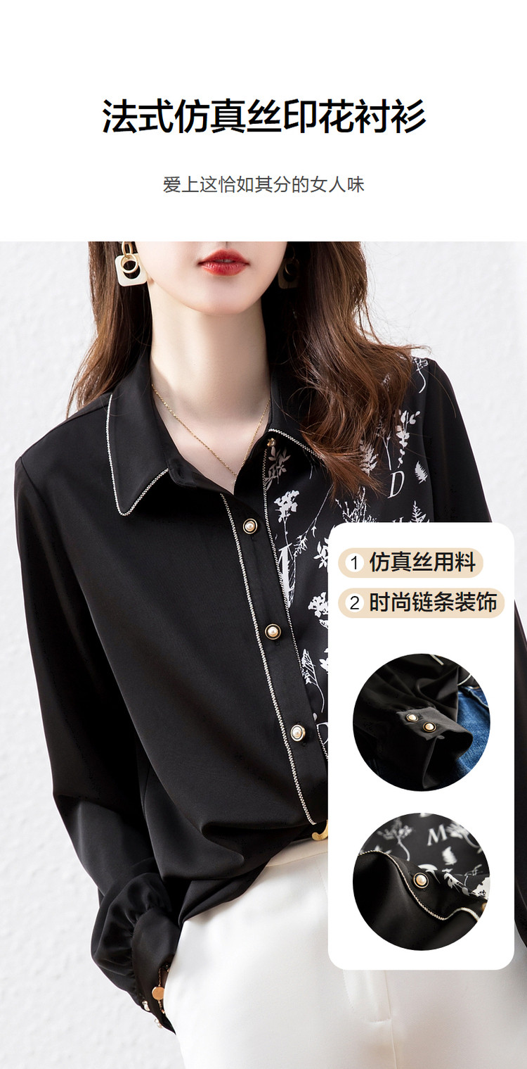 商品名称:春秋新拼接翻领印花链条装饰衬衫女春秋季上衣 698689