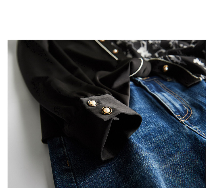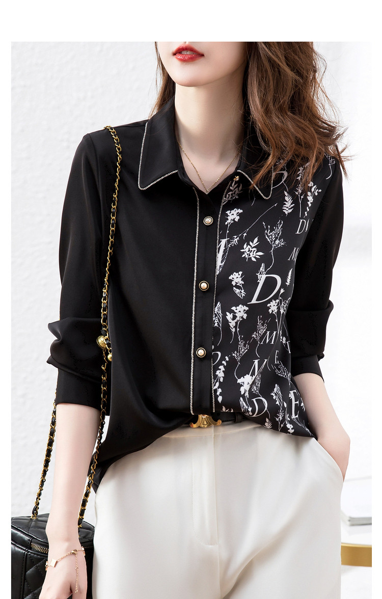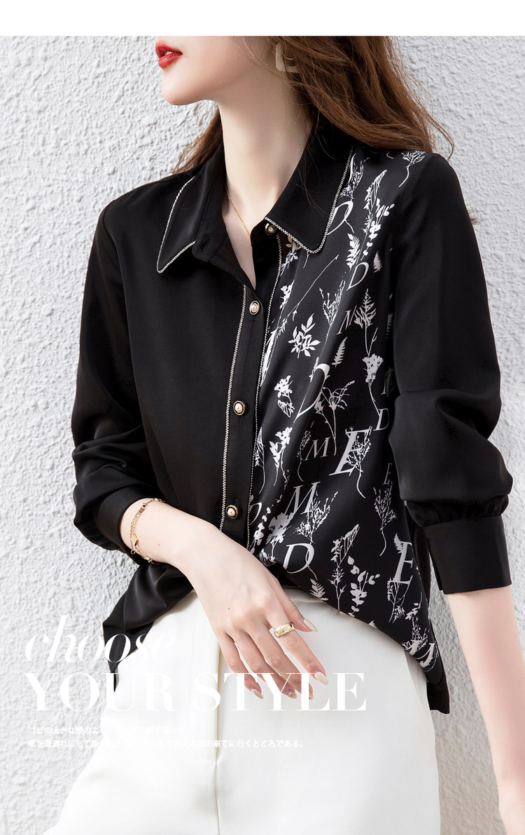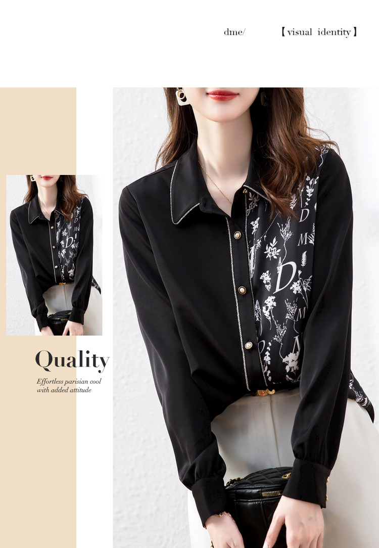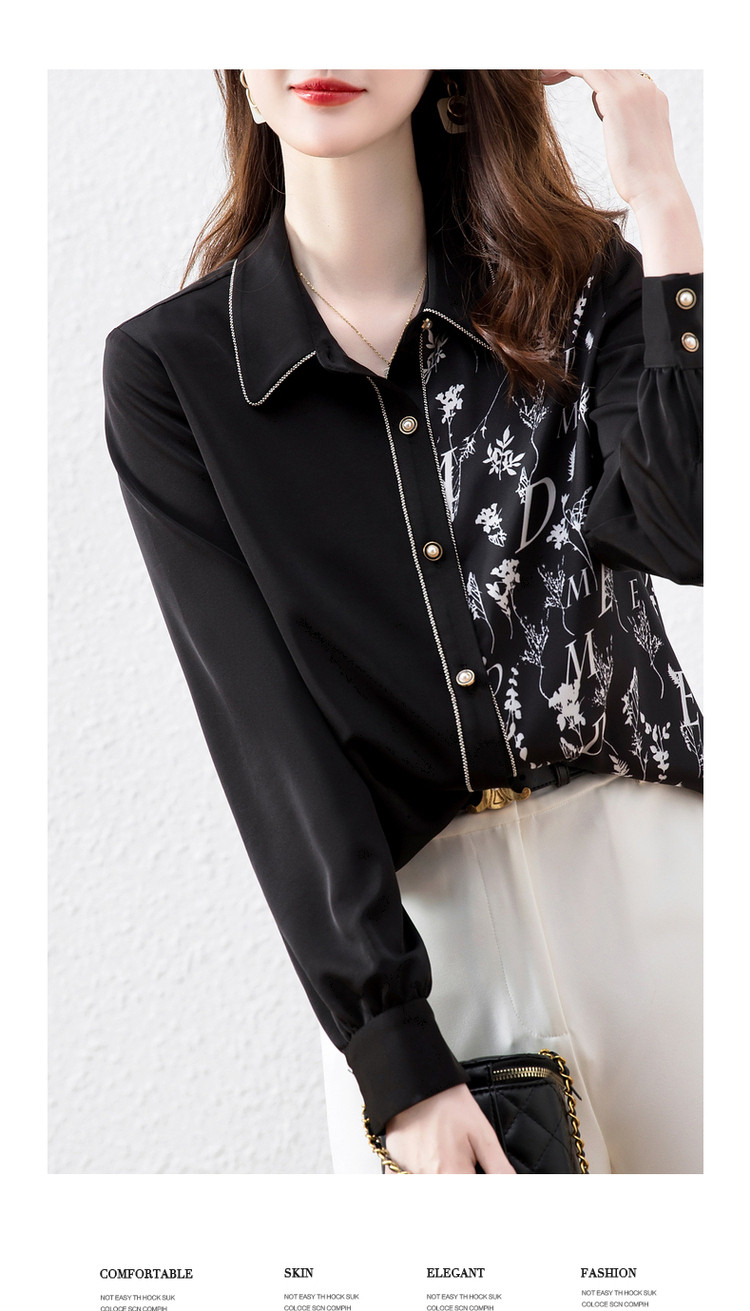 商品名称:春秋新拼接翻领印花链条装饰衬衫女春秋季上衣 698689