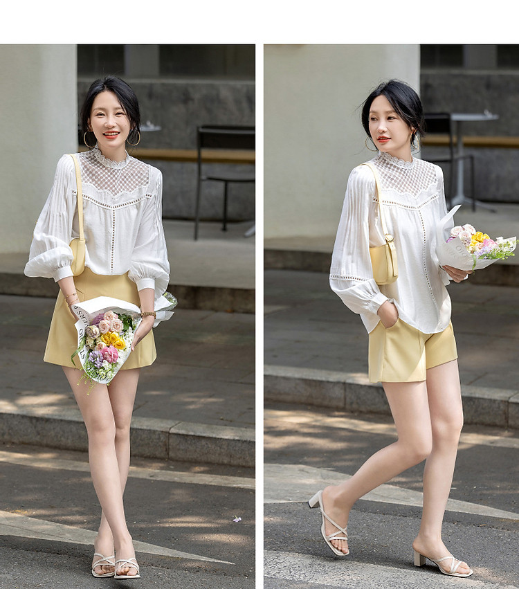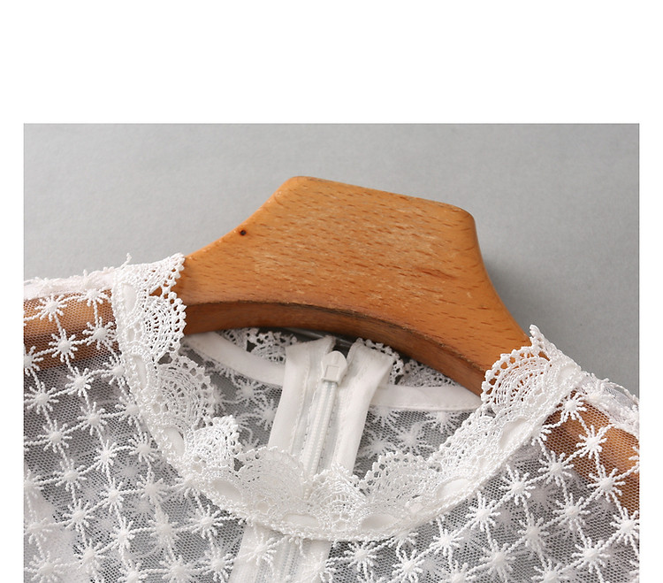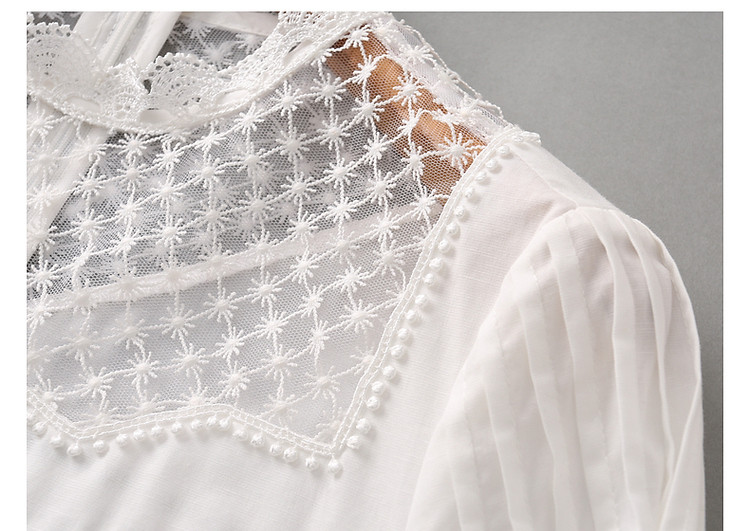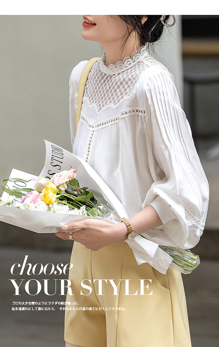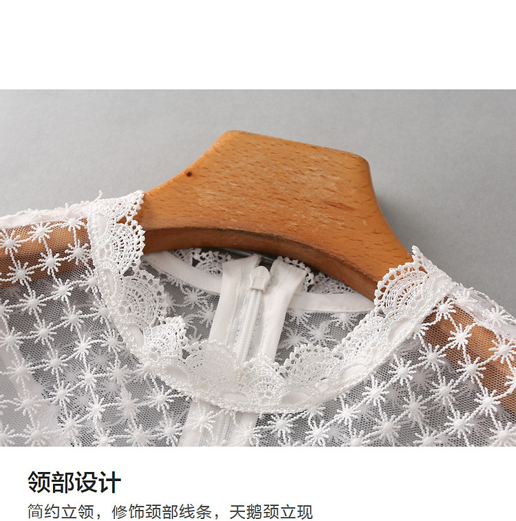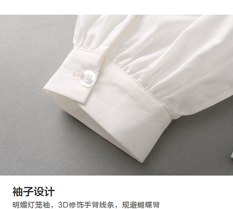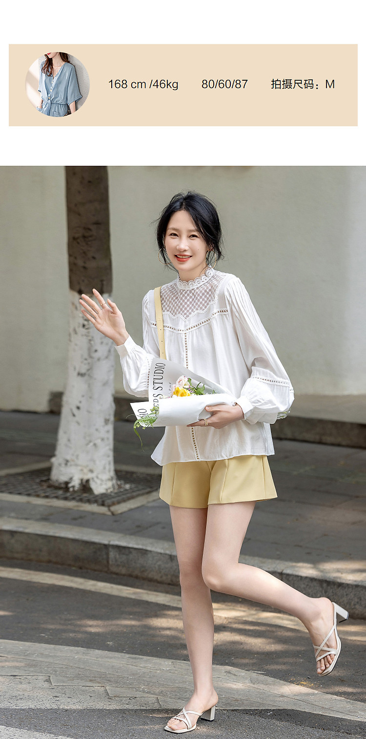 商品名称:【天使之吻】春秋法式立领一粒扣灯笼袖衬衫绣花拼接衬衣女上衣 891969