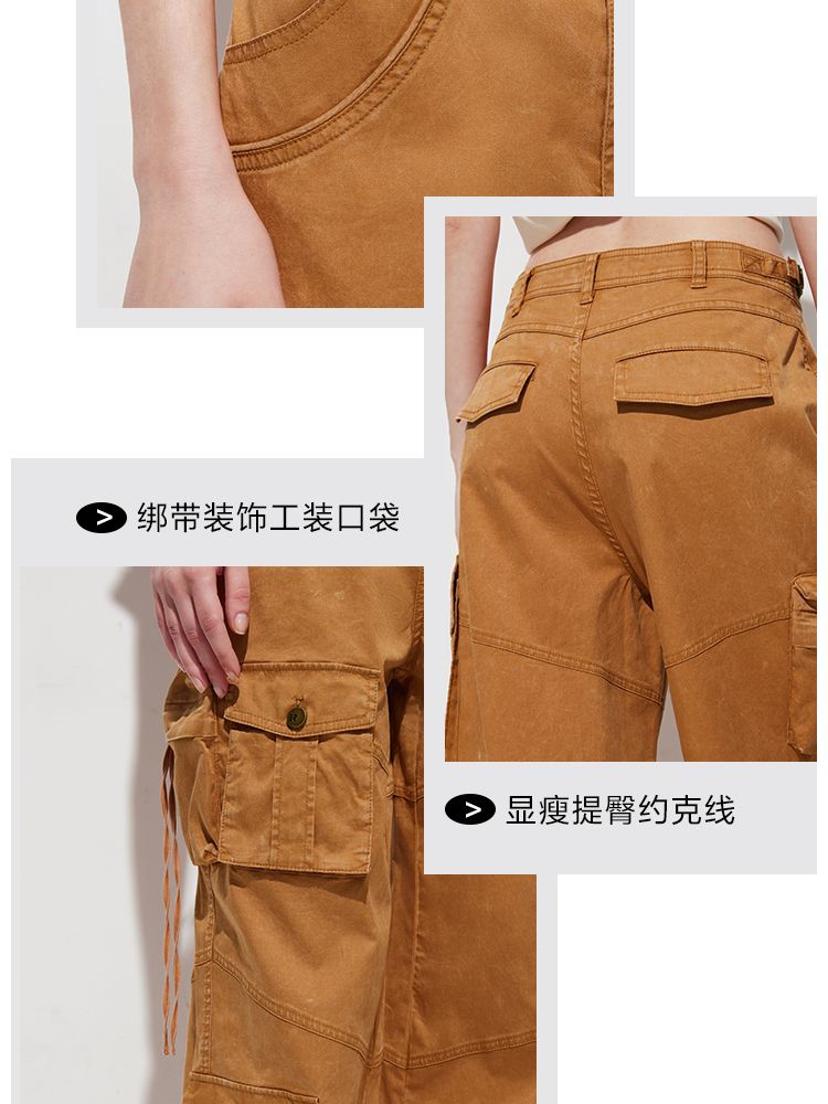 商品名称:【潮酷工装风】夏季宽松高腰直筒裤休闲裤女 529306