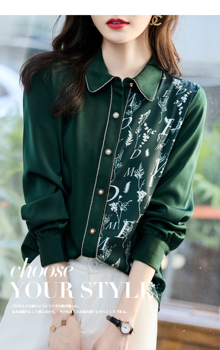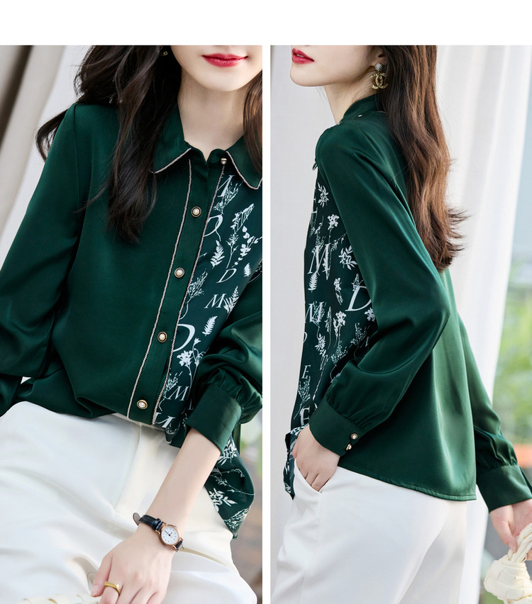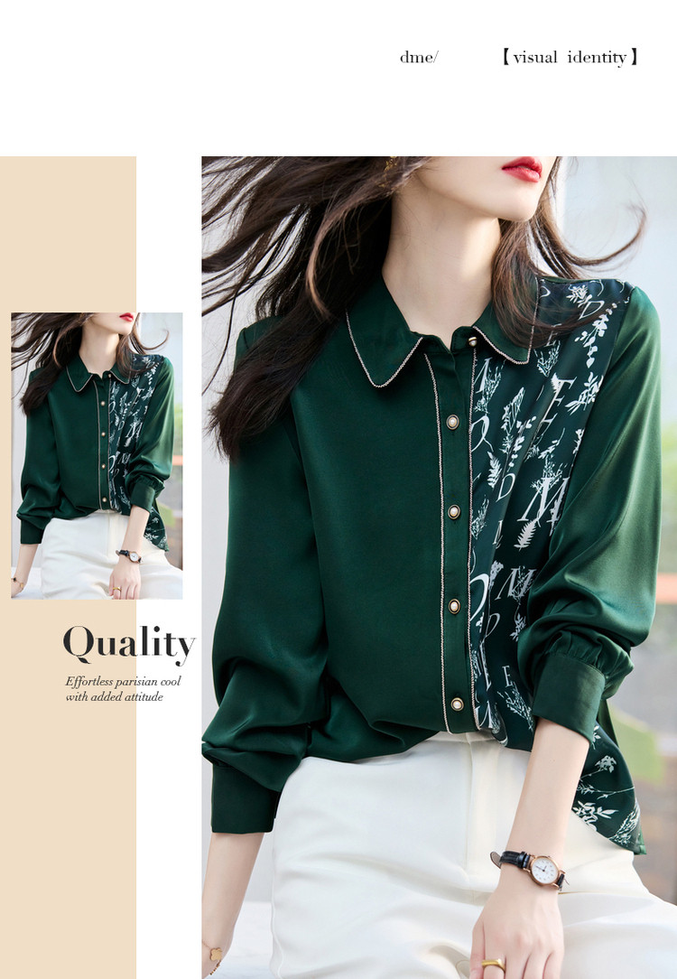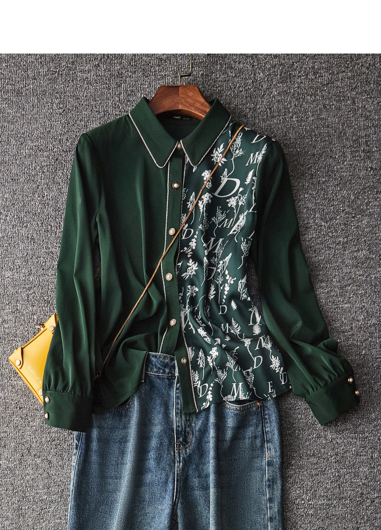 商品名称:春秋新拼接翻领印花链条装饰衬衫女春秋季上衣 670017