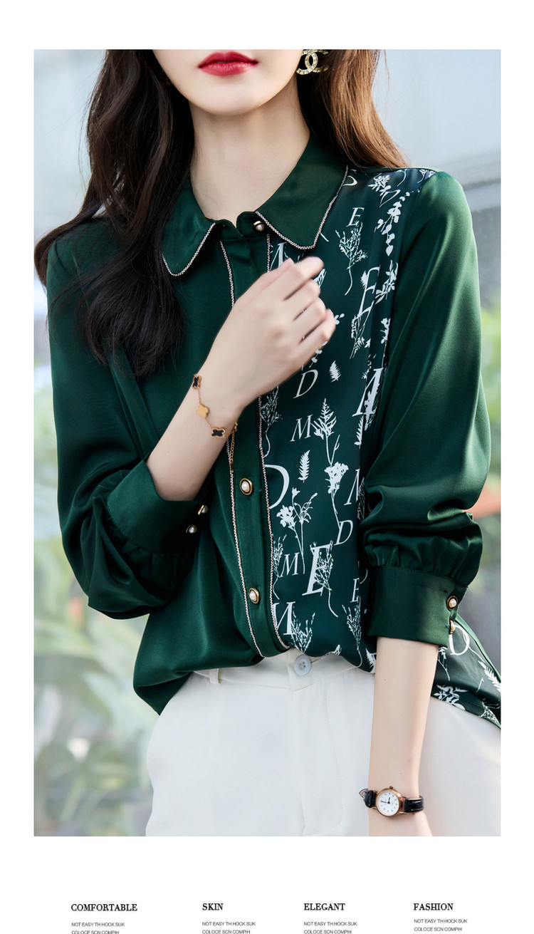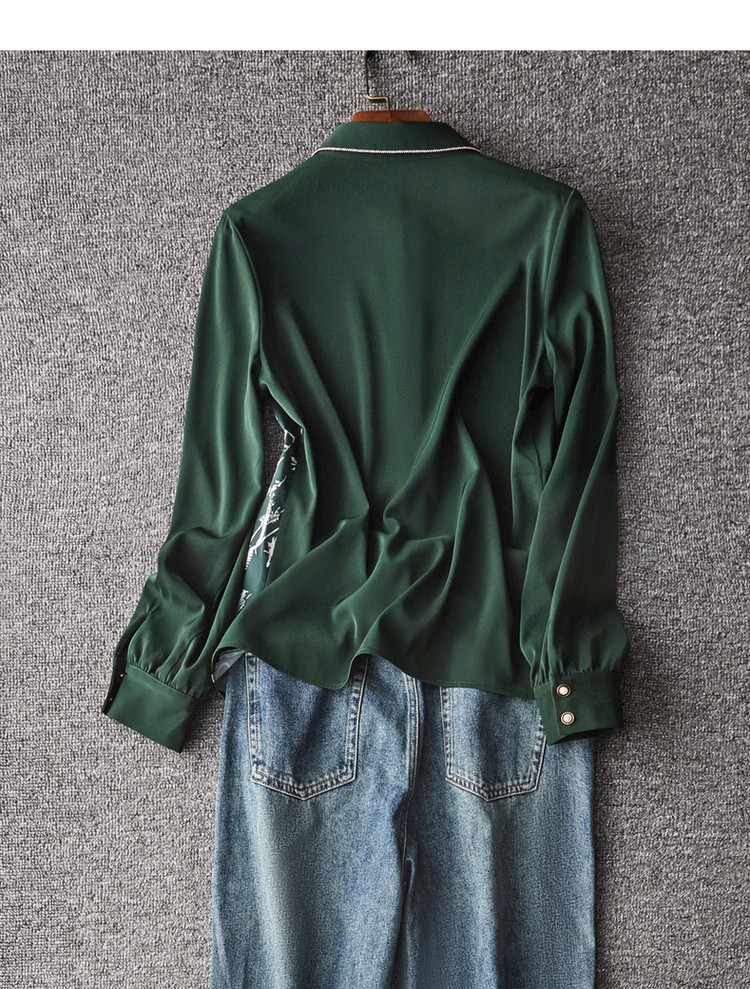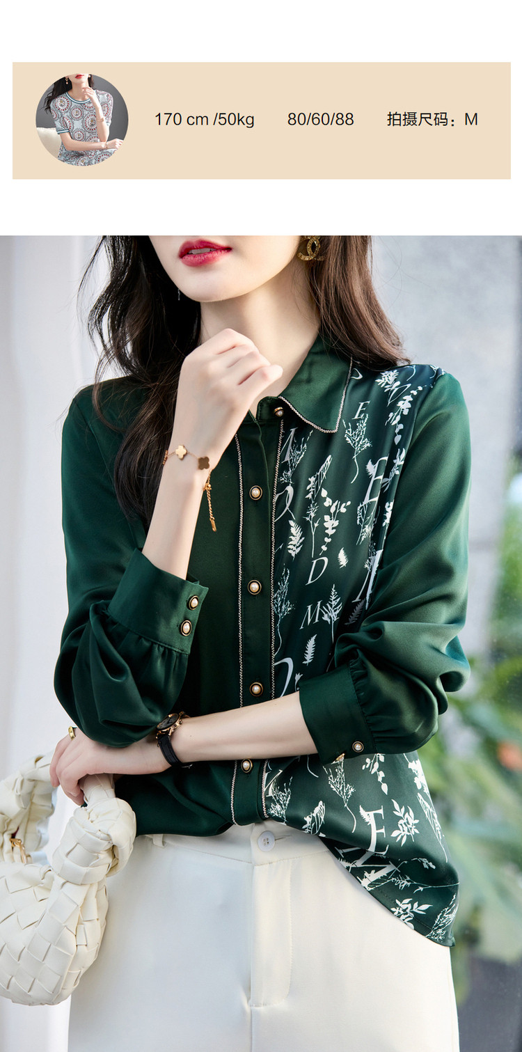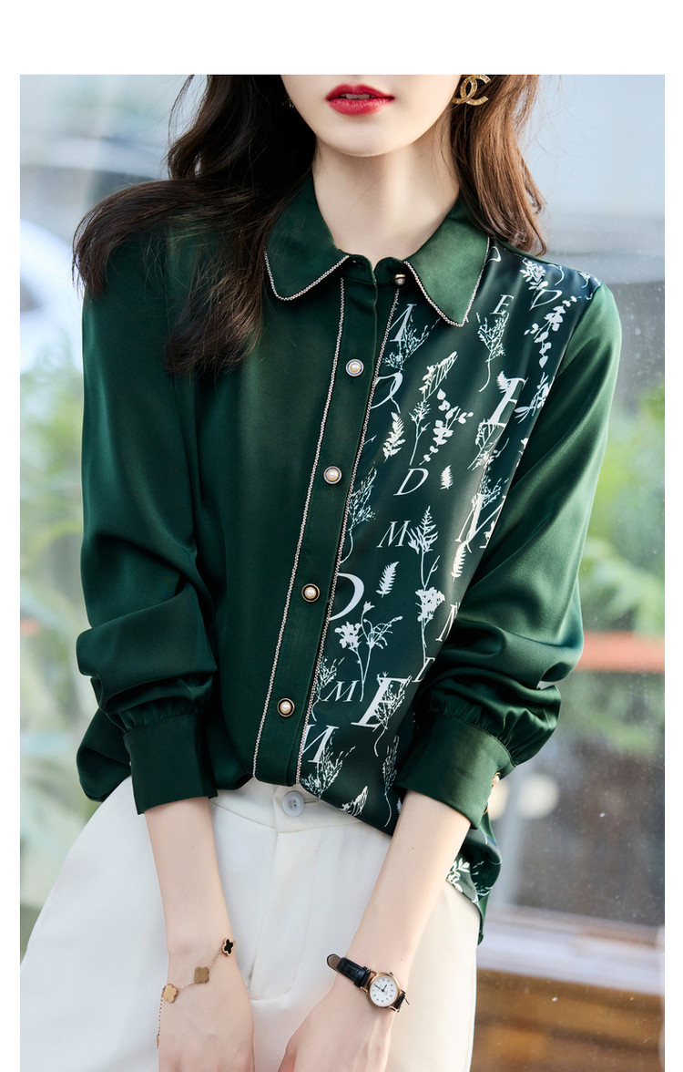 商品名称:春秋新拼接翻领印花链条装饰衬衫女春秋季上衣 670017