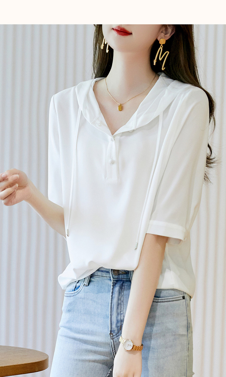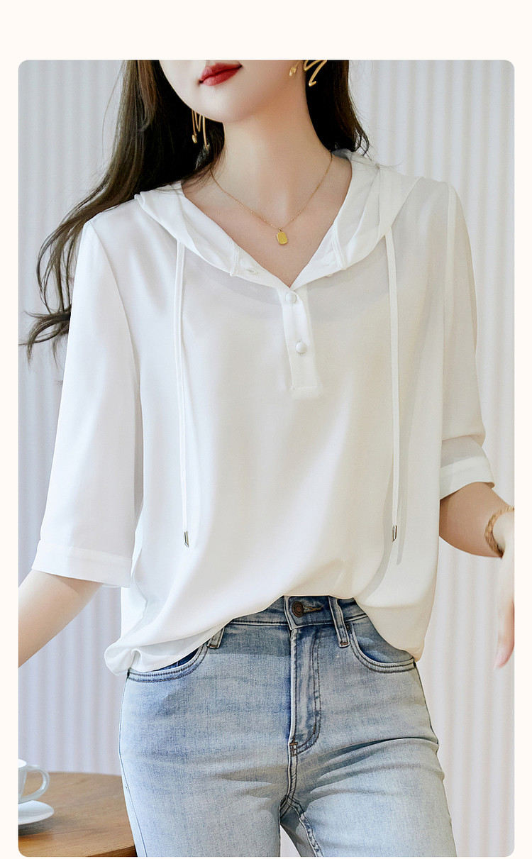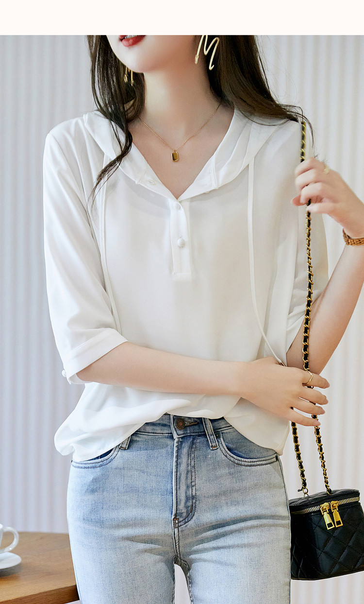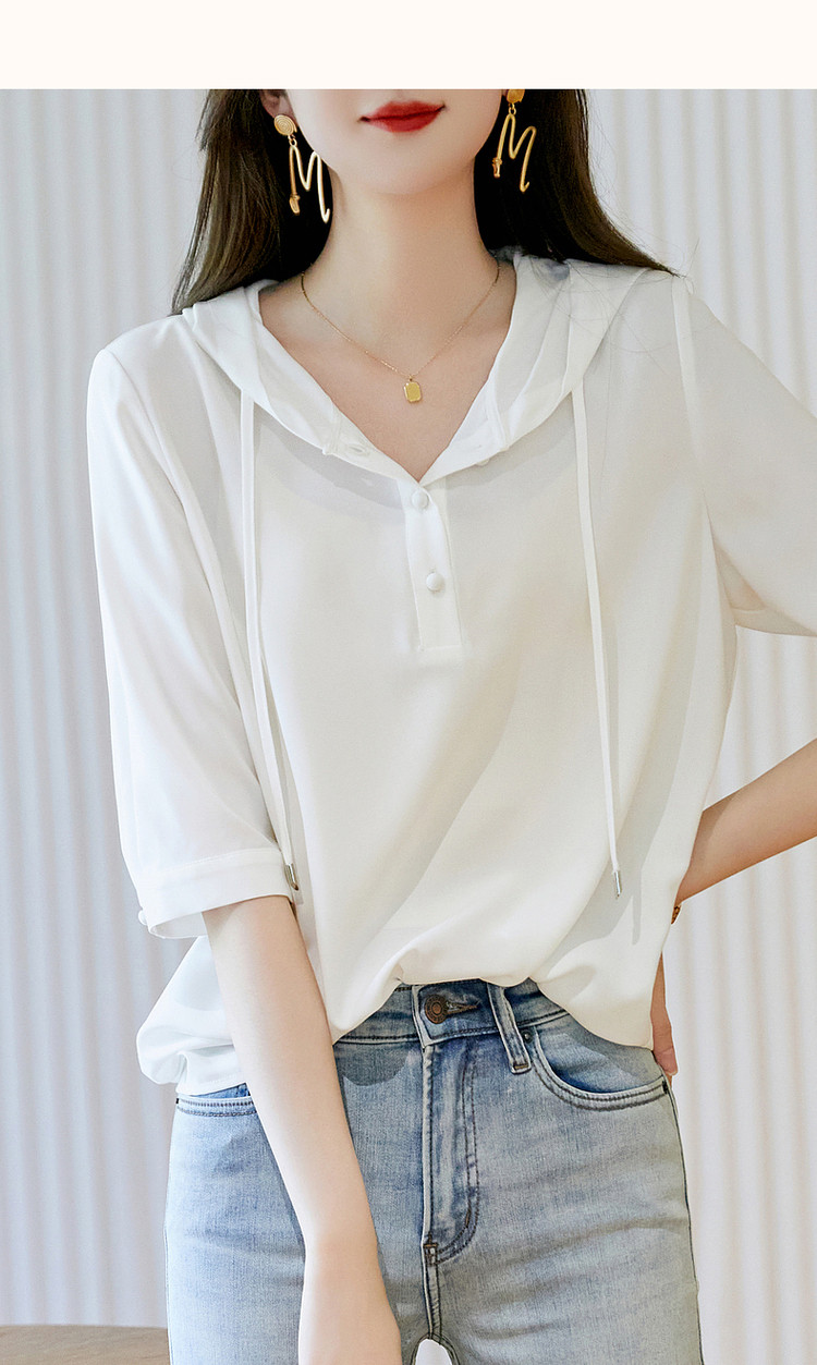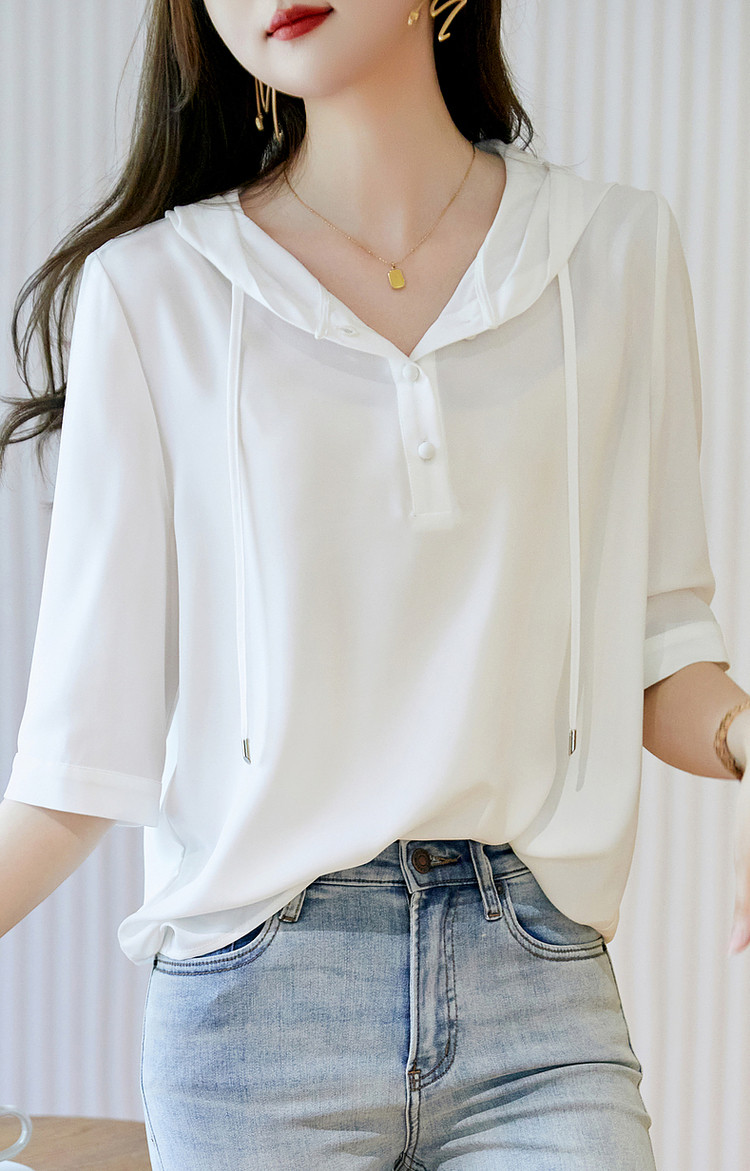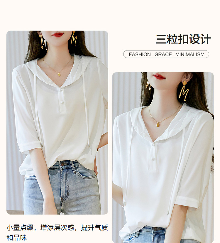 商品名称:【通勤衬衫】夏季通勤风街拍透气连帽活力衬衫女 711425