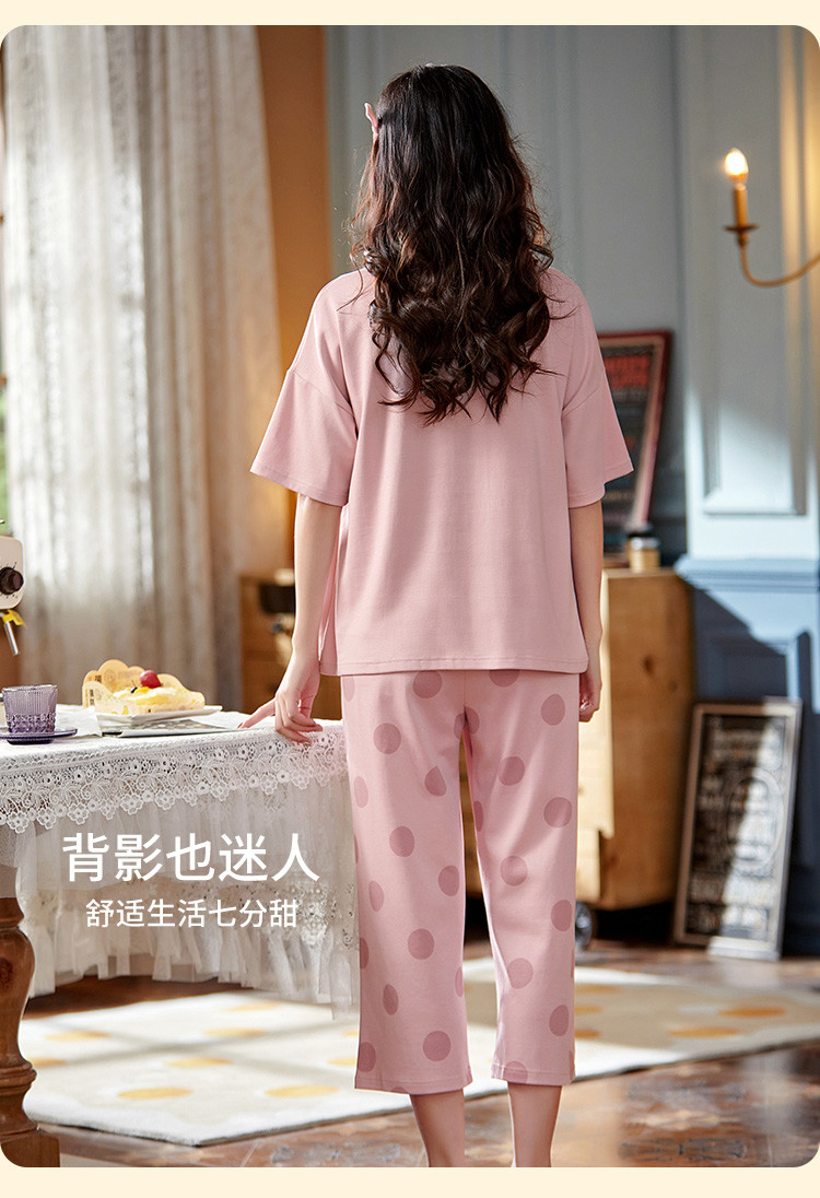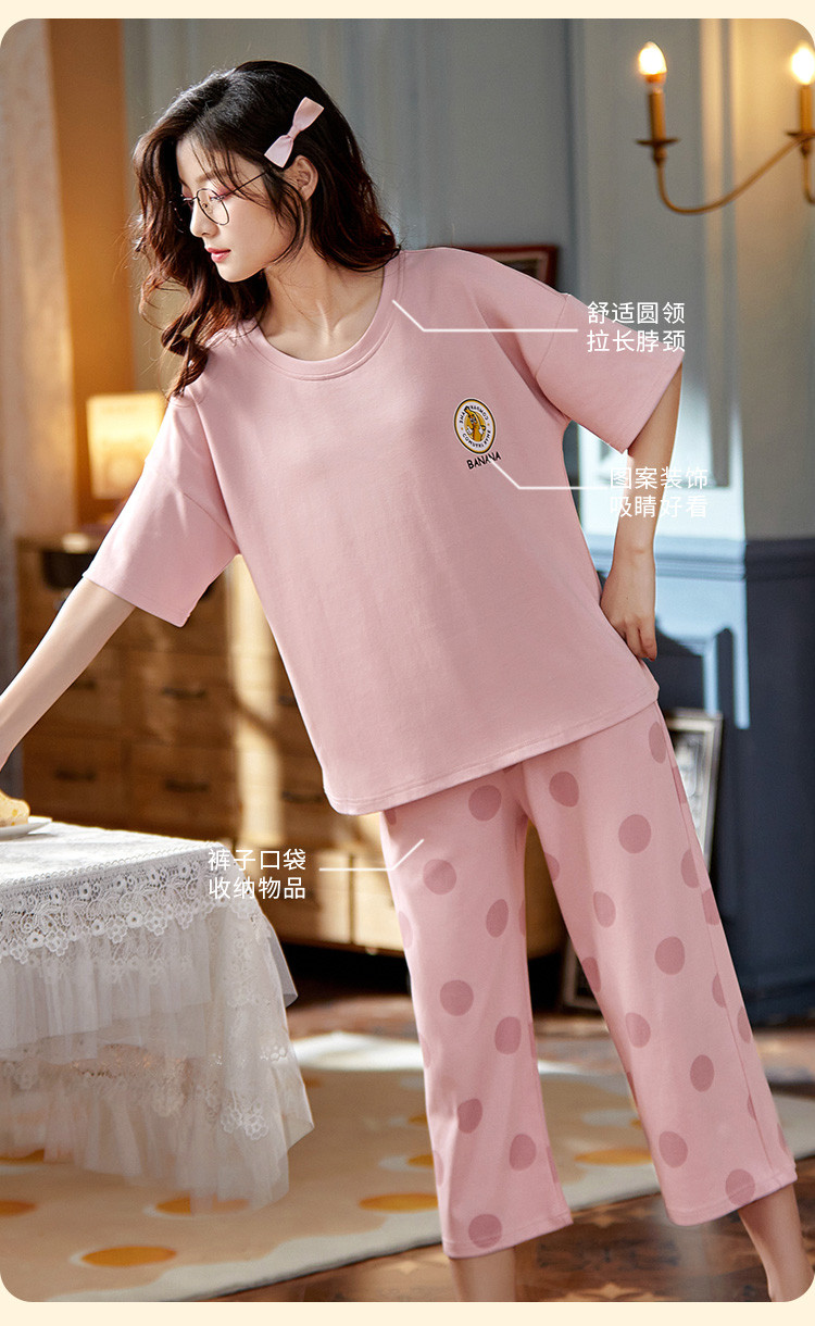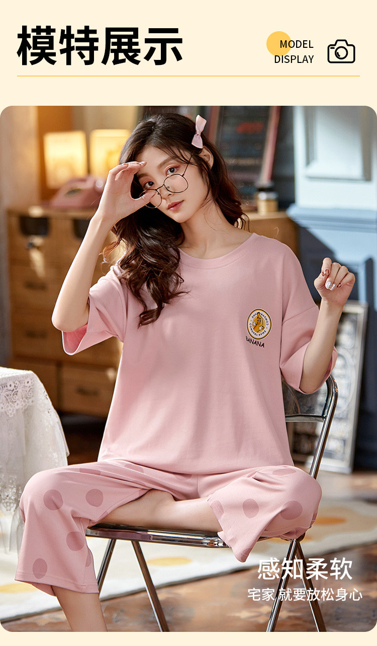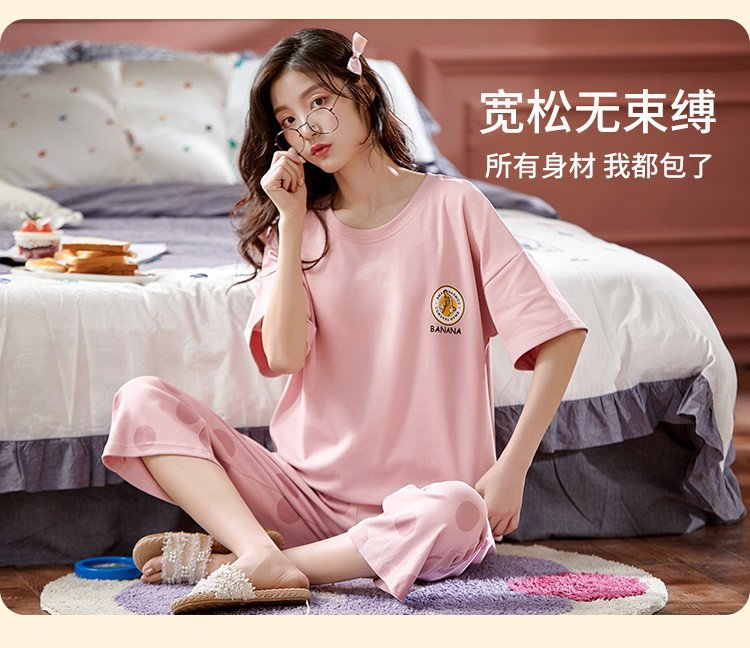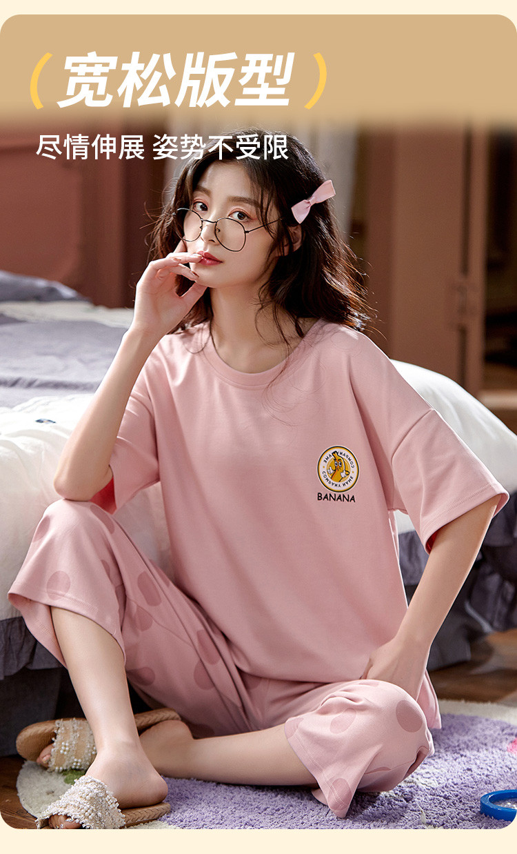 商品名称:【100%棉】带胸垫纯棉睡衣女士夏季舒适可外穿短袖家居服套装 777355