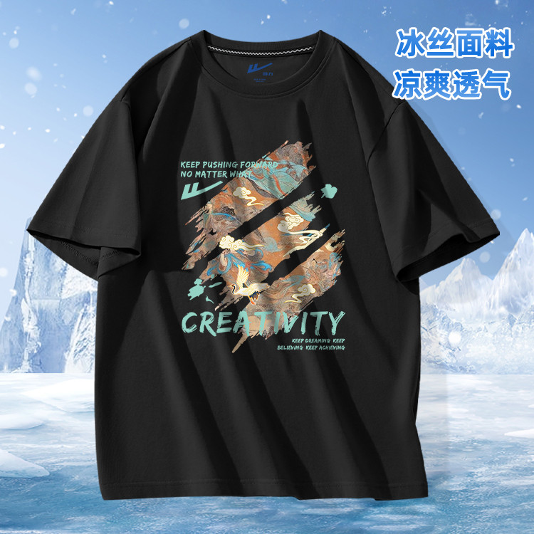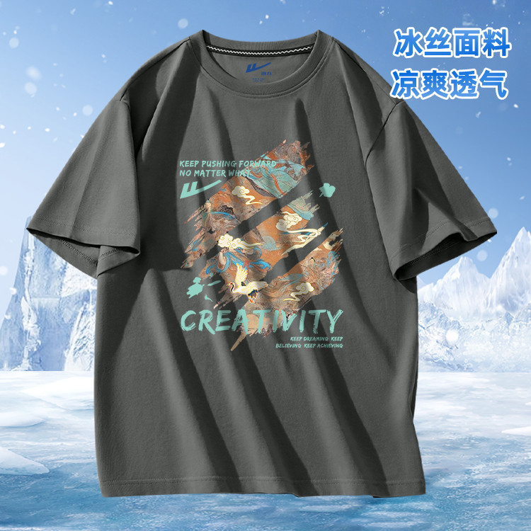 商品名称:【清爽透气】冰丝t恤男夏季薄款美式复古冰感透气男士短袖体恤 552787