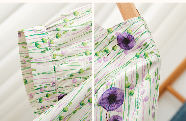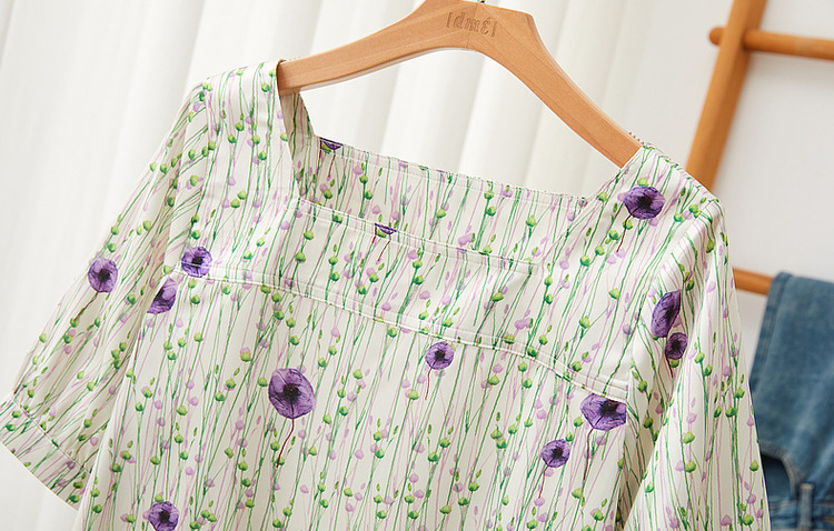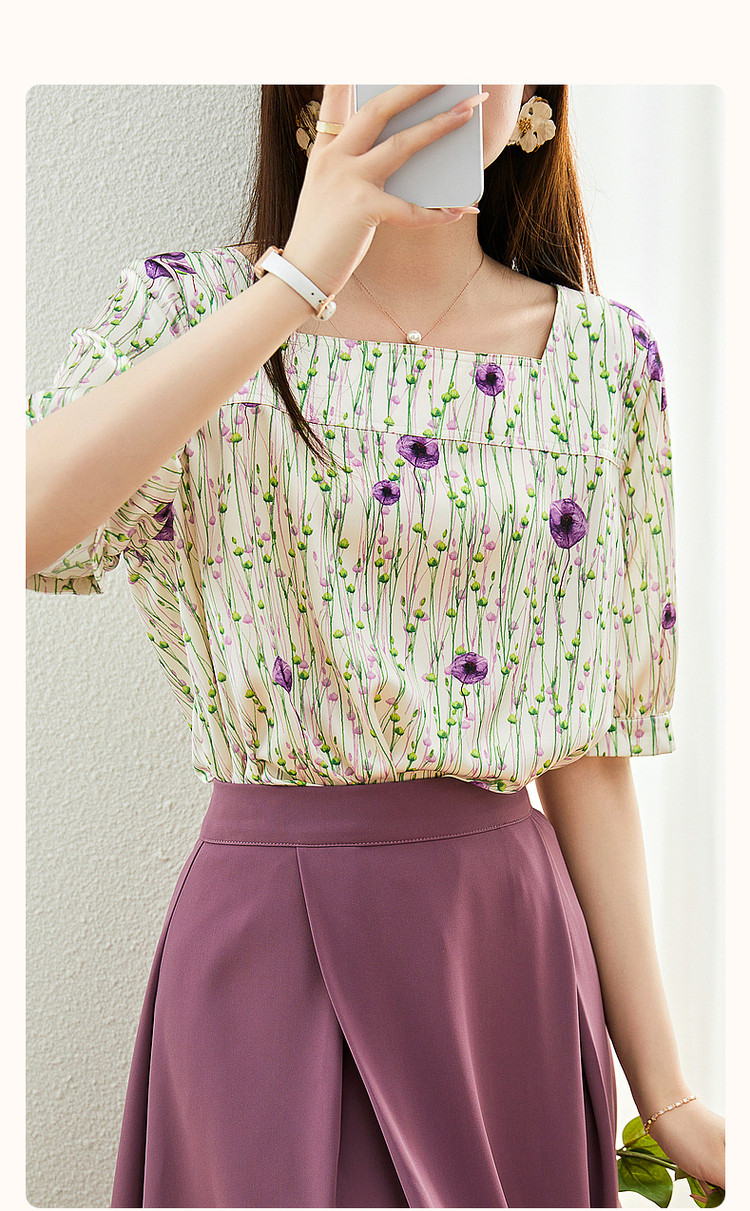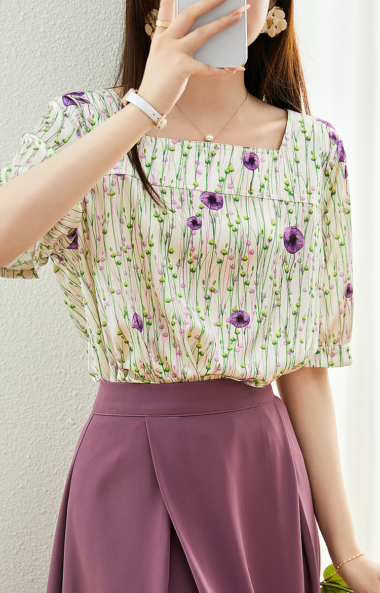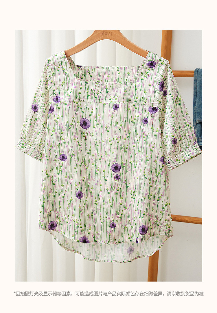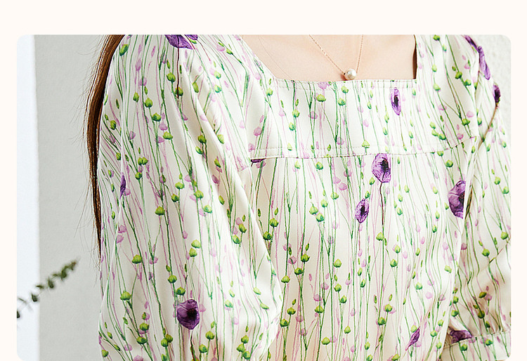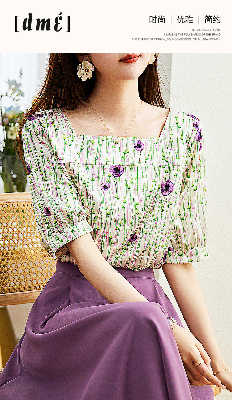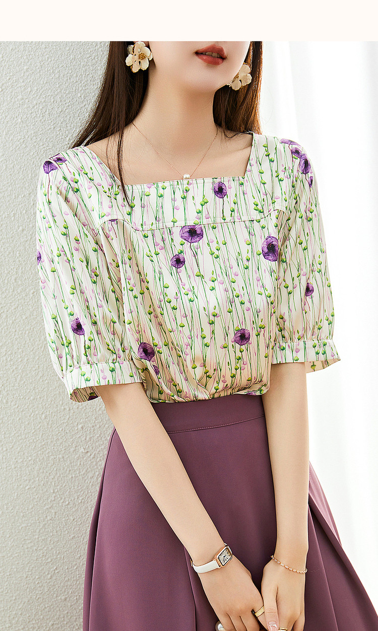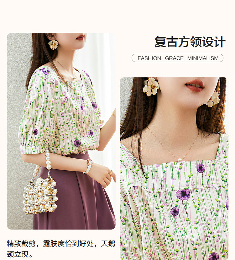 商品名称:【甜美50D加密弹力印花衬衫】春秋方领短袖衬衣女装上衣 560577