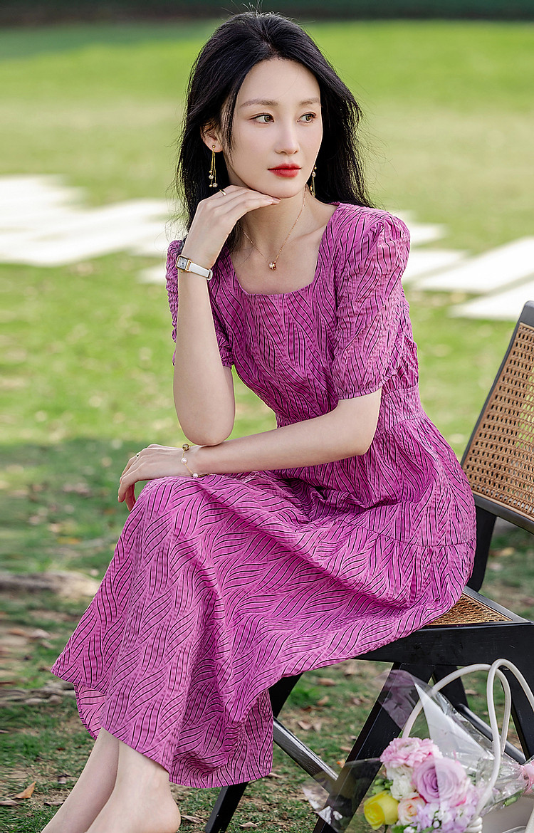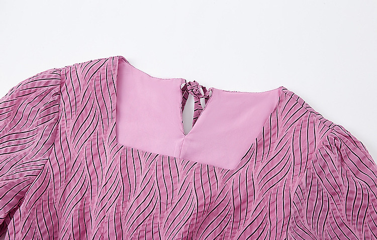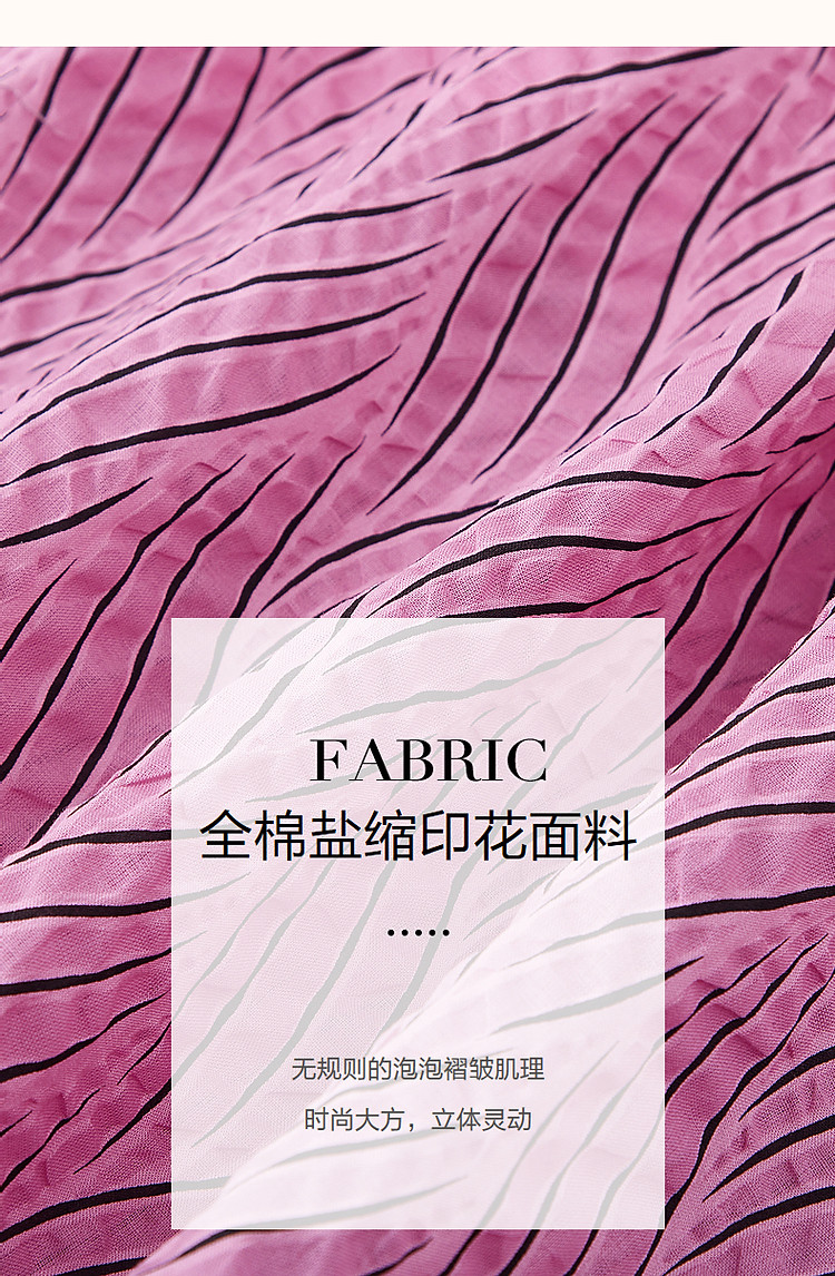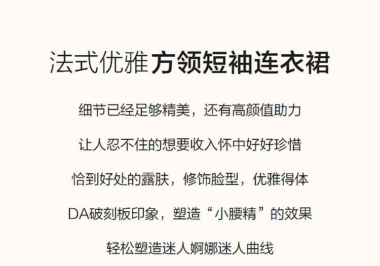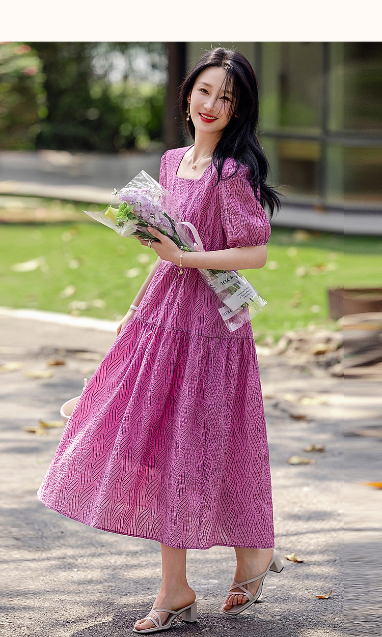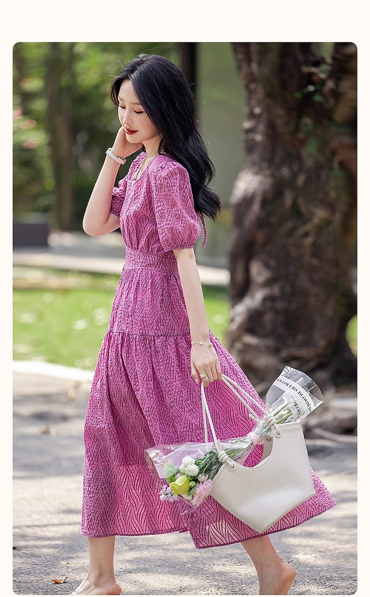 商品名称:【泡泡褶皱肌理】夏法式方领100%棉收腰抽褶大摆收腰连衣裙 009601