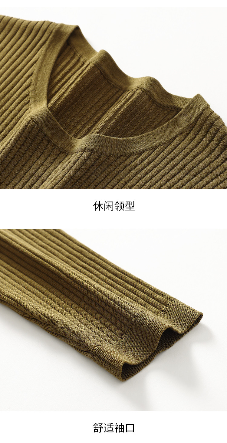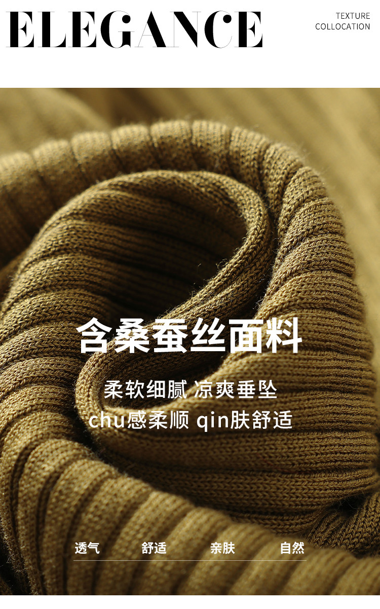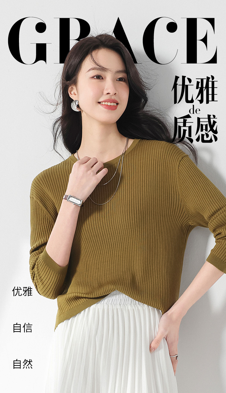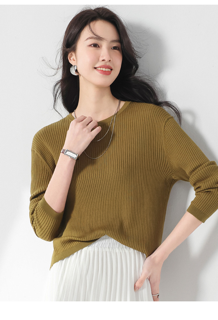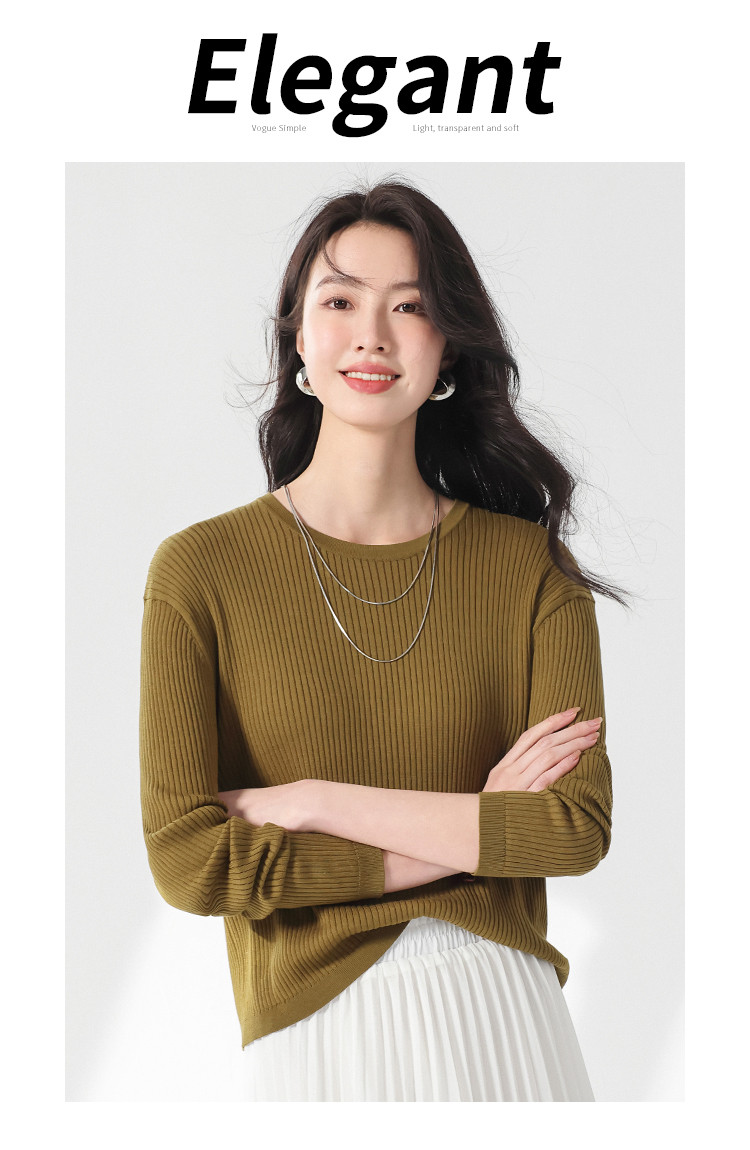 商品名称:春款轻薄透气含桑蚕丝纯色坑条圆领基础针织打底衫长袖T恤针织衫 997331