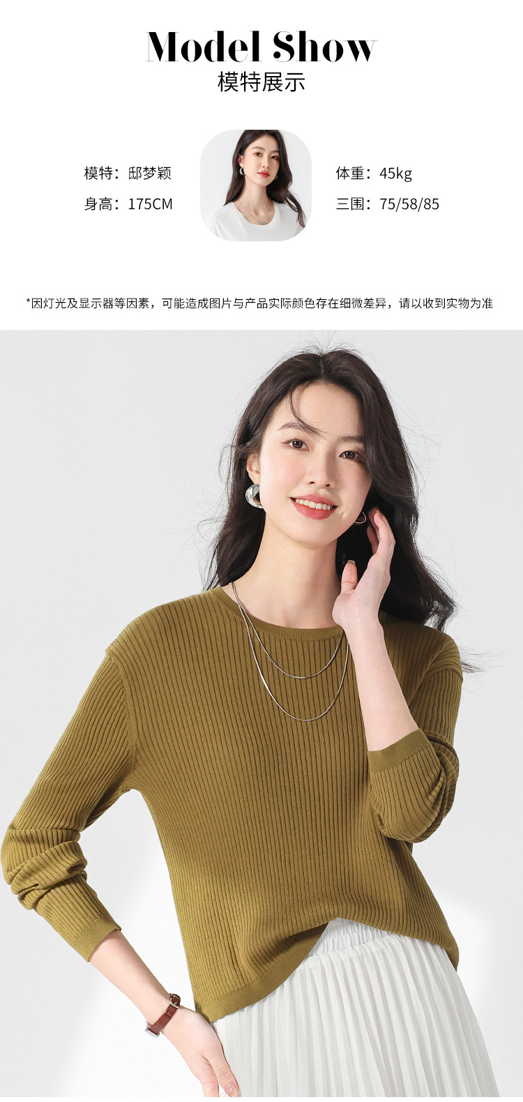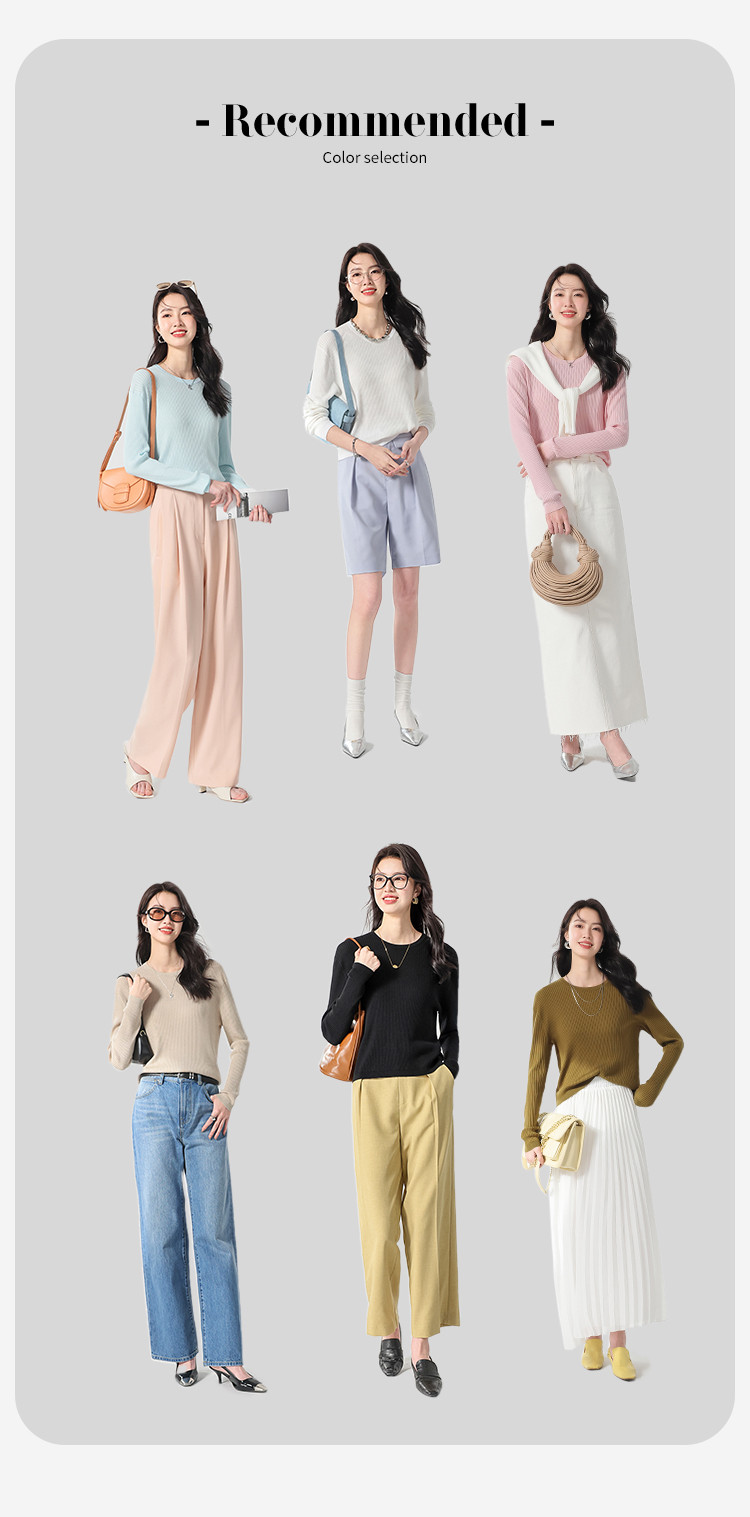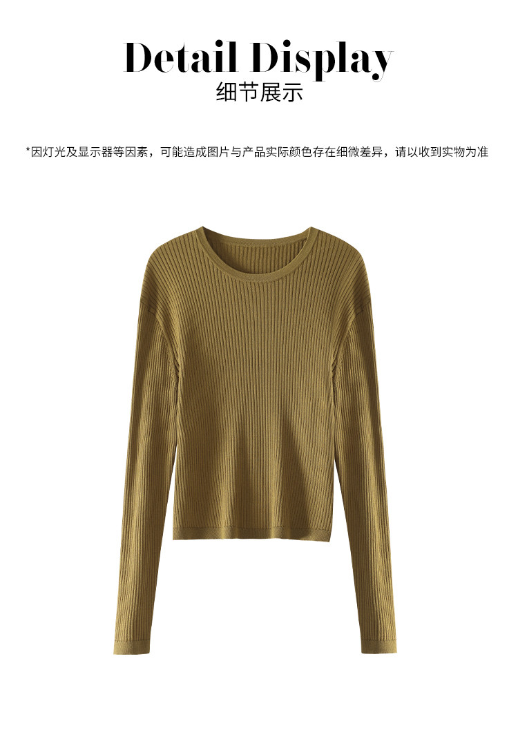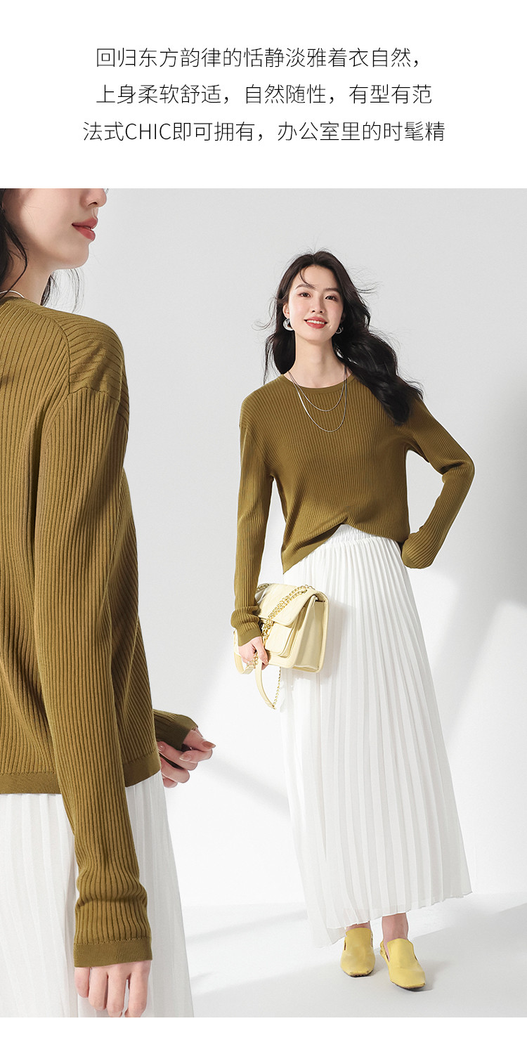 商品名称:春款轻薄透气含桑蚕丝纯色坑条圆领基础针织打底衫长袖T恤针织衫 997331