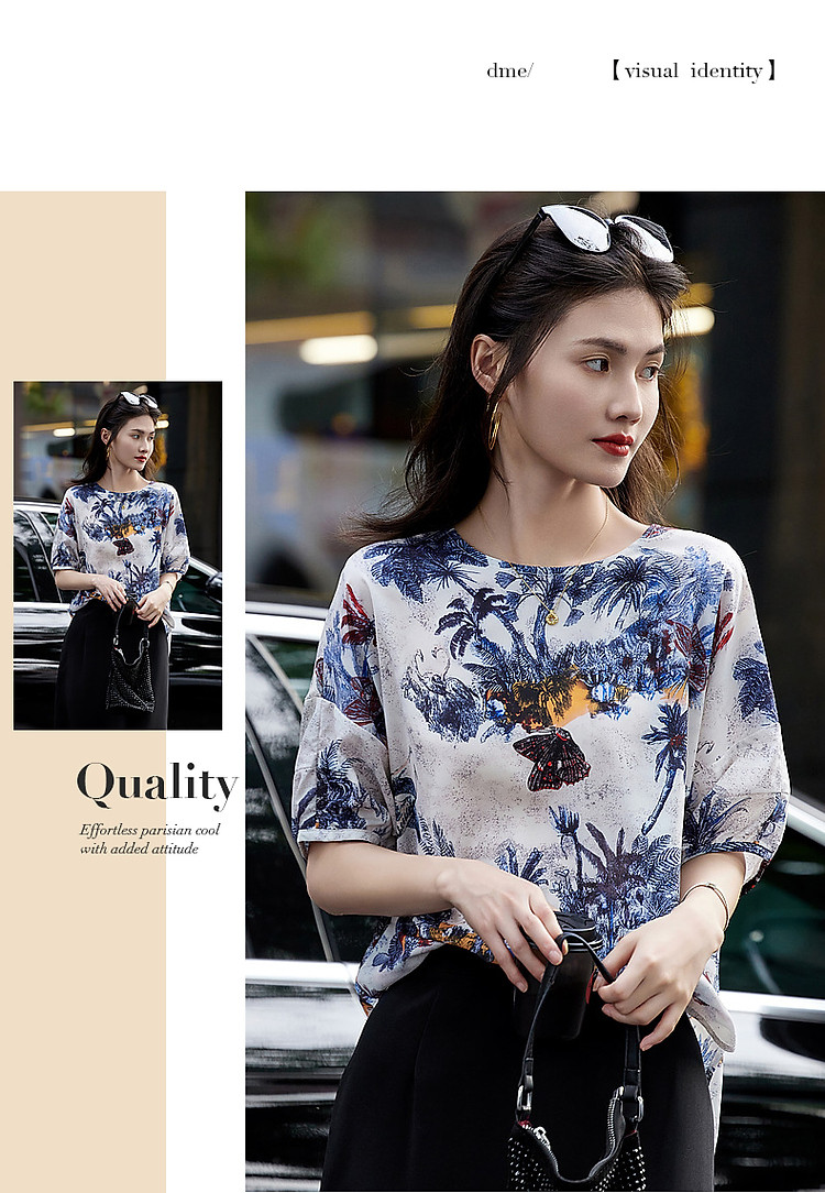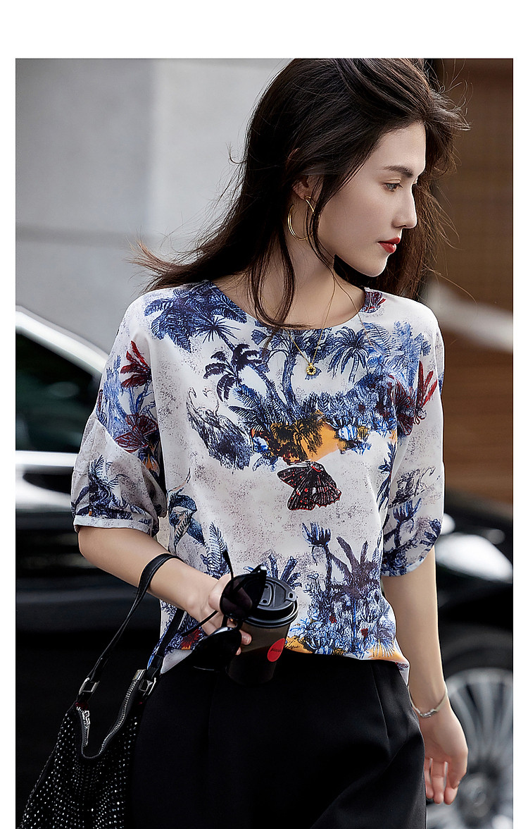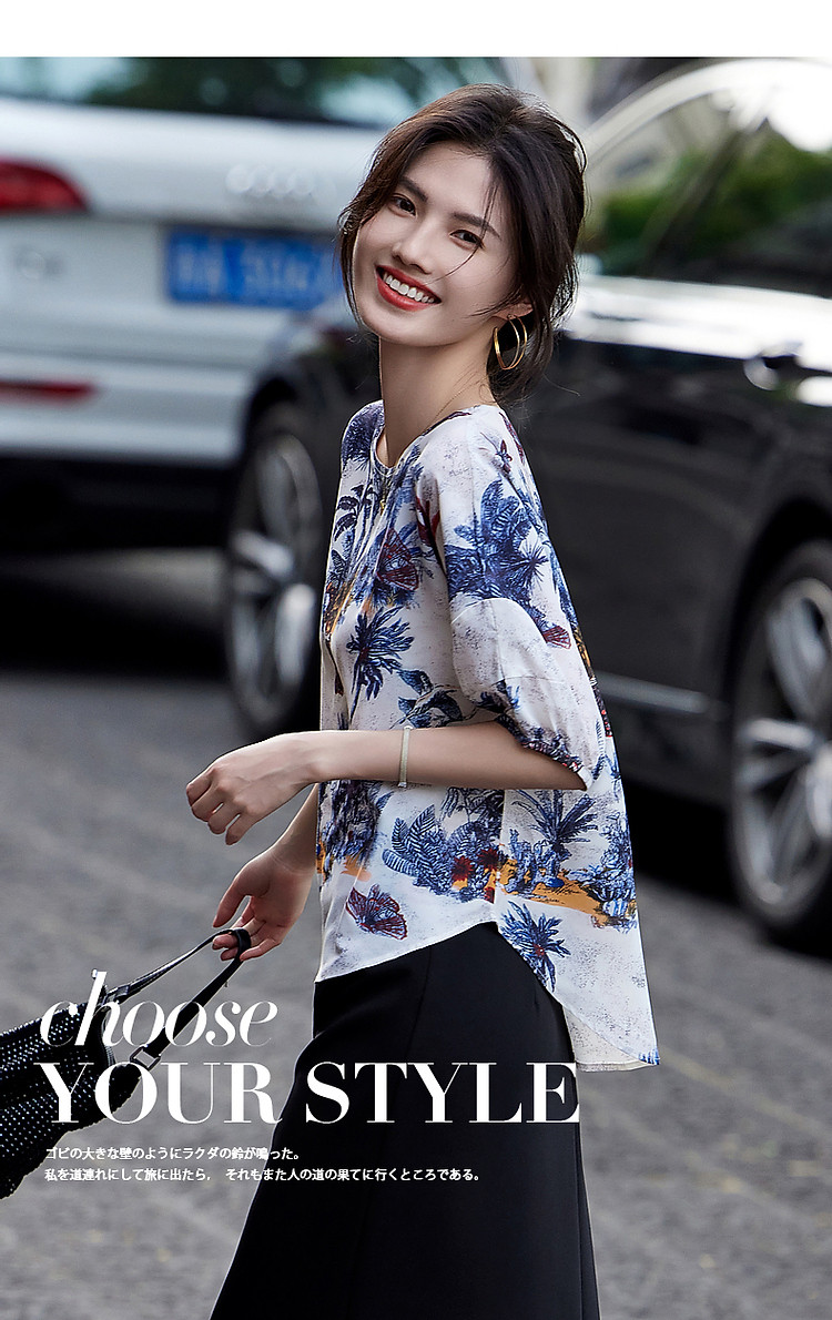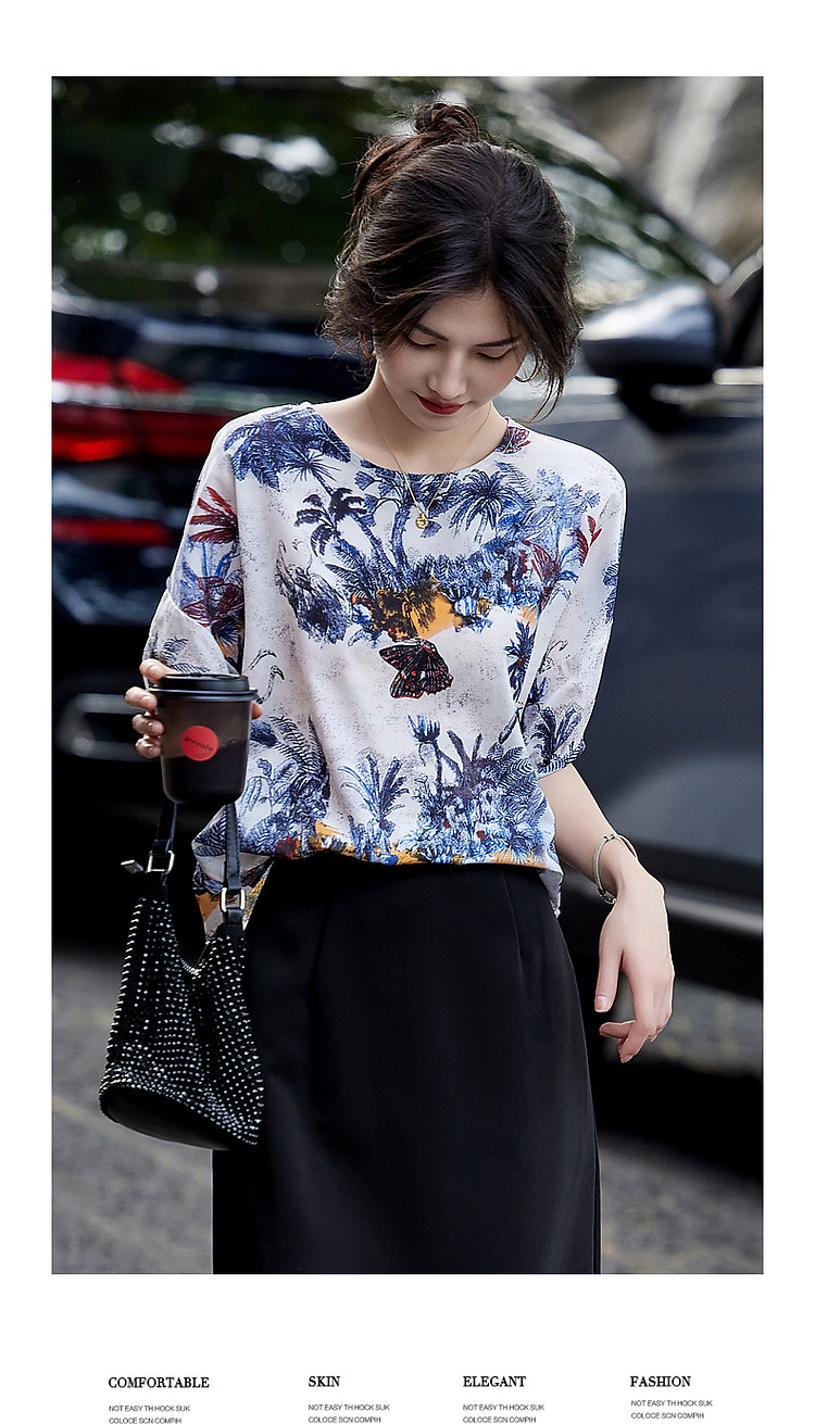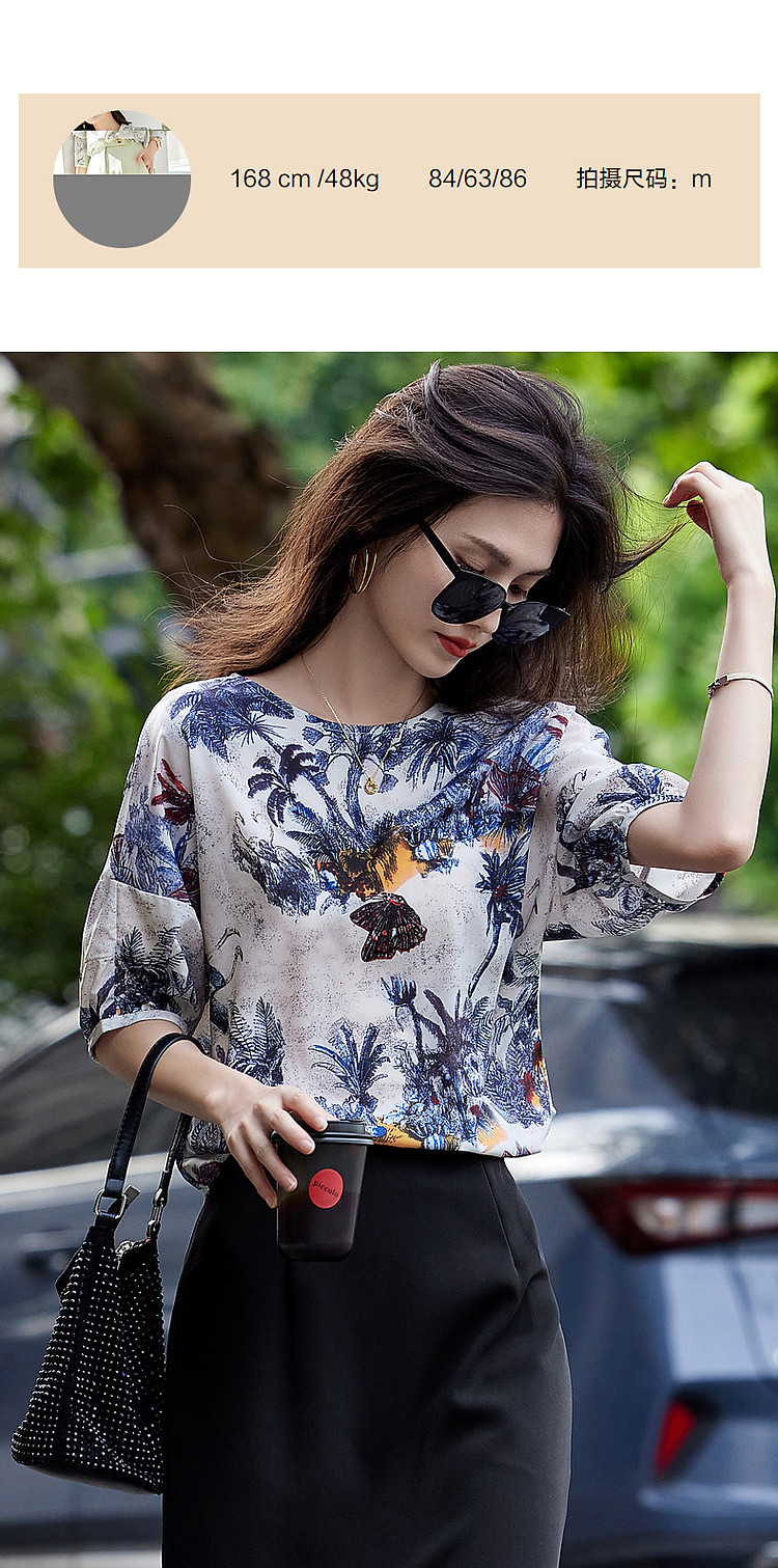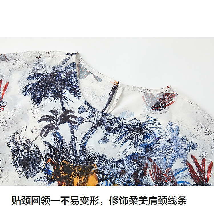 【甜酷设计】夏季含莱赛尔甜酷设计感绑带晕染印花薄款衬衫女 766746
