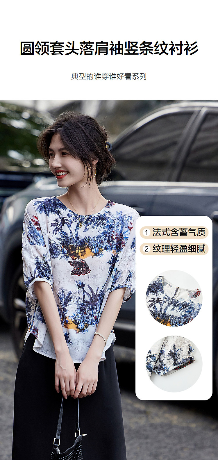 商品名称:【线条美学】夏法式复古条纹衬衫丝滑柔润舒适雪纺藏肉衬衣女上衣 646465